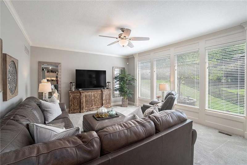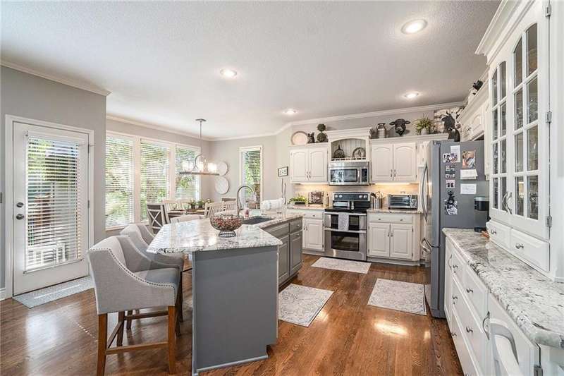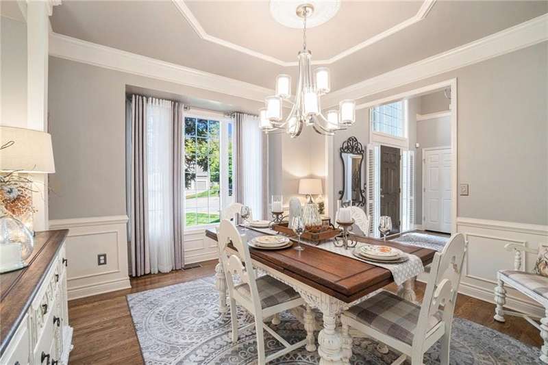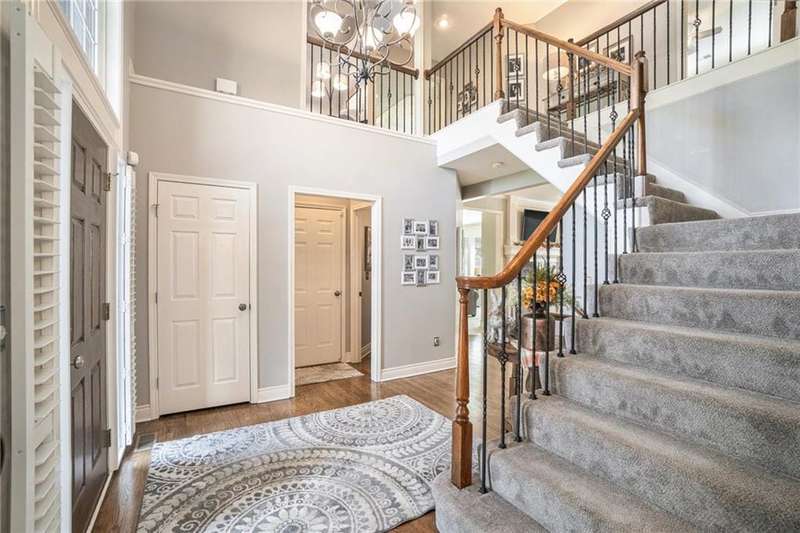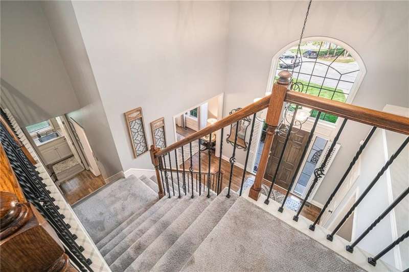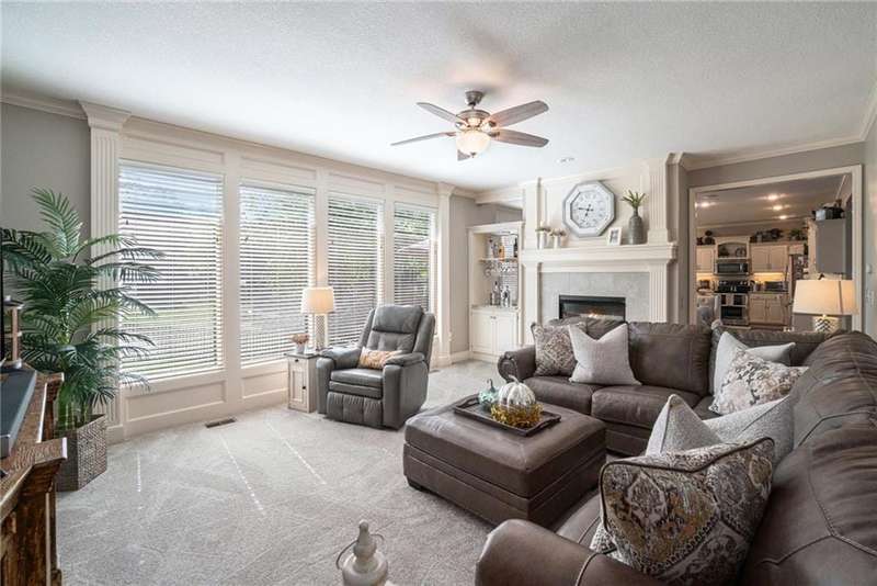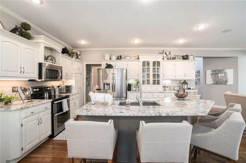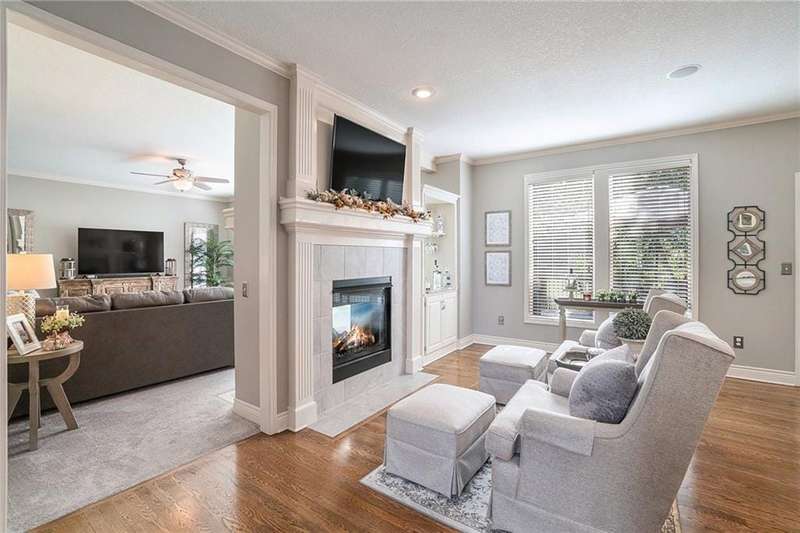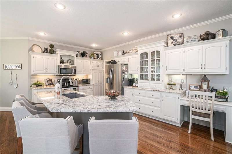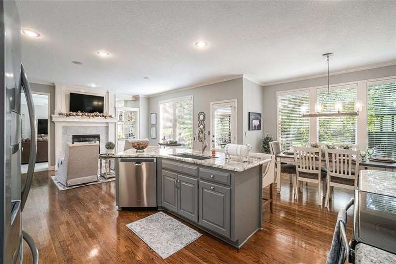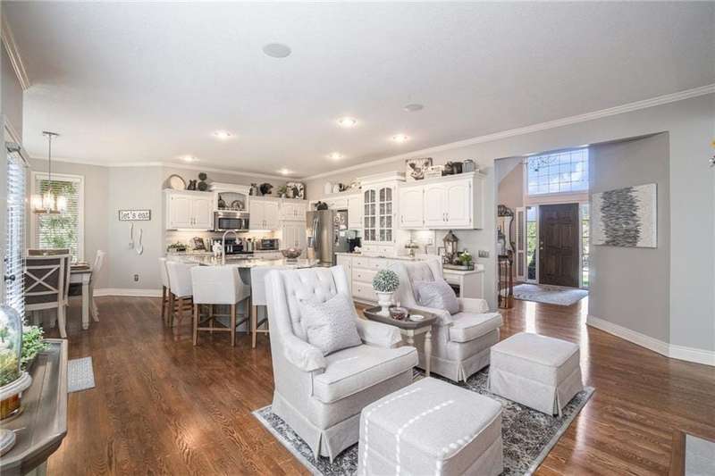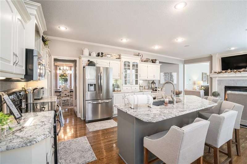 Elegant Krueger Wellington Two-Story on Coveted Cul-de-Sac in Oaks Ridge Meadows. Timeless sophistication with this beautifully appointed 4-bedroom, 3.5-bath Krueger-built home, perfectly situated on a serene cul-de-sac backing to a partially wooded backdrop. The stunning, newly renovated kitchen is a true showpiece, featuring rich granite countertops, an eye-catching backsplash, and an expansive island ideal for entertaining. A see-thru fireplace creates an inviting ambiance between the cozy hearth room and main living space, while a brand-new dry bar and upgraded designer lighting elevate the home's style and comfort. Upstairs, the spacious primary suite offers a luxurious retreat with a fully updated en-suite bath showcasing a custom-tiled shower and premium finishes. An additional sitting area on the second floor provides the perfect space to unwind or work from home. The walk-out basement adds both convenience and potential for future expansion. Combining classic craftsmanship with modern upgrades, this exquisite residence offers the perfect balance of elegance, privacy, and functionality.