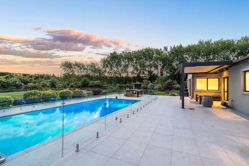 Rural Escape - City Convenience Tucked away in a peaceful setting, this stunning property offers the very best of both worlds: a luxurious country lifestyle with city conveniences just a short drive away. Spanning 13,966m² of beautifully landscaped grounds, and an expansive 568m2 floor area (approx), this spacious estate is a private retreat, where every detail has been meticulously designed to deliver the ultimate in comfort and luxury. The home and guest house is as impressive as it is welcoming, with five generously sized bedrooms, three of them featuring their own private ensuites. With four living areas, there’s room for everything: movie nights, quiet time with a book, or hosting a crowd. The designer kitchen—with its expansive butler’s pantry—makes cooking and entertaining a breeze, and a dedicated study adds an extra layer of convenience for working or studying from home. For those with extended family, visitors, or a desire for extra space, the property also features a charming guest house. This one-bedroom retreat comes with its own bathroom, kitchen, and living area, offering independence and comfort in equal measure. Seamless flow to the outdoors makes this property an entertainer’s dream with manicured gardens and a sparkling pool area that’s just begging for summer BBQs and lazy afternoons with friends. Practicality meets elegance with triple garaging, secure gated entry, and plenty of space to breathe. Whether you’re enjoying the peacefulness of the countryside, hosting friends by the pool, or simply soaking up the peaceful surroundings, this home delivers an idyllic lifestyle.