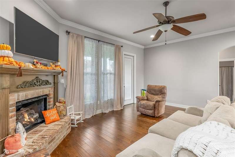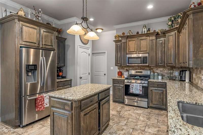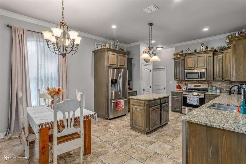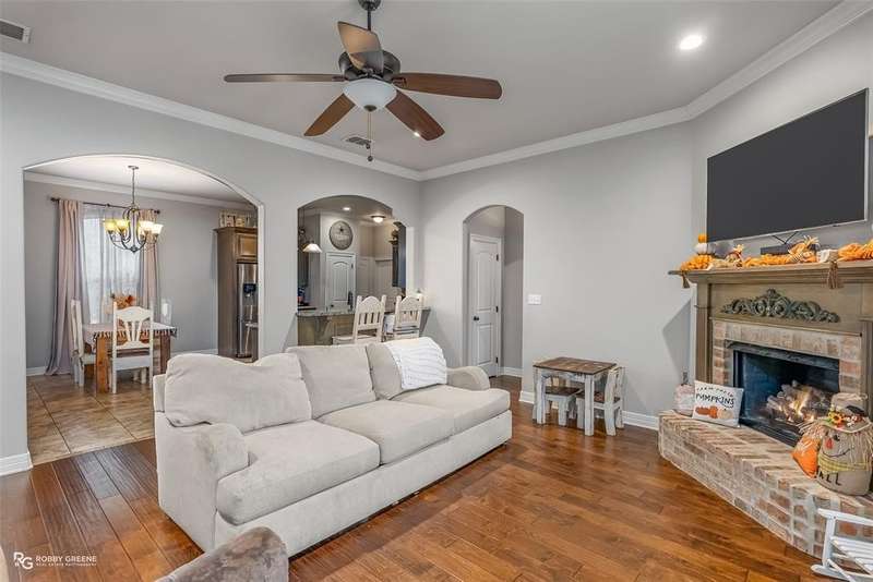 Welcome to this beautifully maintained 3-bedroom, 2-bath home located in the desirable Dogwood South subdivision. As you step inside, you'll be greeted by an open spacious living room featuring a cozy gas fireplace. The heart of the home is the large kitchen with a spacious island, offering plenty of counter space and storage. The dining room is perfect for hosting dinner parties with friends. The remote master suite is complete with an ensuite master bathroom featuring a double vanity, walk-in shower, jetted tub, and a large walk-in closet. On the other side of the home, two spacious bedrooms and a full bathroom with shower and tub combo. Step outside to the outdoor patio area, where you'll find a large back patio, and a very large back yard. Enjoy added privacy with no rear neighbors only woods—an extra perk that enhances this home’s appeal. Don’t miss the opportunity to make this stunning home yours!
