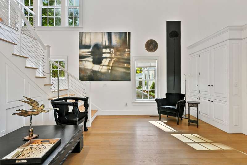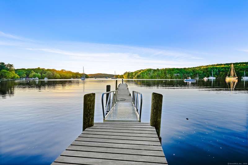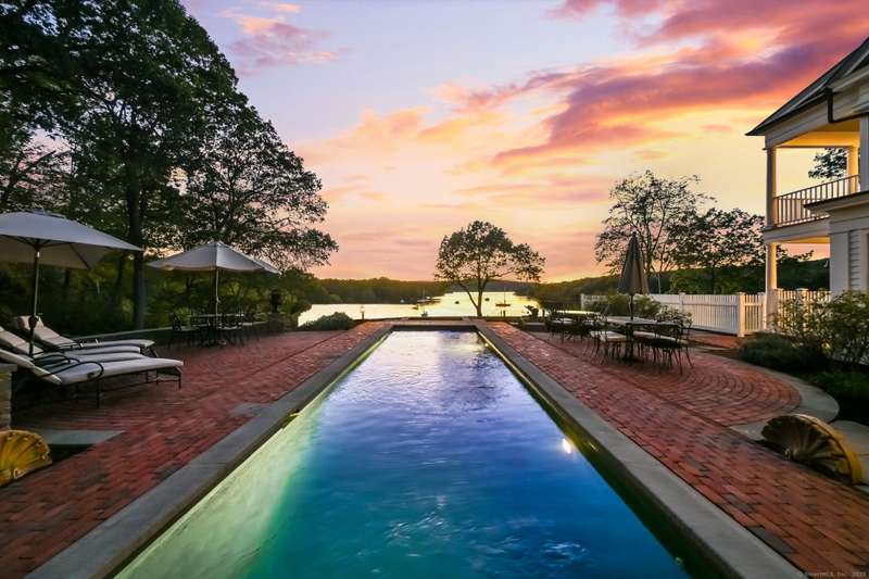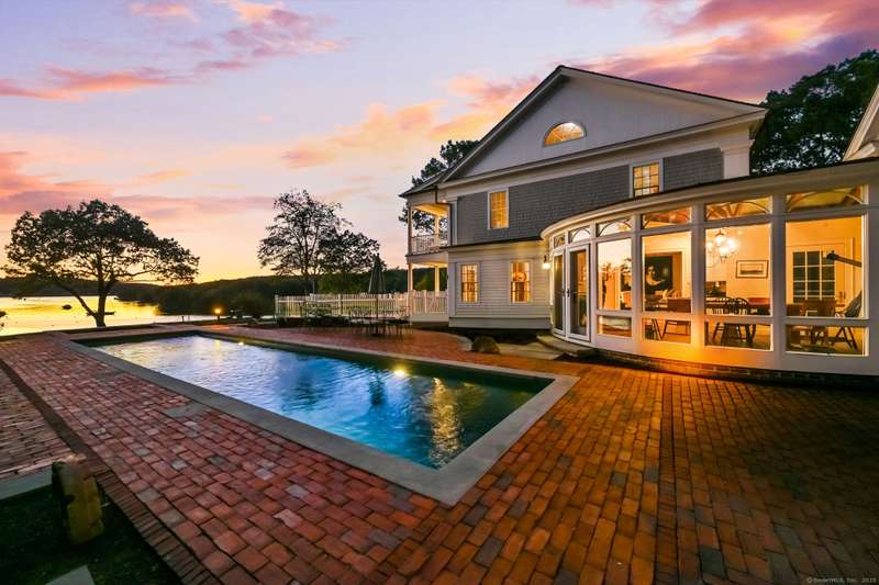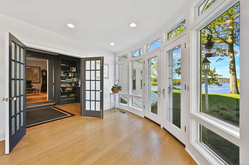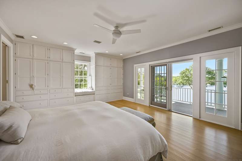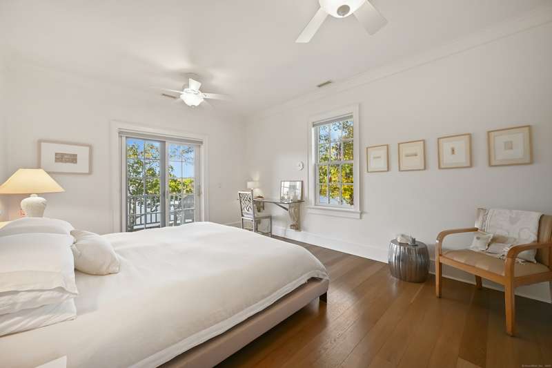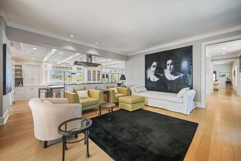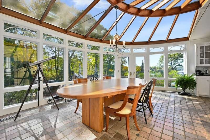 Architect-designed and inspired by Palladio's symmetry and Mount Vernon's timeless colonial grace, the essence of classic balance, symmetry, and luxury. A center-columned portico anchors the perfect proportion between two grand wings, while the interiors reveal artistry at every turn-gleaming wood floors, custom millwork, and walls of windows framing Hamburg Cove's deep-water yacht basin-where sails and yachts drift across shimmering water lusters reflecting a symphony of mystical moorings that capture what is widely considered the most breathtaking panorama on the Cove. Two magnificent semi-rotunda sunrooms at each end bathe the space in natural light, blending formal entertaining and cozy private havens that are elegant yet casual and comfortable. The chef's kitchen features a large center island and commercial-grade appliances. Two primary suites-one on each level. A large guest apartment rests over three of the six garages. The finished lower level includes a gym, billiards, and a
