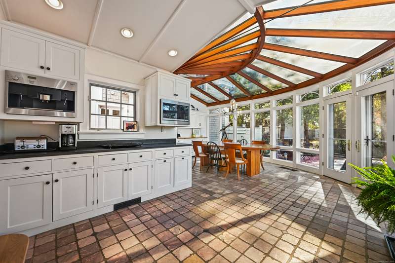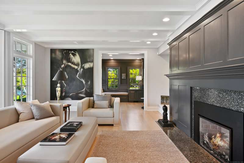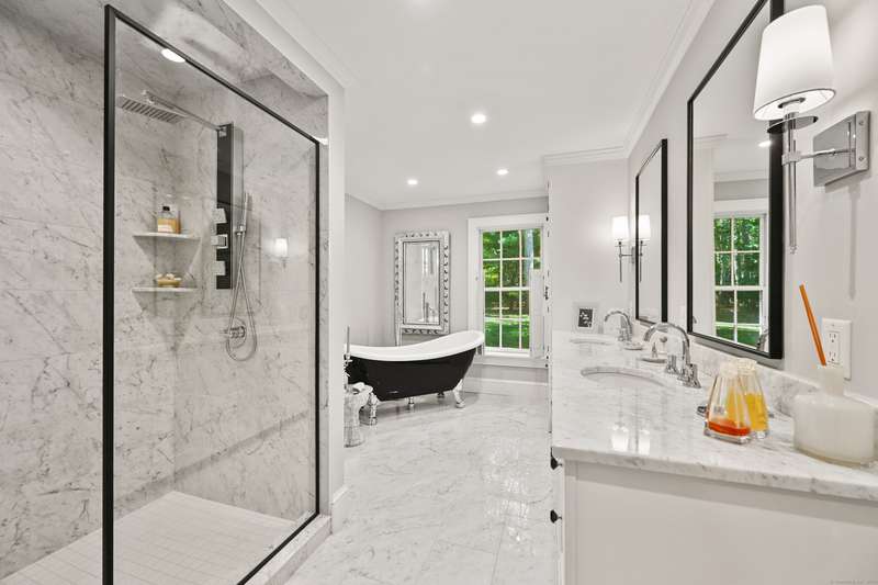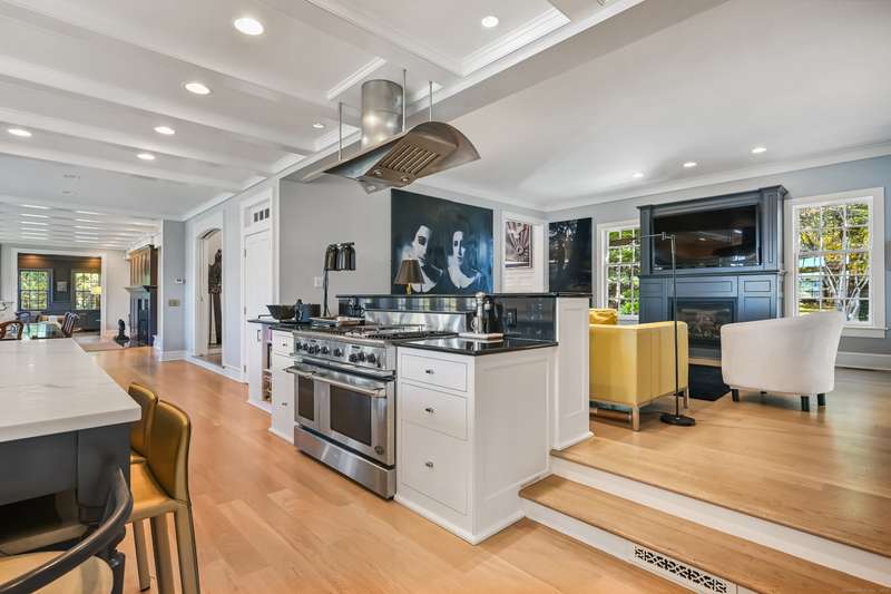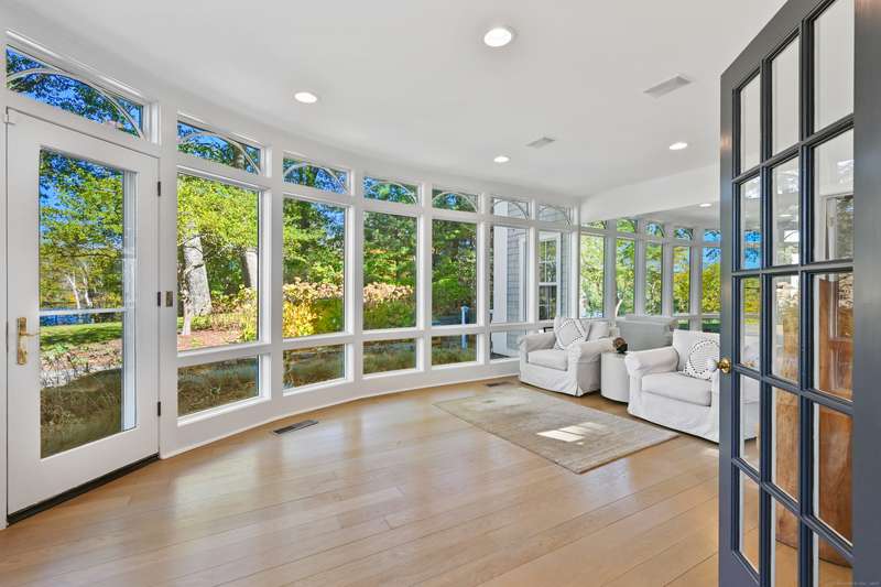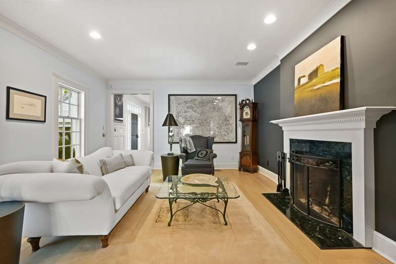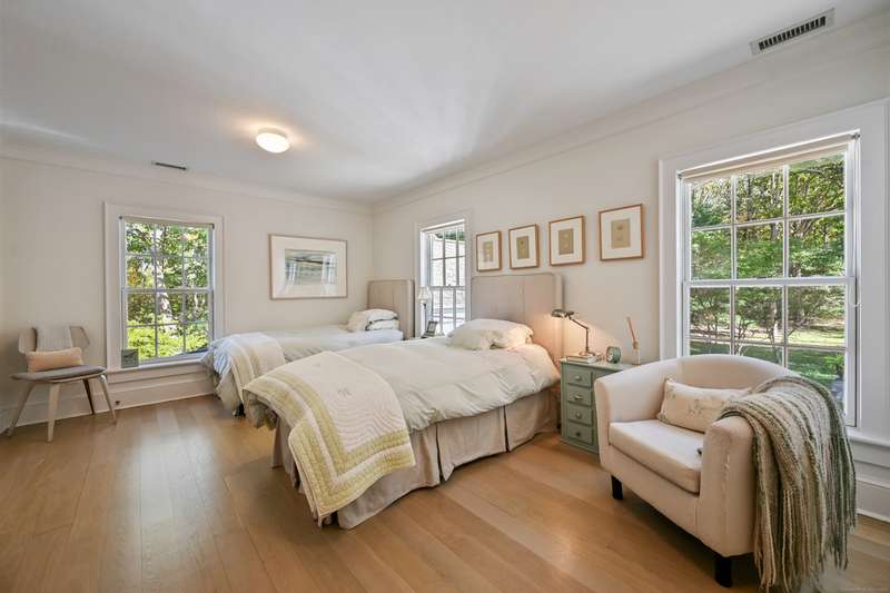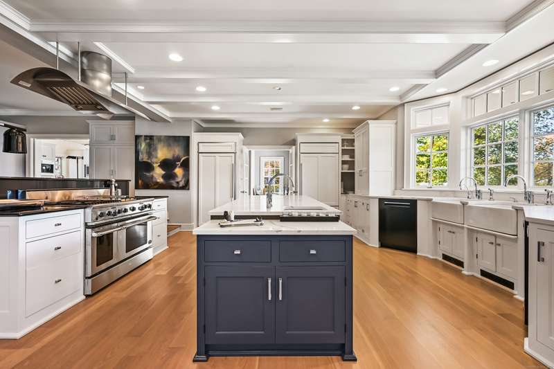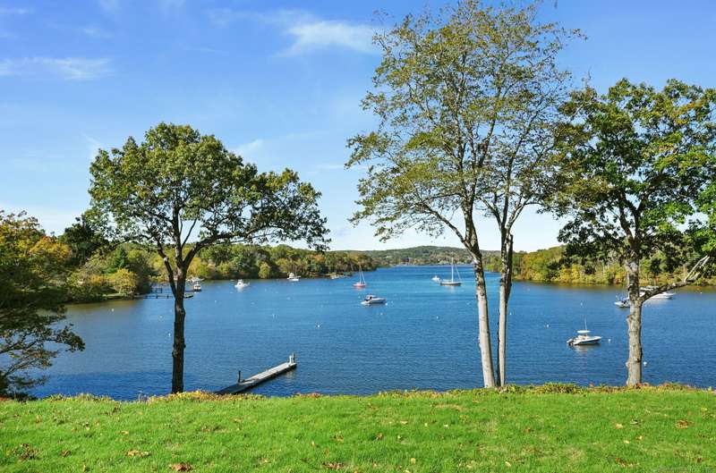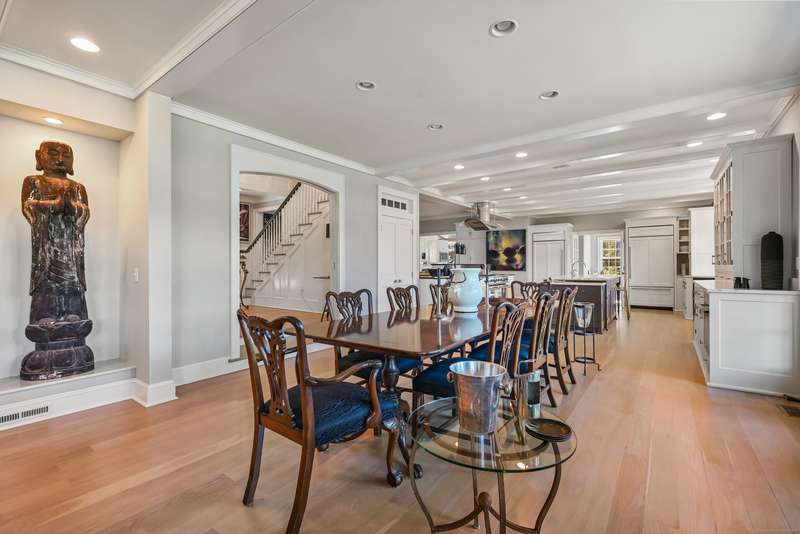 Architect-designed and inspired by Palladio's symmetry and Mount Vernon's timeless colonial grace, the essence of classic balance, symmetry, and luxury. A center-columned portico anchors the perfect proportion between two grand wings, while the interiors reveal artistry at every turn-gleaming wood floors, custom millwork, and walls of windows framing Hamburg Cove's deep-water yacht basin-where sails and yachts drift across shimmering water lusters reflecting a symphony of mystical moorings that capture what is widely considered the most breathtaking panorama on the Cove. Two magnificent semi-rotunda sunrooms at each end bathe the space in natural light, blending formal entertaining and cozy private havens that are elegant yet casual and comfortable. The chef's kitchen features a large center island and commercial-grade appliances. Two primary suites-one on each level. A large guest apartment rests over three of the six garages. The finished lower level includes a gym, billiards, and a