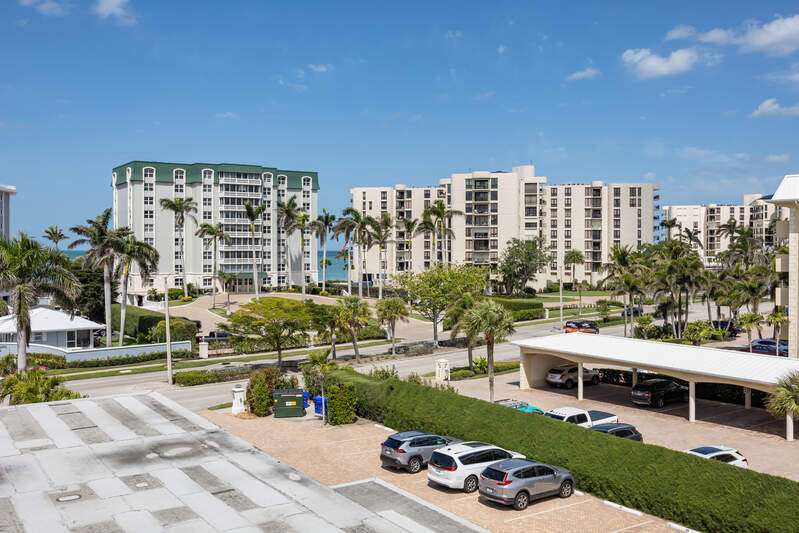 Discover coastal living at its finest in this exquisite top floor end-unit in the Bordeaux Club! Nestled within the prestigious Moorings neighborhood, this residence offers breathtaking views of the sparkling Gulf and direct access to pristine sandy beaches. Brand new Impact resistant windows and sliders were just installed! This thoughtfully designed unit features an open floor plan that seamlessly blends indoor and outdoor spaces, allowing natural light to flood the interiors. The modern kitchen is equipped with high-end appliances, sleek countertops, and ample storage, catering to both casual dining and entertaining. The primary suite serves as a serene retreat with expansive windows offering panoramic ocean vistas. It includes a luxurious en-suite bathroom with a glass shower enclosure and a walk-in closet. The guest bedroom is well-appointed, providing comfort and privacy for all. Residents of Bordeaux Club enjoy a range of amenities, including a heated swimming pool, fitness center, and beach access. The property is conveniently located near upscale shopping, fine dining, and cultural attractions, ensuring a vibrant lifestyle. Experience the epitome of Naples' beachfront living in this remarkable condominium, where luxury meets tranquility.