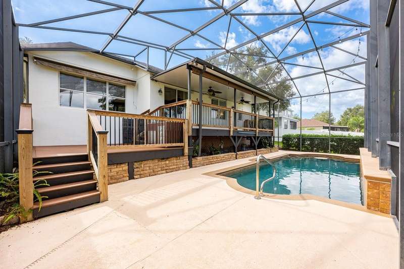 One or more photo(s) has been virtually staged. Ask about a lender provided RATE BUY-DOWN CREDIT on this home ** Seller may consider buyer concessions if made in an offer ** This beautifully maintained single-story 4-bedroom, 2-bath POOL HOME in the heart of Apopka offers an exceptional blend of versatility, updates, and scenic tranquility! Recent upgrades include a NEW ROOF (2024), TREX MULTI-LEVEL DECK (2024), BRAND NEW POOL PUMP (2025), FRESH INTERIOR & EXTERIOR PAINT, ENLARGED DRIVEWAY (2022), and the pool was resurfaced with PEBBLETEC (2020). The extended stamped-concrete front porch and refreshed landscaping with rock/boulders and uplighting (2019) create unforgettable CURB APPEAL, while the expanded pantry and storage nook (2023) add everyday convenience. Inside, you will enjoy a flexible floor plan designed for both entertaining and everyday living. The CHEF’S KITCHEN shines with rich cabinetry, a wood-accent island with bar seating, coordinating appliances, a decorative backsplash, recessed and pendant lighting, and a cozy breakfast nook. The kitchen flows effortlessly into the family room, where a picture window frames the view perfectly, with sliding glass doors off the breakfast nook opening up to multi-level decks overlooking the sparkling pool and peaceful pond view. Your PRIMARY SUITE is a private retreat with an elegant tray ceiling, DUAL CUSTOM WALK-IN CLOSETS, and an UPDATED EN-SUITE BATH featuring a custom shower. The fourth bedroom is thoughtfully designed with dual access – one entry from the hallway and another through charming French doors off the foyer – ideal as a bedroom, home office or flex space. Outside, the .34 ACRE / CUL-DE-SAC LOT provides the perfect backdrop for Florida living, with NO REAR NEIGHBORS, breathtaking SUNSET VIEWS, and direct access to community walking trails. The side-facing garage, beautifully manicured yard, and well-kept neighborhood with mature trees all reflect the pride of ownership throughout Arbor Ridge. Zoned for nearby TOP-RATED SCHOOLS with quick access to Lester Road, Plymouth Sorrento Road, and SR-429, this home offers the perfect balance of convenience, community, and natural beauty. Come experience the view, the layout, and the lifestyle - this is the one you have been waiting for, call today to schedule a tour!