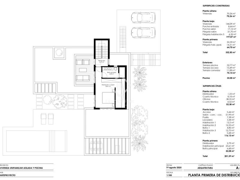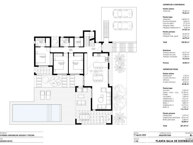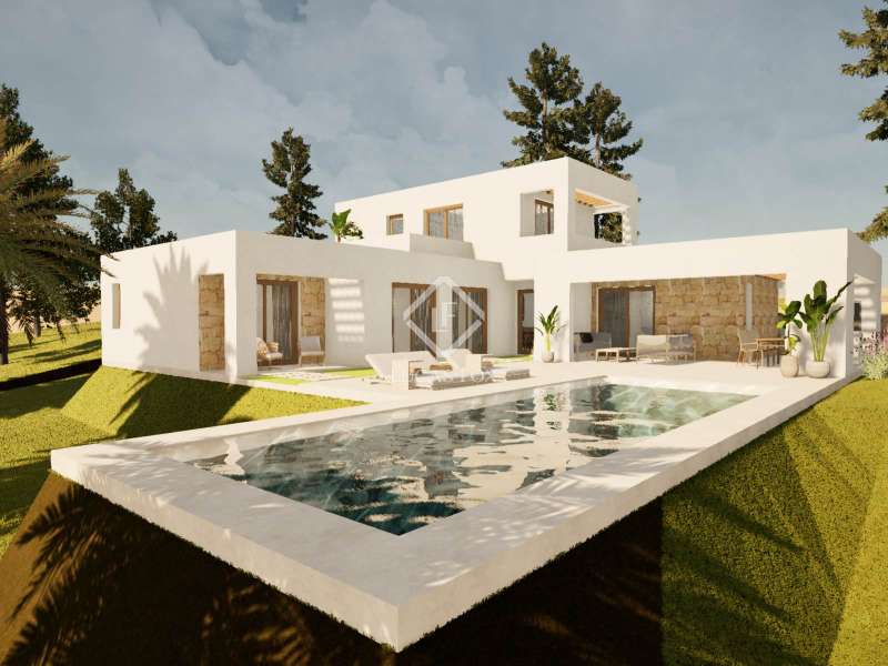 Built on a flat, private plot, the villa boasts a bright and spacious open-plan layout, designed to maximise natural light and create a seamless flow between indoor and outdoor living. The living and dining area features large floor-to-ceiling windows that open directly onto the terrace and pool area, creating the perfect environment for entertaining or relaxing with family. The fully fitted modern kitchen comes equipped with good appliances and sleek cabinetry, offering both style and functionality. The villa includes three generously sized bedrooms, each with built-in wardrobes, and three contemporary bathrooms finished with high-quality materials. There is also the option to add a fourth bedroom, office, or guest suite, depending on your needs. Outside, the property features a private swimming pool surrounded by a sun-drenched terrace and a beautifully landscaped Mediterranean garden, designed for low maintenance and year-round enjoyment. A covered terrace provides a shaded space for al fresco dining or relaxing with a good book. Additional features include air conditioning throughout, ensuring comfort in every season, as well as energy-efficient construction with the extra option to install underfloor heating and solar panels. There is private parking in the property. Please contact us for further information.