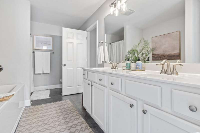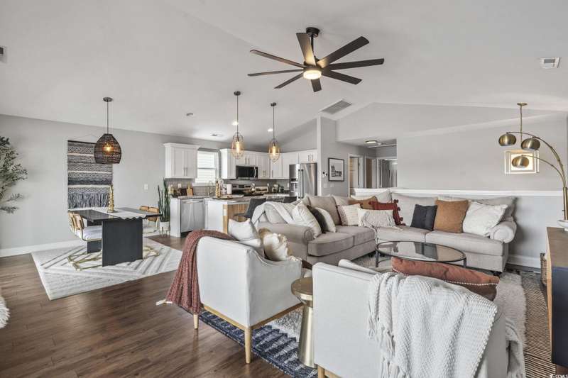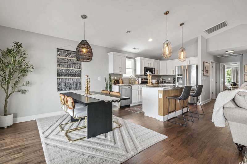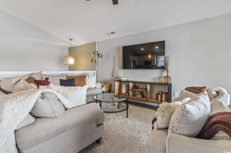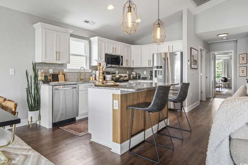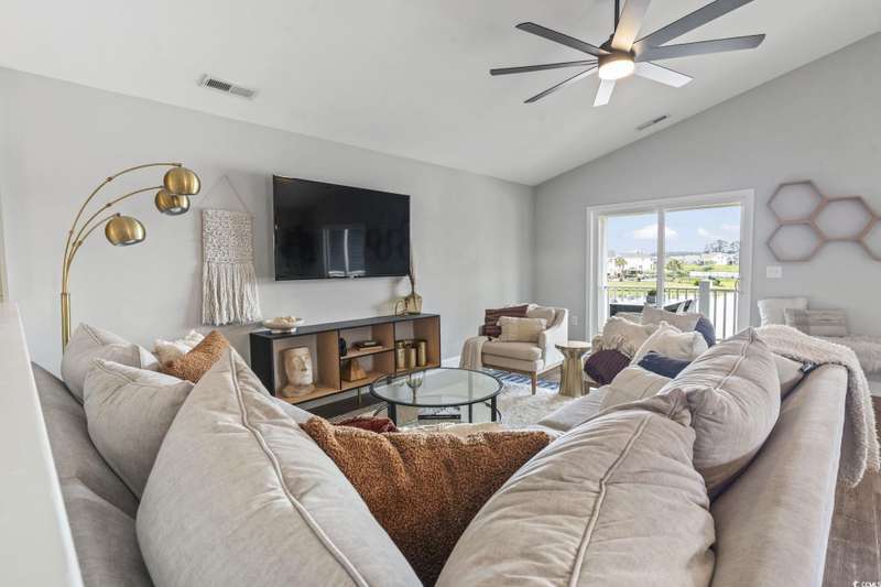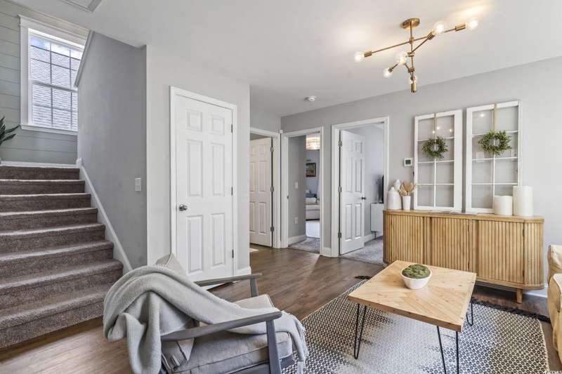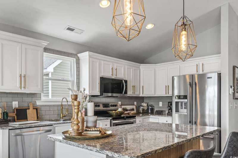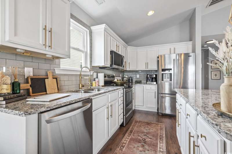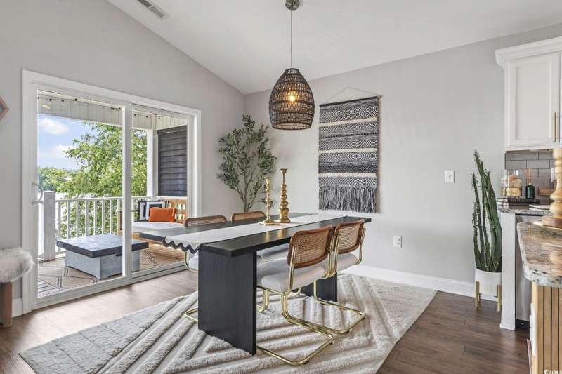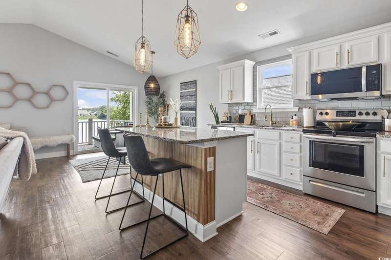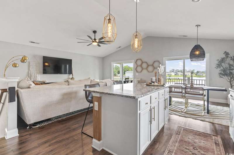 * Fantastic Price Improvement & Seller is offering concessions for qualified buyer ~ speak with your Realtor to learn the details. An opportunity to own a unique split-level, well-maintained 3 Bedroom / 2.5 Bath home that has a beautiful view on each level with one-of-a-kind built-ins and extra accents throughout. The home overlooks a picturesque 28-acre lake, perfect for kayaking, paddleboarding, or fishing right from your own backyard. The home includes high-end updates such as LVP flooring in the main areas, soft carpeting in the bedrooms, and vaulted ceilings. The kitchen has stainless steel appliances, granite countertops, a work island with a breakfast bar, and a well-placed dining area. Each bedroom provides generous closet space and ceiling fans, with convenient bathroom access; the primary suite stands out with its sophisticated tray ceilings, dual sink vanities topped with fine granite, and a linen closet for extra storage. Enjoy your morning coffee or evening drinks on the balcony overlooking the water. Ideally located, this home is close to the Grand Strand's best restaurants, shops, golf courses, and entertainment venues, with the beach just 2.5 miles away. Golf carts are permitted, so you can quickly access getting to the beach from the Garden City Connector. Call for a private showing today! This is a must see home that is ready for its next family to enjoy.
