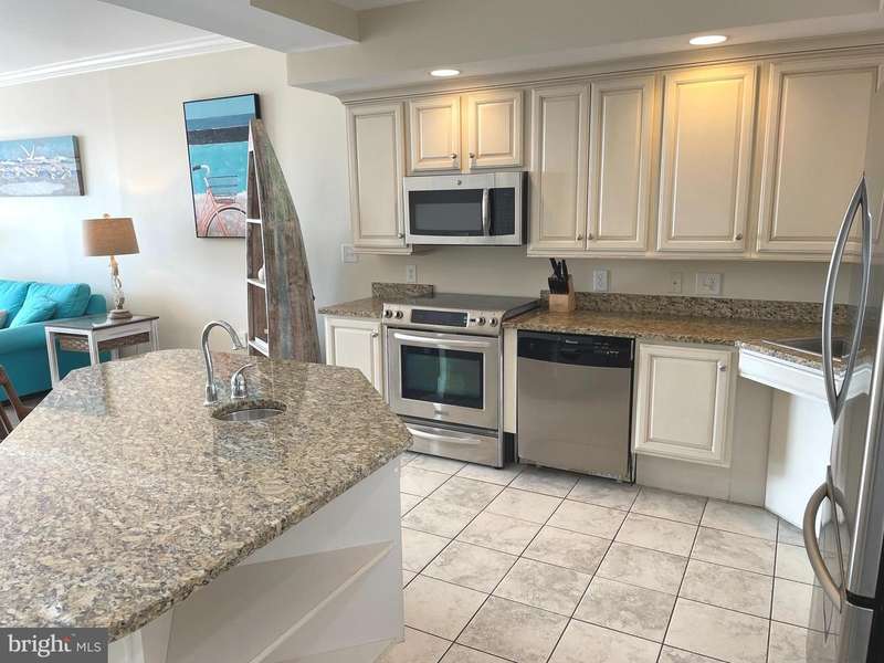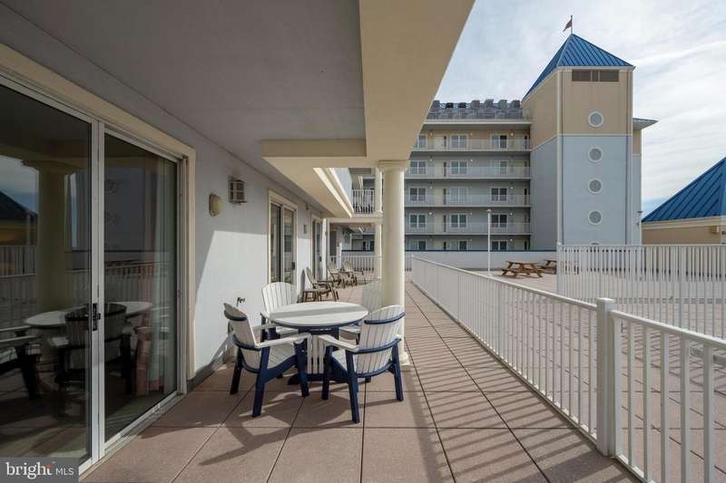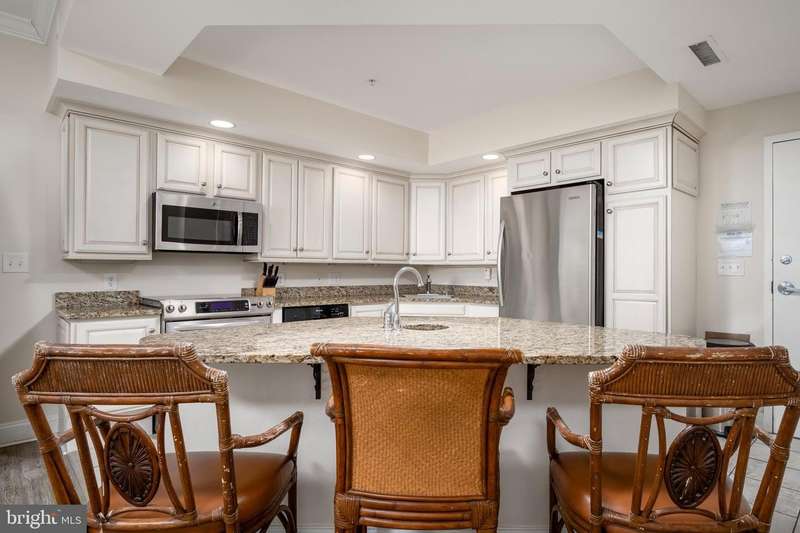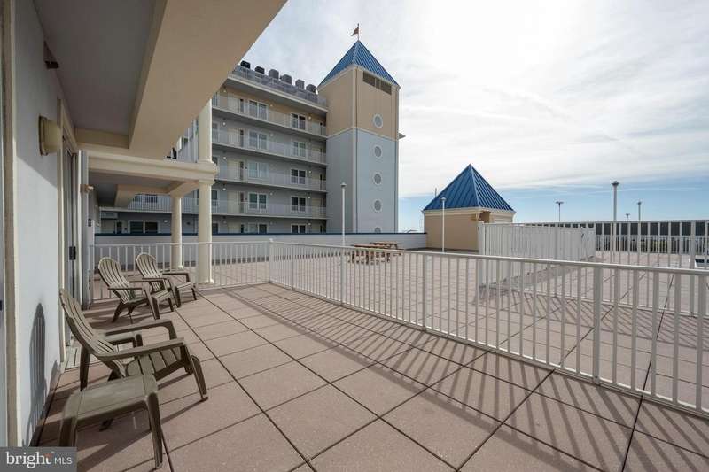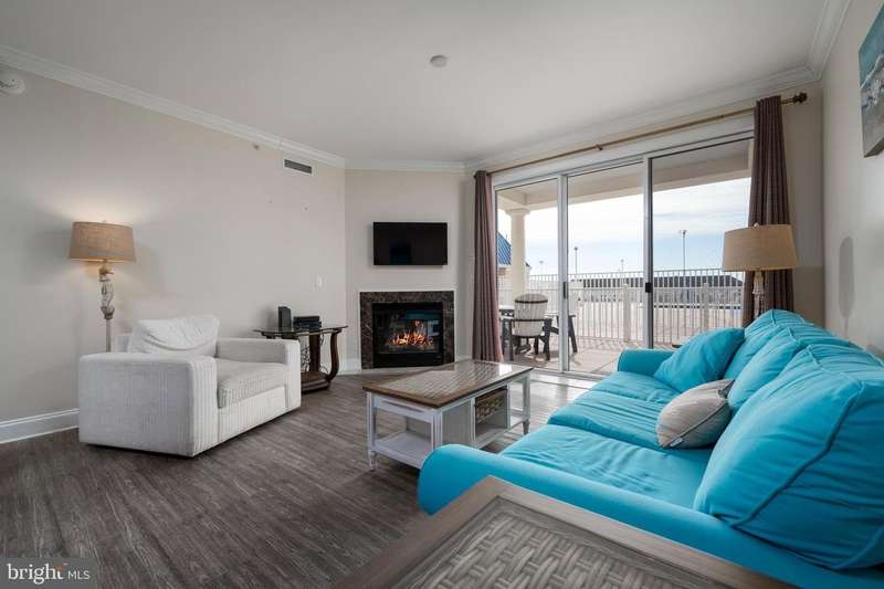 Welcome to this stunning condo at Belmont Towers, offering modern upgrades, resort-style amenities, and an unbeatable Ocean City location! The open floor plan features granite countertops, stainless steel appliances, custom wood cabinetry, a cozy gas fireplace, and coastal-inspired furnishings. Large windows fill the space with natural light, and a spacious deck off the living room is perfect for relaxing or entertaining. Both bedrooms are generously sized with private deck access. The primary suite includes a luxurious en-suite bath, creating a private retreat. Situated directly on the iconic Ocean City Boardwalk, this condo provides immediate access to the beach, amusements, dining, and entertainment. Belmont Towers offers premier amenities, including a rooftop pool with panoramic views, fitness center, sauna, putting green, and secure parking garage. Unit #408 is also handicap-accessible, with wider doorways, grab bars, and easy-entry ramps-making it appealing to a wider range of guests and enhancing its vacation rental potential. Whether you're looking for your dream coastal getaway or a strong investment property, this prime downtown O.C. condo truly has it all!