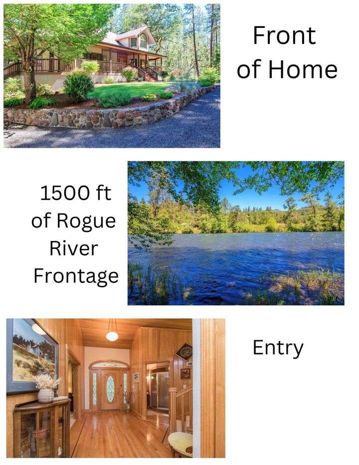 Private. Pristine. Unrepeatable. Over 21 acres with 1500' of Rogue River frontage—your own hidden wilderness sanctuary. Once a manicured showplace (see photos section for photos from previous listing), this rare estate now needs only cosmetic polish—flooring, paint, cabinet repairs, landscaping—to reclaim its glory. Structure & systems are solid and inspected. 2406 sq ft 2-story Craftsman w/mahogany wrap-around porch, soaring ceilings, main-level primary, river-view living room flooded with natural light, chef's kitchen w/custom cabinetry, and loft office/bonus area. Legal guest house, finished garage/shop, abundant water, underground power. Watch elk wander through the evergreens, fish for salmon & steelhead from your private shore, and never see a tourist. Value-priced at $950,000. Possible owner carry terms with qualified buyer.