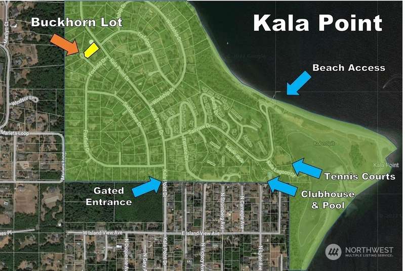 SUNNIEST LOT IN KALA POINT! SHY 0.5 AC - EASY BUILD - END OF QUIET CUL-DE-SAC - 4BD GRAVITY SEPTIC EXP'D 12/22/23. 1yr extension w/health dept once actively working w/builder. Beautifully treed Kala Point lot. Survey lines & septic marked. Public water. Utilities at front of lot, not connected. Large evergreens & perfect grade for your zero-step entry dream home! Beautiful story book setting. Previous plans for 4bd/2.5ba 3 Car Gar & ample parking. Kala Point community offers a clubhouse, pool, tennis courts, private beach, boat launch & trails. Kala Point adjoins Fort Townsend State Park w/ additional trails & beach access. Ideal location - short commute to Port Townsend & Edmonds Kingston Ferry. Wonderful community for your dream home!