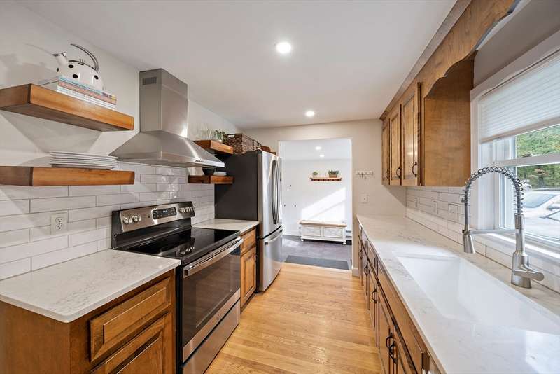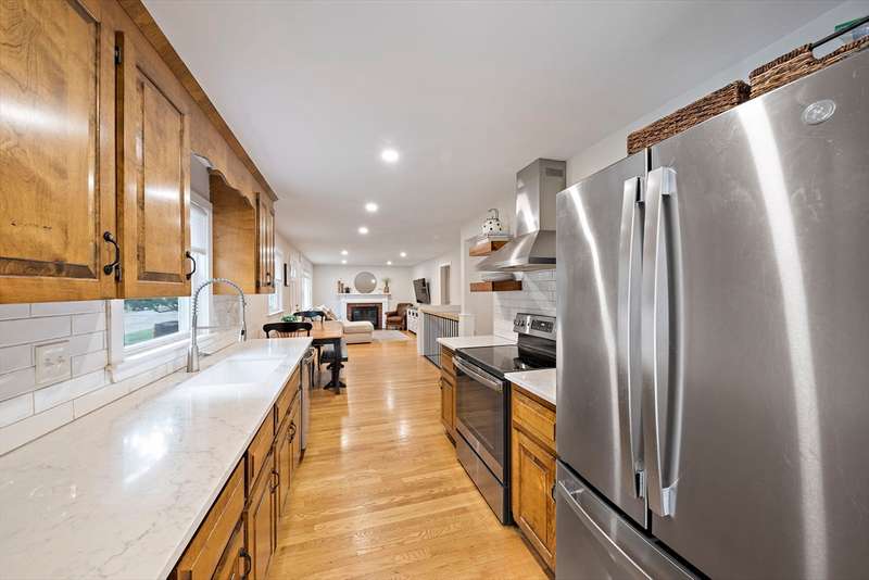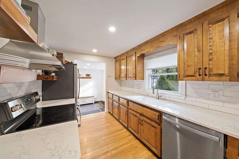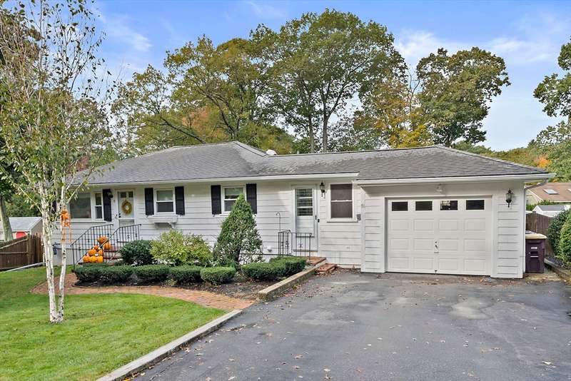 Location is everything! This beautifully maintained ranch sits on a level lot in a desirable neighborhood offering both convenience and charm. The fenced backyard includes an oversized shed and garden area. Inside, a heated garage with loft storage and a large heated mudroom lead to a country kitchen with custom cabinetry and dining area. The formal living room with a wood-burning fireplace is perfect for relaxing. Three bedrooms feature hardwood floors. The finished lower level offers flexible space for a family room or playroom. A bright 15' x 21' bonus room with separate entry, gas stove, and electric heat makes a great studio, gym, or guest area. Easy access to South Weymouth Commuter Rail, Braintree T, Route 3, South Shore Hospital, shopping, and restaurants. Welcome home!