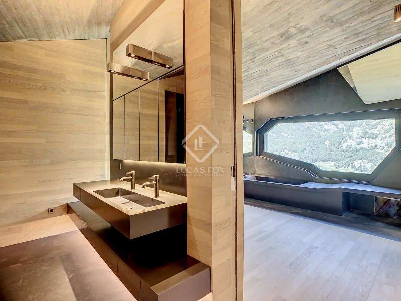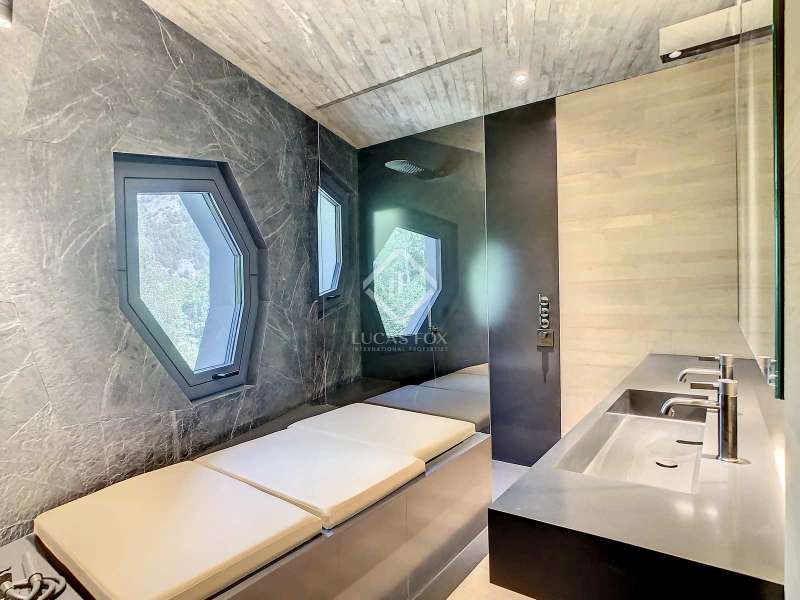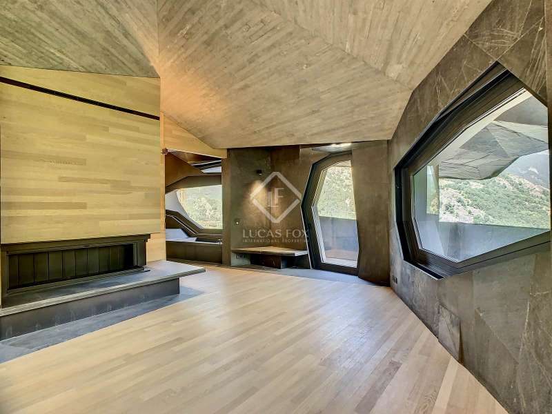 Lucas Fox is pleased to present this exclusive new build development located in Ordino, Andorra. The La Querola de Ordino development arises from a multicultural concept by the French architect Jean Nouvel from Ateliers, who collaborates on this project with the Barcelona architect Josep Ribas from Ribas & Ribas Arquitectos and the Andorran architect Jordi Sala from Arquitectura Jordi Sala. The development is surrounded by a magnificent natural area, therefore it offers impressive views and outdoor spaces to enjoy the surrounding wooded environment. Likewise, it enjoys magnificent natural light, since special attention has been paid to the orientation of the buildings, as well as to the configuration of large windows and the use of mirrors. It presents a unique contemporary design, with a natural slate façade with irregular shapes. The development integrates perfectly with the mountainous environment of the alpine forest, thanks to its design and the use of natural materials such as slate, wood, steel and glass. This ground floor apartment is distributed over two magnificent floors. On the ground floor, there is a private garage for two vehicles, a wardrobe and a laundry area. In addition, enjoy a large family-friendly room, a room presided over by a large fireplace that could be used for the uses that the new owners wish, such as a cinema room or a games room, among others. The floor is completed with an equipped kitchen diner and a complete bathroom . On the first floor, there is a magnificent 46 m² garden , perfect for use as a chill-out area or outdoor dining room so you can relax, take advantage of the outdoor space and enjoy meals with family or friends. Inside, there is a living-dining room with a magnificent fireplace that brings warmth to the space and with large windows that allow abundant natural light to enter and offer incredible views of the mountains. Next, the kitchen is presented, fully equipped with the best brands, integrated cabinets and a solid wood work table. The day area is completed with a guest toilet. The night area offers two bedrooms: a double bedroom with its private bathroom and the master suite with its private bathroom and dressing room. This property enjoys natural materials such as wood and stone, combined with exposed concrete. Likewise, they have been designed to offer great energy efficiency, since all the details such as orientation, solar exposure or ventilation have been taken care of. Added to this is the use of geothermal energy as a source of green energy to power heating, air conditioning and hot water. The apartment has integrated furniture such as benches, Viabizzuno lighting systems, custom windows and Lutron home automation. The kitchen comes fully equipped with the latest Miele appliances with a solid oak center table. The bathrooms and toilets have Corian material, with custom equipment. La Querola de Ordino offers magnificent communal areas, for the enjoyment of its residents, such as an outdoor pool and a spa, with all kinds of amenities such as a jacuzzi, relaxation area, massage area, sauna, hamman, fitness room and yoga room. In addition, they offer gardens with careful landscaping, with native species, ponds and rocks; all designed for your enjoyment and to offer you a place of rest and relaxation. Each of the buildings has stairs and a private lift . In addition, special attention has been paid to accessibility and safety. Get in touch for more information.
