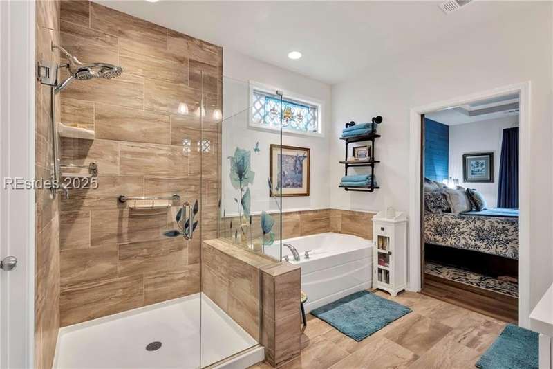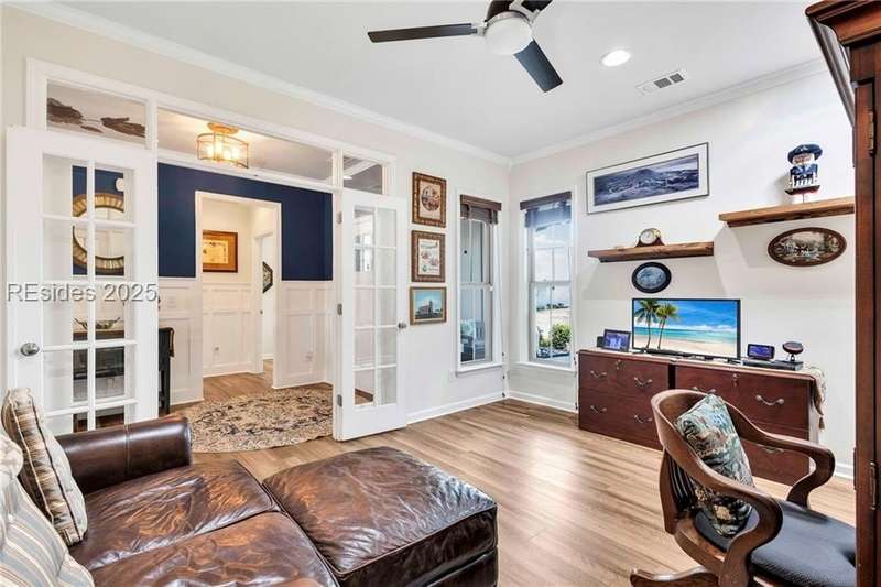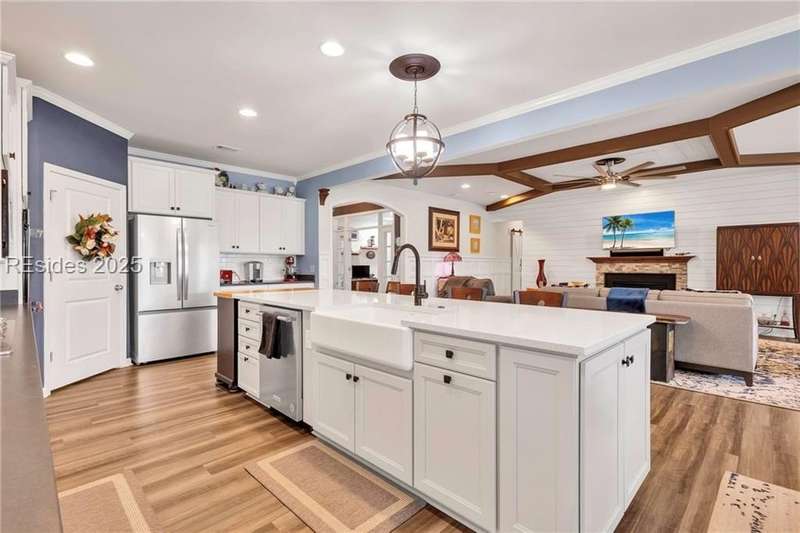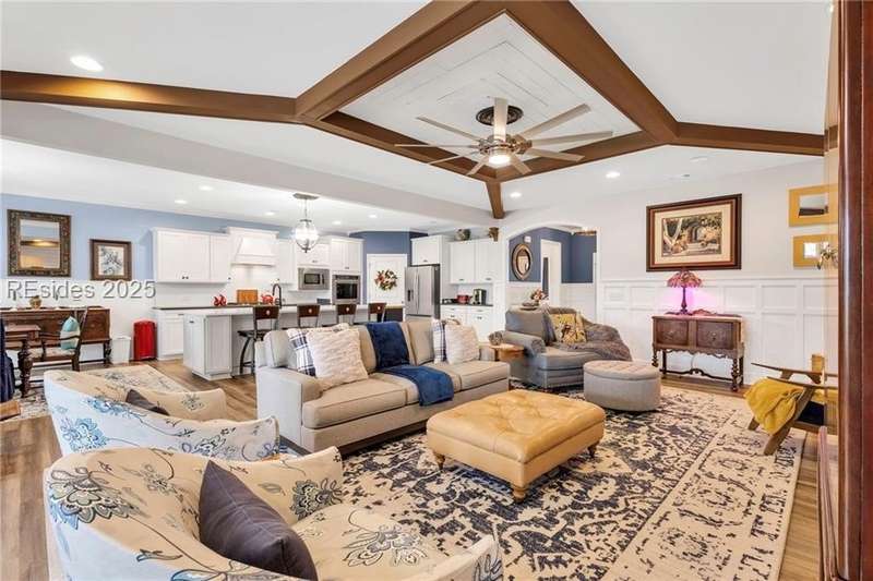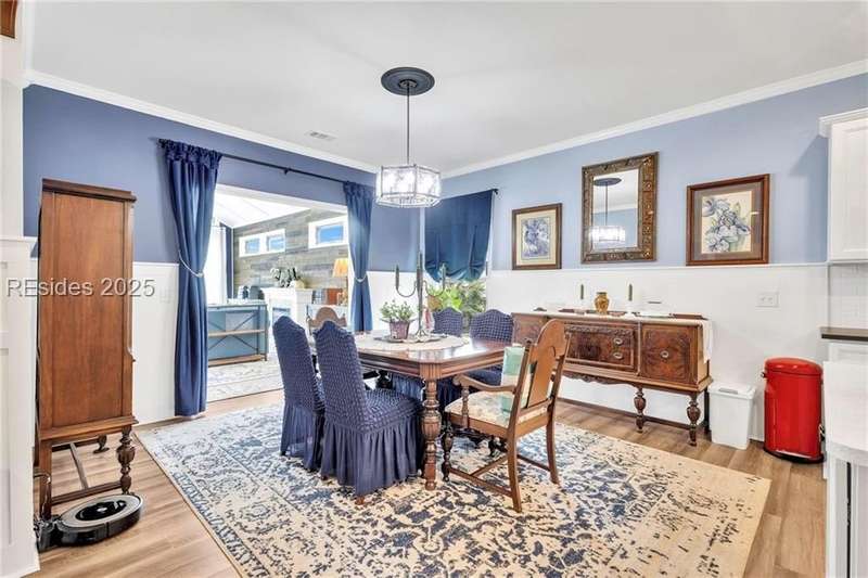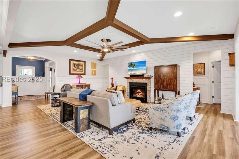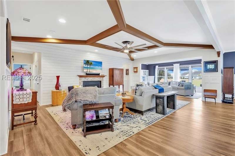 Exquisitely updated, spacious, 3 Bed 3 Bath approx. 3,286 sq ft Dunwoody Way with TWO sun filled All Season Rooms, each with their own Mini Splits, plus a Carolina Room with built in display/storage. Large L/Room boasts striking timber beam ceiling, shiplap wall, Nat Gas fireplace. Entertainers delight Eat In Kitchen with Quartz C/tops, large Island, Farmhouse sink, SS Apps, Walk In Pantry. Other features: Epoxy floored 2 Car & Golf Cart Garage, Walk Up Attic, separate Office/Den, designer lighting, tons of storage, copious crown molding, extensive paneling accents, sumptuous Master Suite, grand Golf views, solar film. Close to amenities.