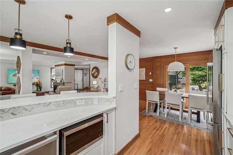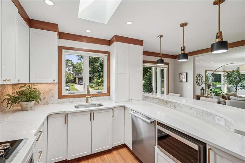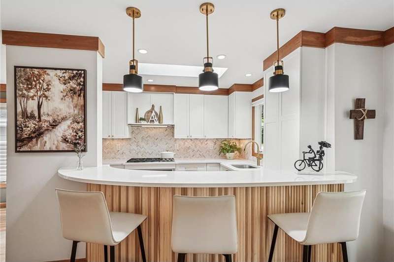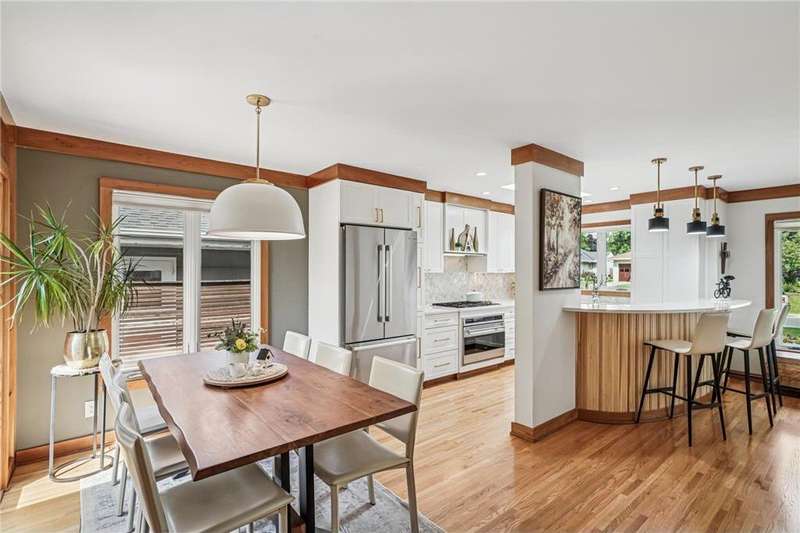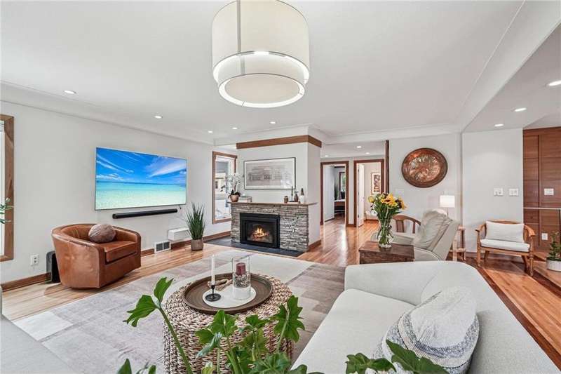 Please submit all offers by 6:30 PM 10/09. ** Modern midcentury style shines in this move-in ready home featuring distinctive architectural millwork with maple inlay crown molding, flat-panel wall accents,hardwood floors throughout the main level, and distinctive light fixtures that tie the whole look together. The spacious living room features a gas fireplace and oversized windows that fill the home with natural light. The updated eat-in kitchen showcases white cabinetry, granite counters, a striking chevron tile backsplash, and a peninsula with a fluted wood base design feature. Decorative Shoji doors add a unique touch. The owner’s suite offers an updated bath with a double vanity. The walkout lower level is ideal for guests or an in-law suite, complete with a family room and gas fireplace, two bedrooms, a ¾ bath, laundry with kitchenette, office/playroom nook, flex room, and new flooring throughout. Two decks provide easy outdoor living—one off the dining room and another behind the garage with sliding doors that brighten the space and make grilling convenient. Fabulous curb appeal in a prime location near Southdale and 50th & France. A true entertainer’s home with over $150K in updates, improvements, and meticulous care (see supplements). Seller to include a one-year home warranty. The home has been pre-inspected by the sellers.