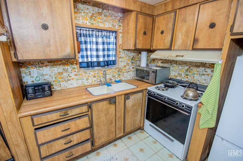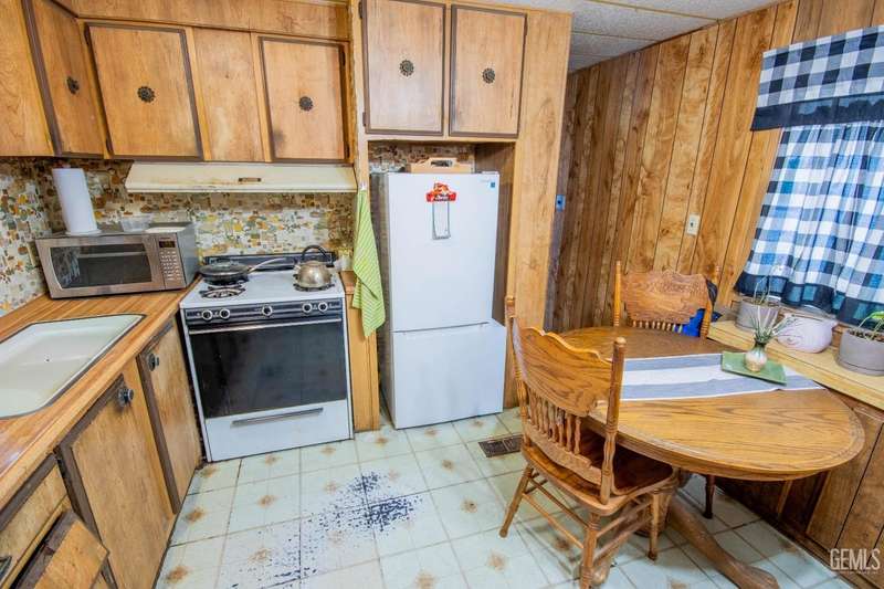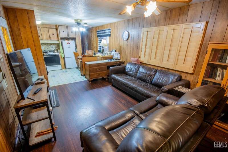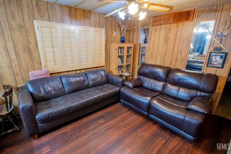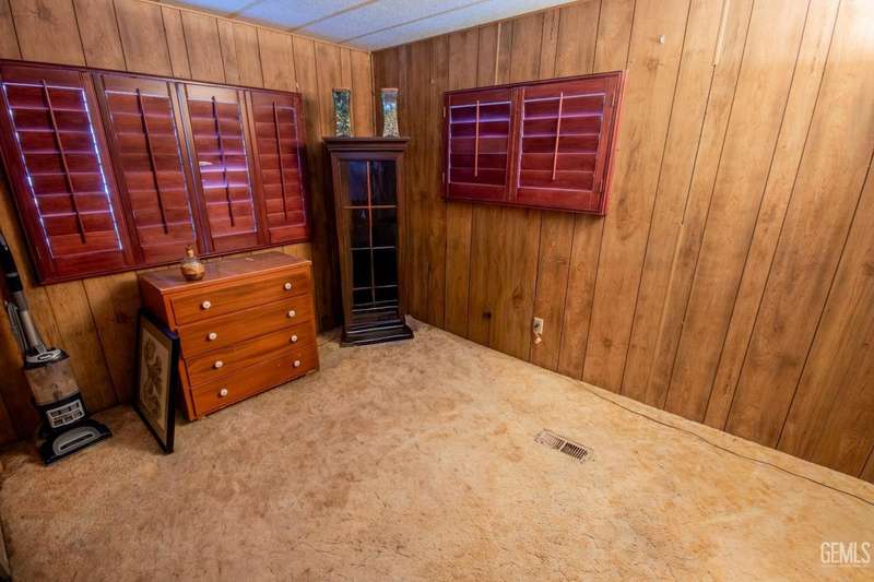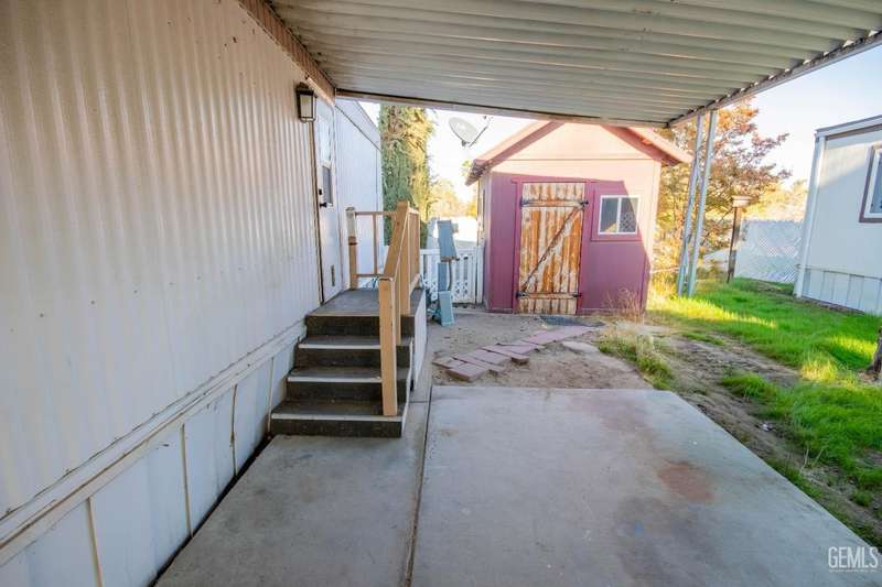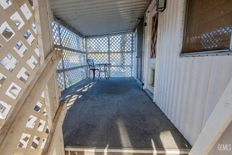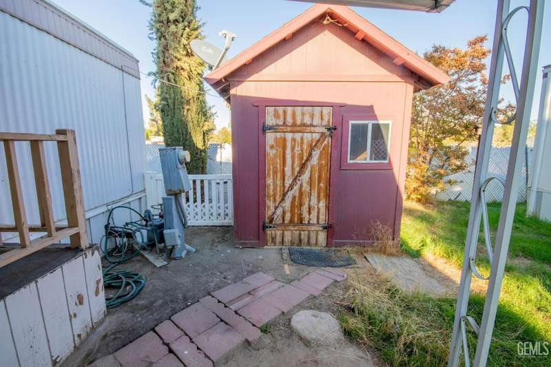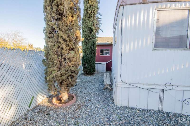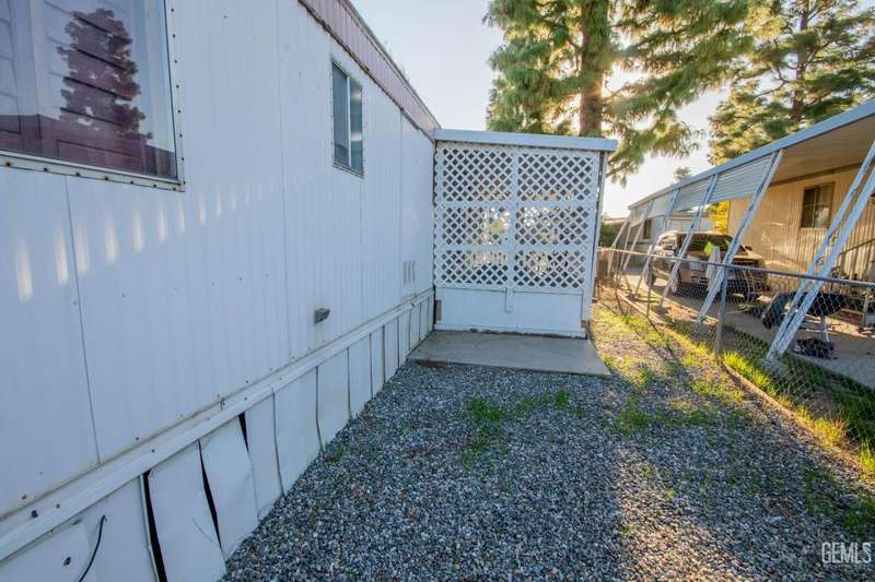 Here is a darling Skyline Built manufactured home in the popular Lazy H Ranch Mobile Ranch Community of Rosedale. This single wide floor plan is set up on a split wing design with a bedroom on the north end of the home and a bedroom on the south end of the home. Nestled in the middle is a good sized living great room area, a kitchen, a breakfast area and an indoor laundry room. The features are wonderful with wooden shutters on most windows, a new window mounted air conditioner, durable wood look laminate flooring, a lattice enclosed patio, low maintenance landscaping and a wonderfully designed work room. This work room can also be a craft room. The design of this detached structure is perfect with overhead storage, a work bench and multiple electrical outlets. This park offers a convenient Rosedale Area location in the 93312. Lets schedule your tour today!