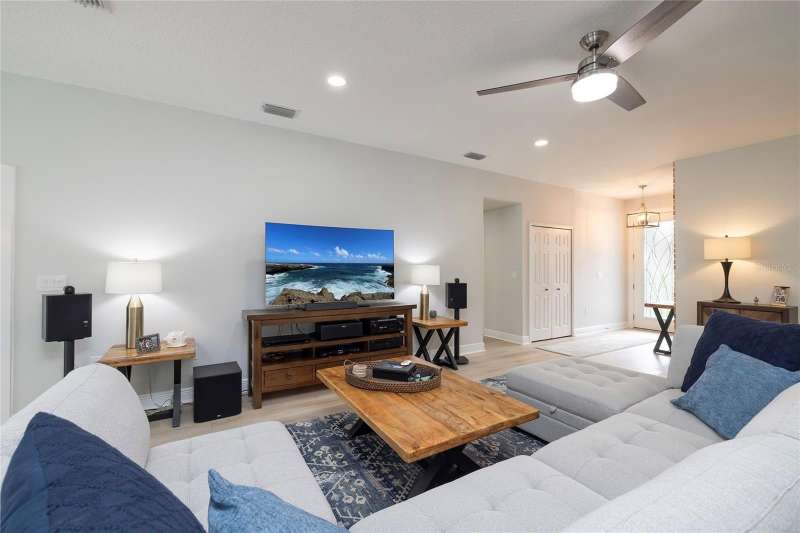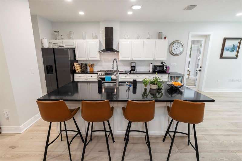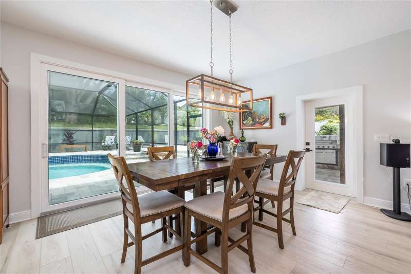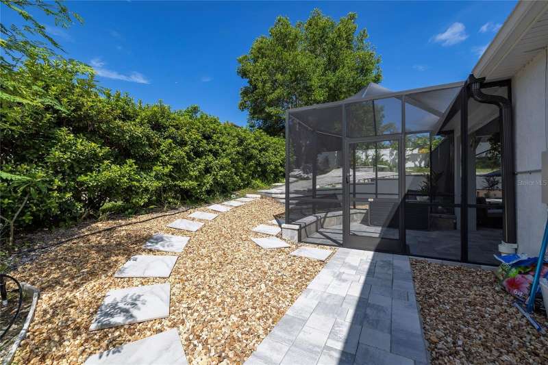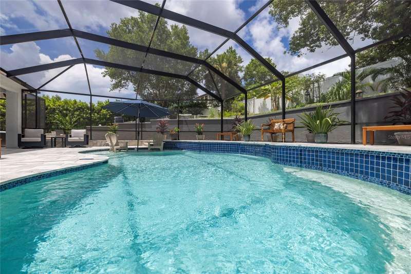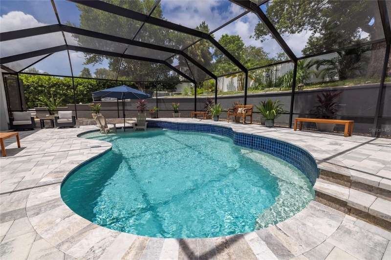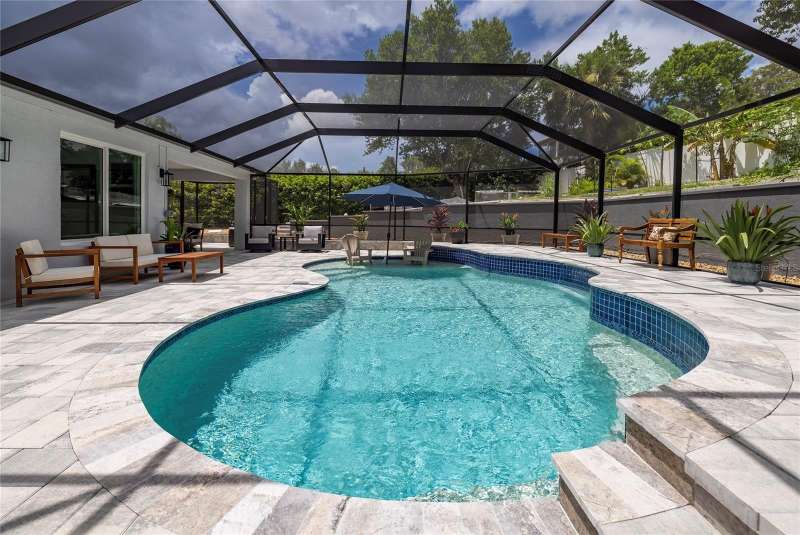 Welcome to 1639 Lakeside Drive—your beautifully renovated retreat just steps from Lake Tarpon! Come fall in love with this solid block construction home offering the perfect balance of modern upgrades and Florida lifestyle. Featuring 3 bedrooms plus a den, 2 remodeled bathrooms, and a 2-car garage, it’s designed for both style and functionality. Located just steps away from the waterfront Park on Lake Tarpon where you can launch your Kayak or paddleboard. Step inside and notice the beautiful brick accent wall as you enter the home. The open-concept layout centers around a gorgeous kitchen with quartz countertops, bar seating, crisp white cabinetry, and stainless-steel appliances—including a brand-new GE CAFÉ Series gas stove with warranty. The Kitchen opens to the living room with views of the pool which are evident from the moment you step through the doors. The living spaces flow seamlessly with luxury vinyl plank flooring throughout, while brand-new hurricane-rated impact windows and doors bring natural light, energy efficiency, and peace of mind. The Primary Bedroom features a gorgeous, remodeled bathroom, walk-in closets and access to the lanai. The split floor plan is ideal giving privacy for guests. The two guest bedrooms share a beautifully remodeled bathroom, with one bedroom offering access to the lanai and outdoor Kitchen. The den provides great flex space for those who work from home and can double as extra entertainment space. Step outside to your own private oasis! A brand-new Salt Water, Heated Pool with waterfall feature and expansive paver decking with screened enclosure creates the ultimate setting for year-round entertainment. The Chef in the family will enjoy grilling outside in the outdoor kitchen with Bar Seating. The backyard is a tropical haven, lush with exotic fruit trees and plants including mango, banana, peach, tangerine, plums, papayas, pineapple and more—truly a gardener’s paradise with built in drainage and irrigation. Whether you’re relaxing by the pool, enjoying fresh fruit from your garden, or launching your kayak onto Lake Tarpon, this home offers a rare opportunity to live the Florida dream. The neighborhood features a lakeside park with fishing pier, playground equipment and observation dock—perfect for soaking in the lake views. Practical upgrades provide additional value: New roof (2021), AC replaced in 2019 with a new capacitor in 2025, plus a new Vinyl Fence installed in 2023. There is no HOA or flood insurance required. The current owners have invested over $225,000 in upgrades since 2023, ensuring this home is truly move-in ready. Ask your Realtor for a copy of the full list of upgrades for this home. Located in Tarpon Springs just minutes from shopping, dining, Gulf beaches, and the famous Sponge Docks, this home combines everyday convenience with lakeside living. Don’t miss your chance to schedule your showing today!