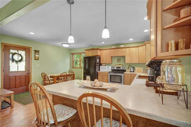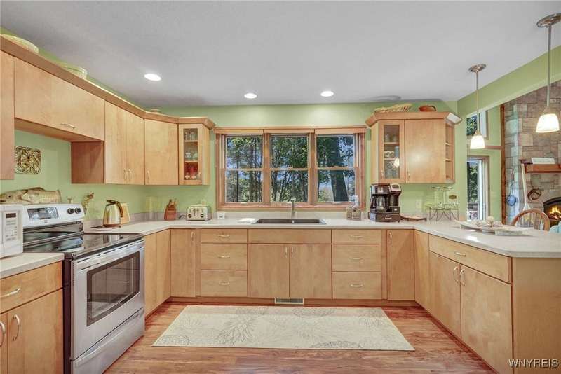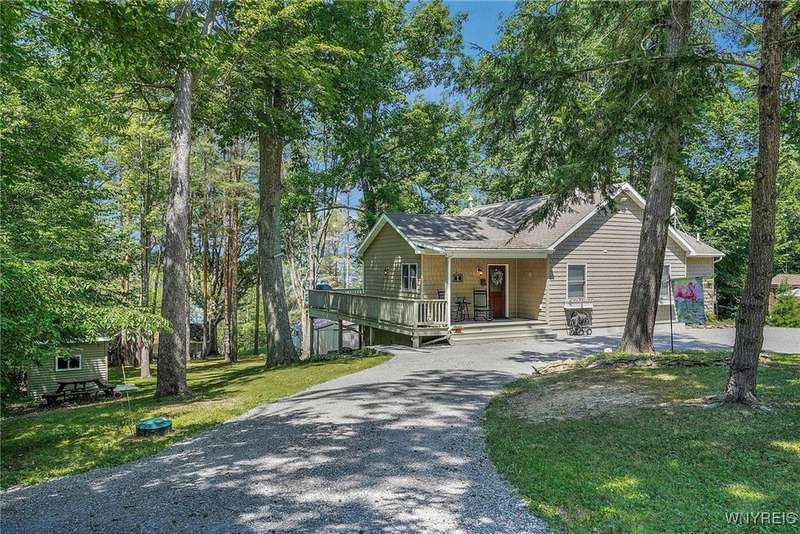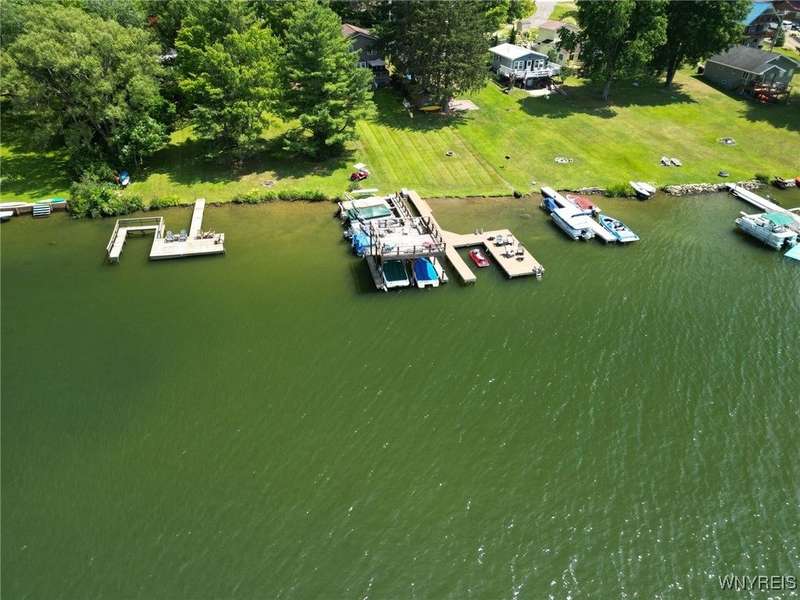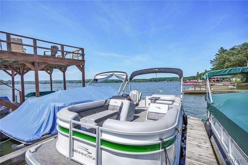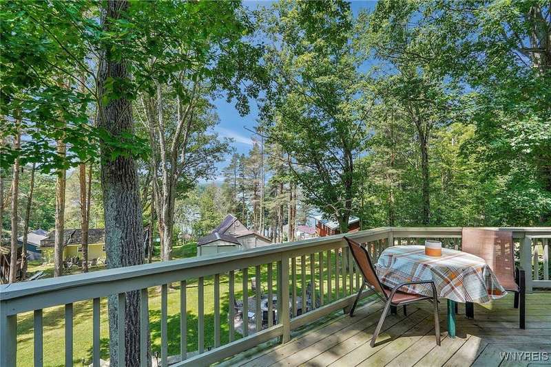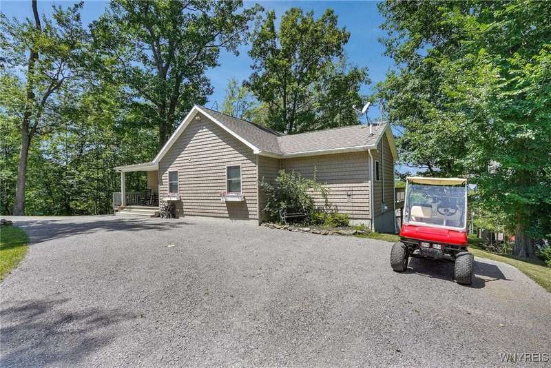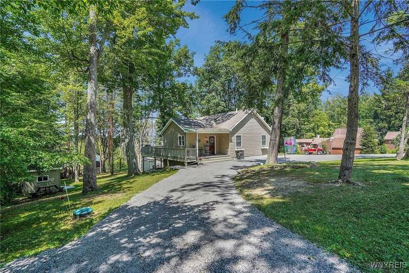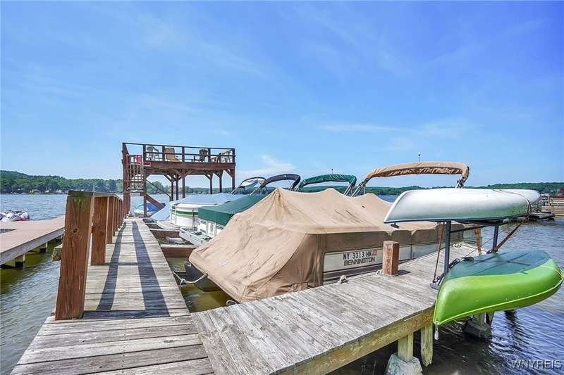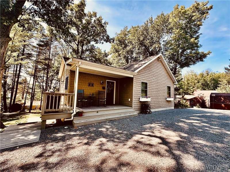 With 5 sleeping rooms and 3 full baths, this tranquil getaway is the perfect spot to enjoy with family & friends; or to invest as a rental. Less than a 90 min. drive from either Buffalo or Rochester; Rushford Lake is a hidden gem! The area has so much to offer: boating, fishing, tubing, local beach with lifeguards, hiking trails, golf, skiing... The original cottage was torn down and replaced with this insulated, mostly maintenance free home in 2007. This is truly a property to enjoy all year?. Watch sunsets from your deck or wall of windows; Summer fun on the lake; spectacular Spring & Fall foliage and hiking; or snuggle by the floor-ceiling stone fireplace and watch the snow fall. The property shares a highly coveted boat dock w/ upper sun deck along with just 5 others for less than $100/ year. While this sits on a hill; there is plenty of flat land to enjoy your yard?and no steep stairs to get to your dock. Just load up your golf cart and cruise around the block to drive straight down to the dock. The property can also be purchased fully loaded ( newer Pontoon boat, golf cart, riding mower, fully applianced & fully furnished). The road is serviced by the town for year-round access.