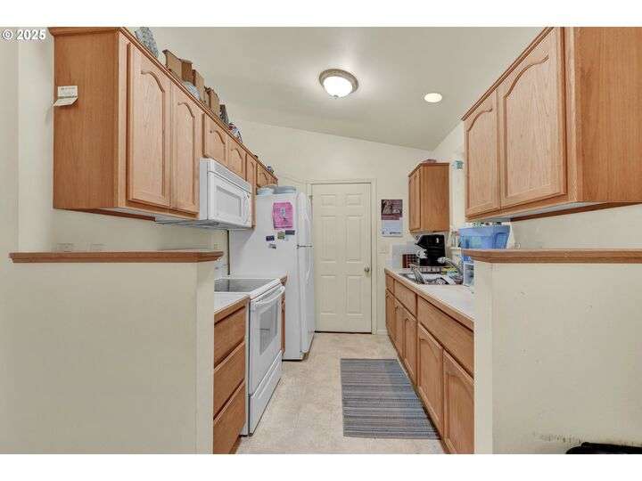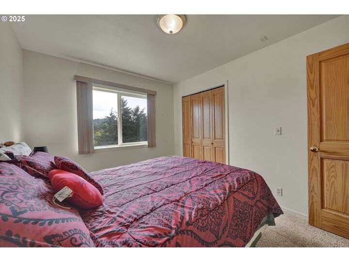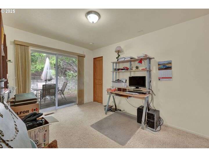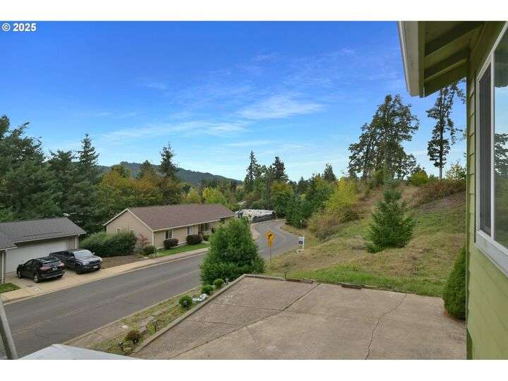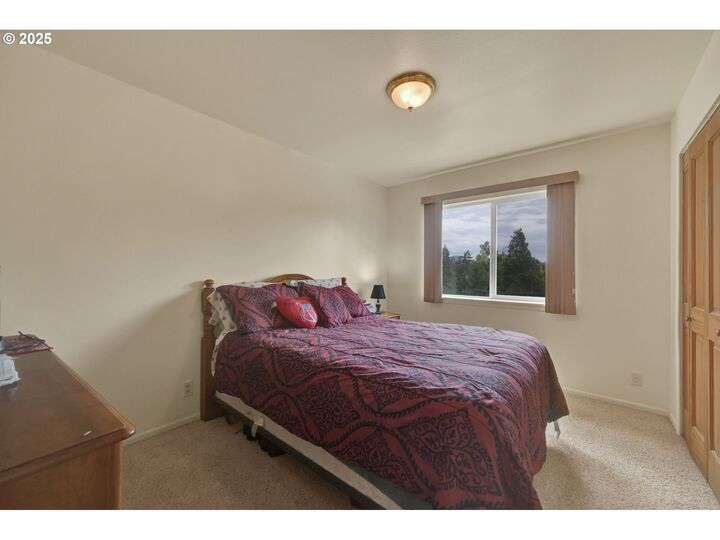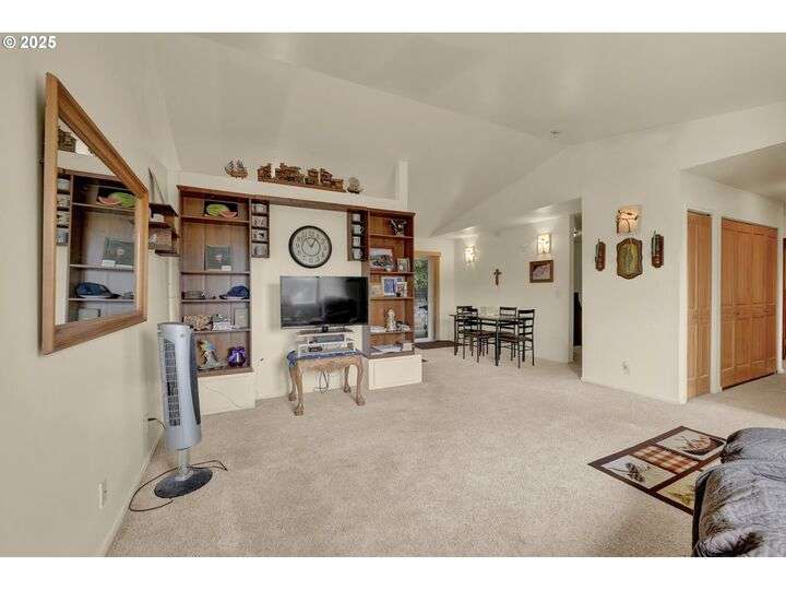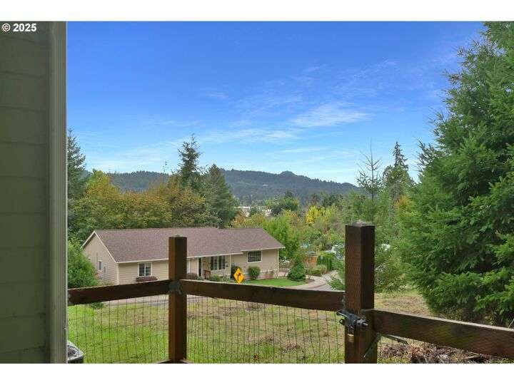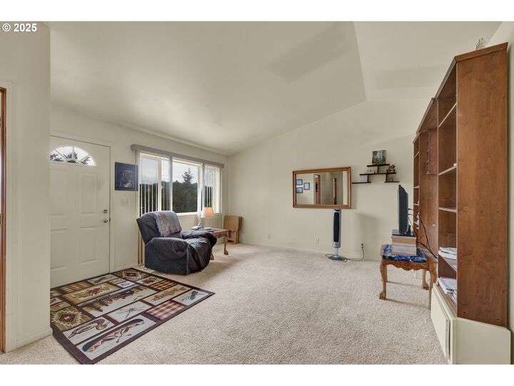 Sweet one level home with beautiful views. Located just minutes to downtown Cottage Grove this one level home features vaulted ceilings in the living and dining room and beautiful eastern views. Built in shelves in living room, custom cabinets in kitchen, custom bedroom doors. Den with walk-in closet and sliding glass doors to back patio. Currently lots on either side of home are vacant. Indoor utility room and attached one car garage. Convenient location near river, shopping, busline, and restaurants. New roof installed in December of 2024.