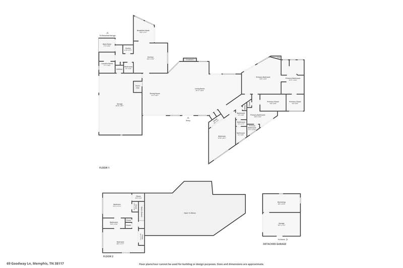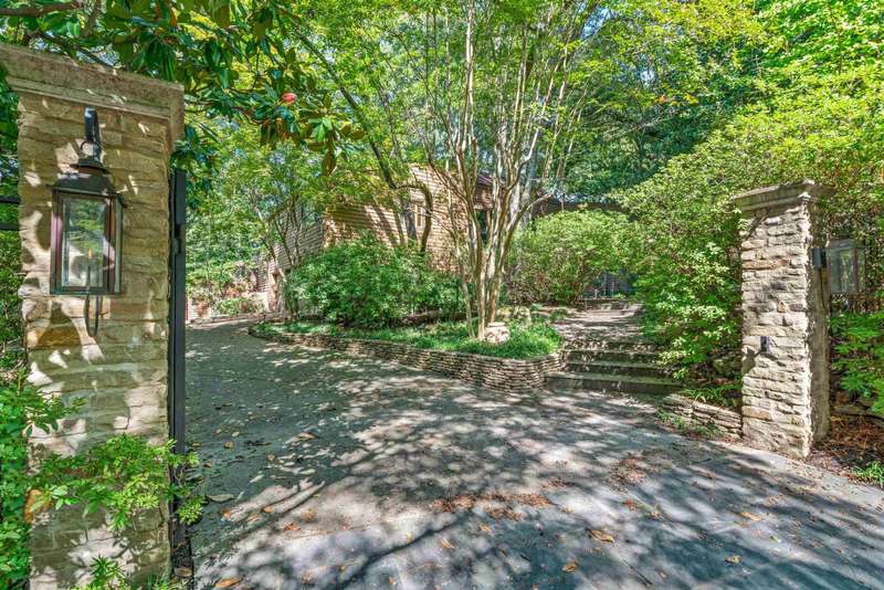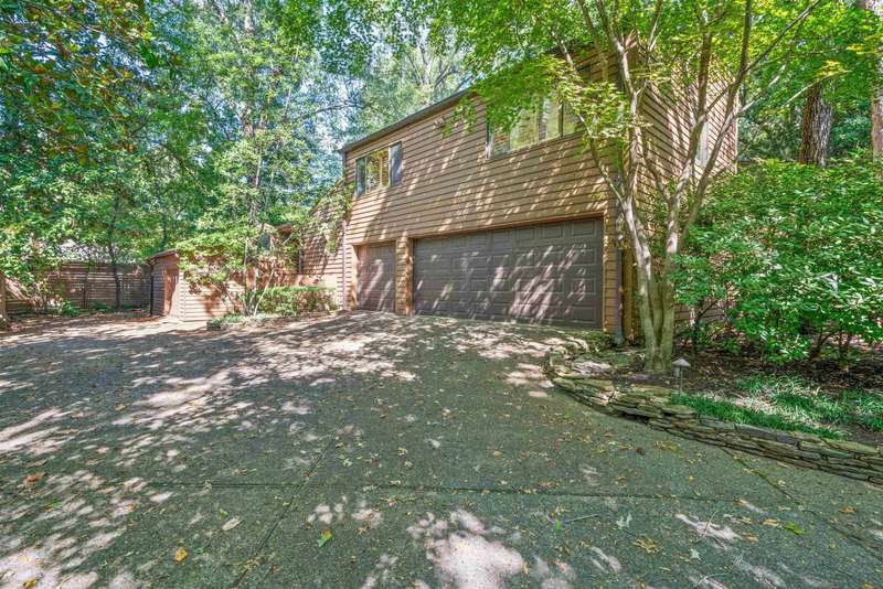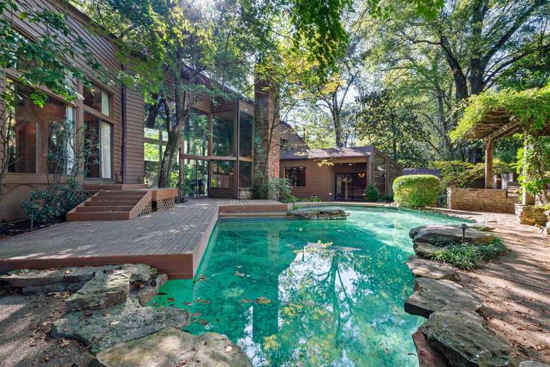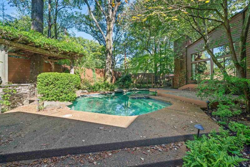 Follow Goodway Ln to the end & find an architectural gem w/ a jaw-dropping multi-story sky-lit living space. You'll feel like you could float thru the soaring windows right out to the pool in its naturalistic setting. Special features abound, like 2 full bathrooms & walk-in closets in the primary suite. A 2nd FP & built-in bookcases make the suite a true retreat. The kitchen was renovated w/ high-end appliances including 3 dishwasher drawers, huge gas range & double ovens. Ice maker, wet bar, & wine coolers+ a breakfast rm w/ a pool view. Upstairs, 2 bedrooms w/ fun loft spaces share a renovated bath. Three car garage + a detached single garage & large workshop. Interior planting beds were a signature of architect Bob Browne, a leader of modern architecture in Memphis. Outside, enjoy a bluestone porch, multiple patios & decks, & an outdoor kitchen. Recently appraised by Nick Lee for $760,000 and priced to sell! No FHA or VA financing. Home, pool and appliances to convey AS IS.