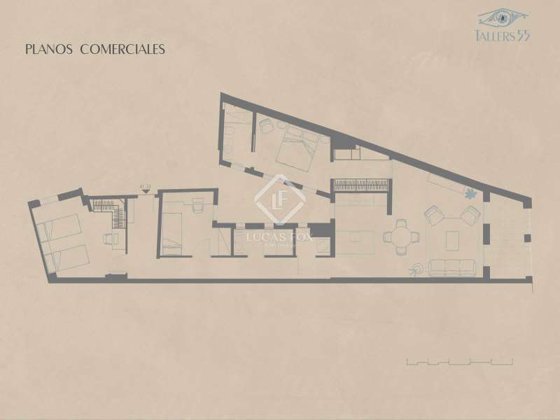 Lucas Fox presents Tallers-Residences, an exclusive new build development in the heart of Barcelona. Located in a fully refurbished historic building , this collection of 12 homes combines original architectural charm with a contemporary and elegant interior design. The spacious apartments, with three bedrooms and floor areas ranging from 108 to 120 square meters, stand out for their functional layouts, high ceilings, and high-quality finishes. Wooden carpentry, synthetic wooden floors , and bathrooms clad in large-format porcelain tiles create sophisticated and inviting spaces. The kitchens, equipped with high-end appliances , are designed to offer maximum comfort and functionality. This particular property is located on the fourth floor of the building and has 120 m² of interior space and 8 m² of private exterior space. It has three bedrooms, two bathrooms (one en suite ), and a spacious living room dining room area with an open kitchen, designed to maximize natural light. Its functional layout and open-plan design provide a sense of well-being and fluidity in every room. The development includes an exclusive communal area with a pool and sun terrace, as well as a social and coworking space. These are ideal spaces for relaxing, socializing, or working without leaving home. Some homes feature private balconies or terraces, providing added value in one of the city's most coveted locations. Tallers-Residences represents a unique opportunity to live in the centre of Barcelona and enjoy all the comforts of a modern property without sacrificing the character and history of its surroundings. Don't hesitate to contact us for more information and to arrange a visit.