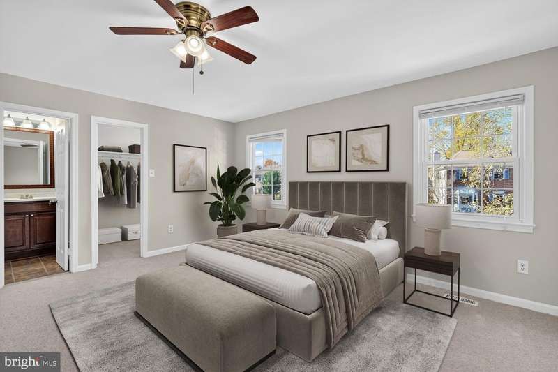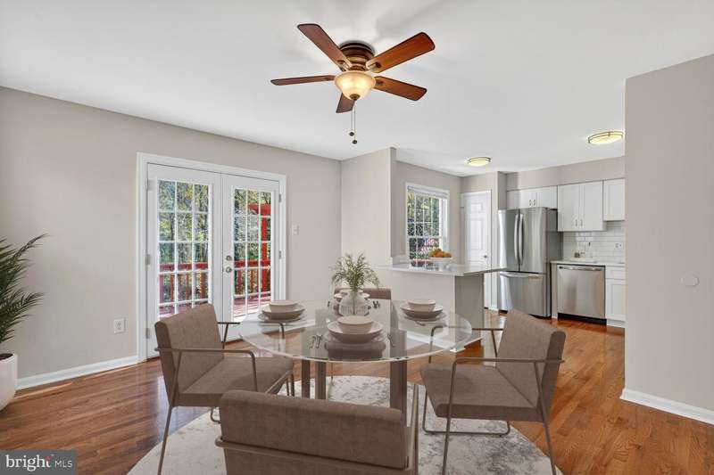 Welcome to 7137 Lake Cove Drive, a stunning end-unit townhome backing to trees in Alexandria's desirable Lake D'Evereux community. With a side entrance and windows on three sides, this bright and inviting home offers the feel of a detached house. It has been freshly painted, with new carpet throughout the upper level and brand-new dazzling hardwood floors flowing across the main level. Elegant crown molding gives the lovely dining room a touch of class. The beautifully updated kitchen showcases modern white cabinetry, sleek quartz countertops, stainless appliances, a useful peninsula and a stylish subway tile backsplash. The kitchen opens to the spacious family room centered by a cozy fireplace with a chic tile surround and detailed wood mantel. Step outside to the expansive deck with stairs leading to the fenced-in backyard and patio overlooking a serene, wooded view-perfect for weekend barbecues or relaxing with a good book. Upstairs, you'll find three generously sized bedrooms, each with a ceiling fan and walk-in closet. The updated hall bath features a deep jetted soaking tub. The large primary suite offers a huge walk-in closet and a luxurious en-suite bath with a double-sink vanity, oversized mirror, and modern lighting. The lower level includes another tastefully renovated full bath with floor-to-ceiling tile in the shower, extra storage space, and a versatile bonus room ideal for an office, guest room, or home gym. The spacious rec room opens to a private brick patio in the tranquil backyard. The hot water heater was replaced in 2023, and the HVAC system was updated in 2025. This exceptional home in a popular lake community is just a few miles from Kingstowne's shopping, dining, and entertainment, along with parks and walking trails. Conveniently located just outside the Beltway, it provides easy access to bus routes, the Metro, DC, Old Town Alexandria, Amazon HQ and Fort Belvoir.