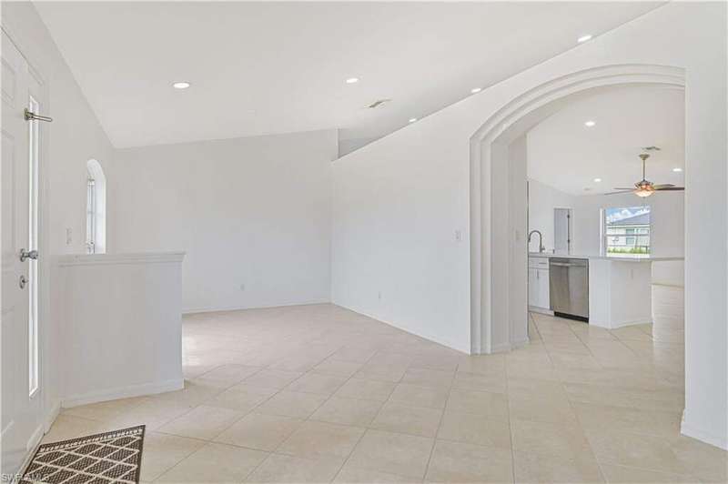 No Flood Insurance Required - High and Dry! Seller offering $5000 towards Buyers closing costs/prepaids. This spacious and beautifully updated 3-bedroom, 2-bath home is perfect for buyers seeking extra room to live, work, and relax. Recent upgrades provide peace of mind, including a newer roof, brand-new ice-cold A/C, accordion storm shutters, updated appliances, new countertops, stylish bathroom vanities, and fresh interior paint throughout. Enjoy the comfort of a screened lanai off the back of the home, an interior laundry room with hookups, a dedicated dining area, and a versatile flex space at the front-ideal for a home office, playroom, or reading nook. Located in a quiet, established neighborhood close to shopping, top-rated schools, and just a short drive to multiple beautiful beaches. The big-ticket items are already taken care of-move in and start enjoying the Florida lifestyle!