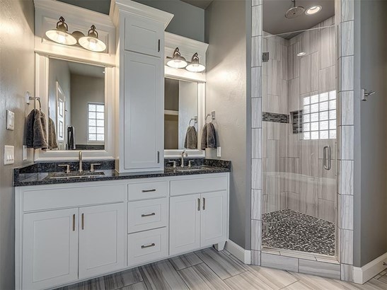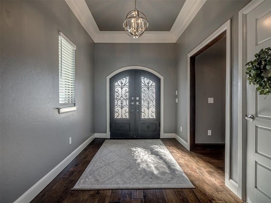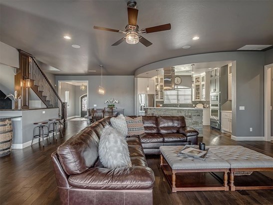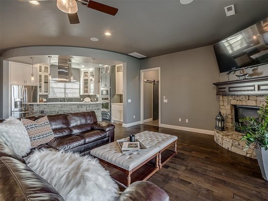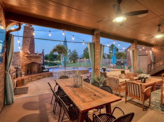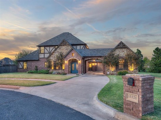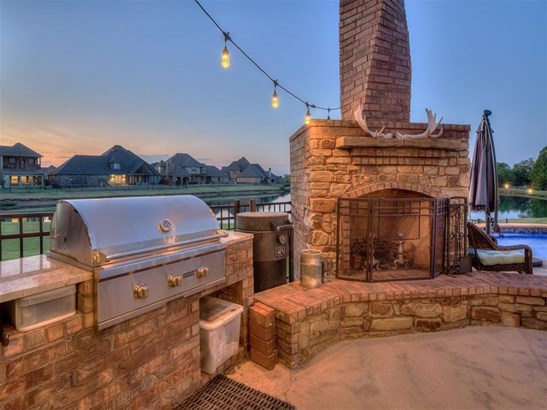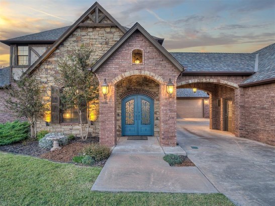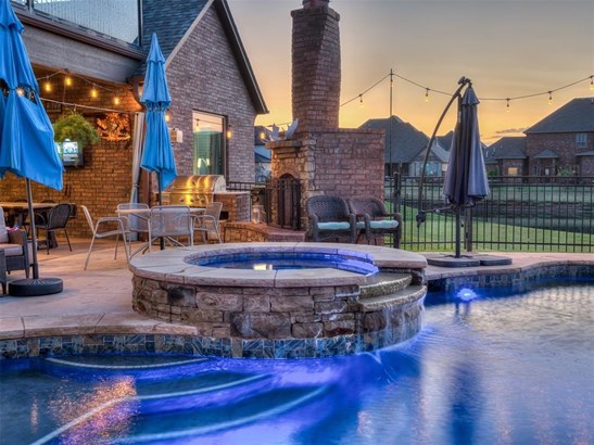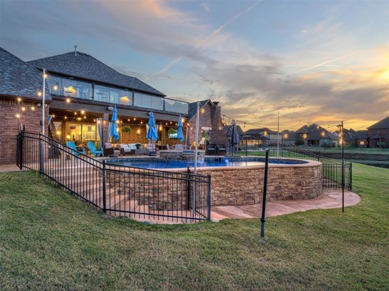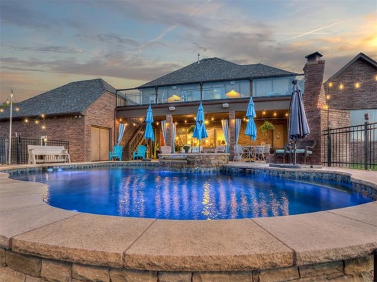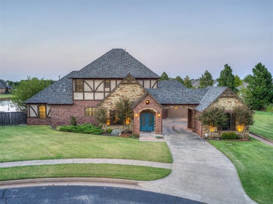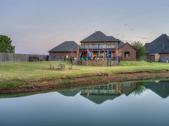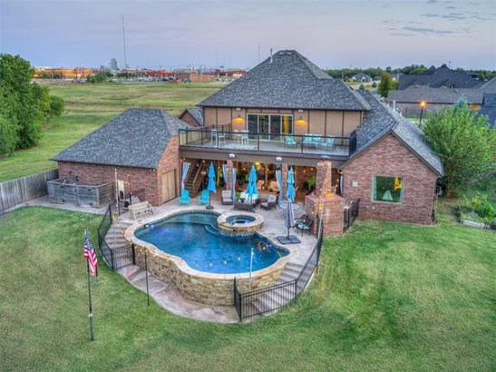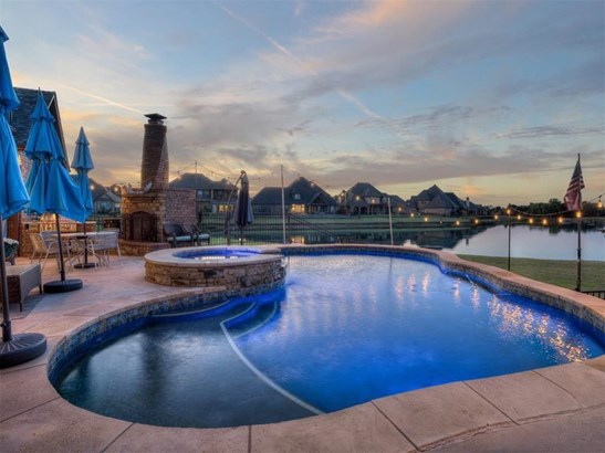 Unparalleled elegance meets modern luxury living in The Lakes of Traditions This contemporary masterpiece located in the highly sought-after Edmond gated community showcases a custom design that provides ample space for relaxation and entertainment for your lifestyle A spectacular resort style pool redefines outdoor#xA;living with a spa fireplace fire pit and multiple outdoor living spaces Plenty room to add convert upstairs space to a fourth bedroom The heart of this home lies in the living room with floor to ceiling windows and direct access to the oversized patios overlooking the pool and a tranquil pond Modern kitchen design that blend style and function for a space that is cutting-edge yet inviting Fit for the chef in your family the kitchen is equipped with appliances including gas range butlers pantry and wrap around breakfast bar The downstairs primary suite is a private retreat unto itself complete with a corner fireplace a door leading to the backyard patio and ensuite bathroom Free standing soaking tub rain shower head in the shower stunning floors featured in this bathroom Upstairs features a media-game room and 2 bedrooms bathroom plus storage room Home office located off the entry with wood paneling The kitchen pantry also serves as a safe room Whether youre entertaining guests or enjoying a relaxing day with family the endless hours of fun and entertainment are yours to enjoy in this luxury estate Privates Tours only Welcome Home