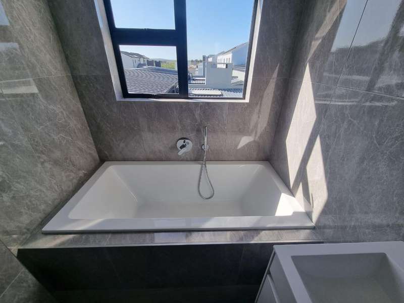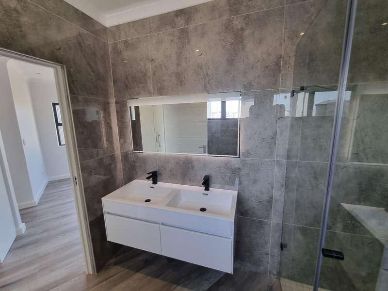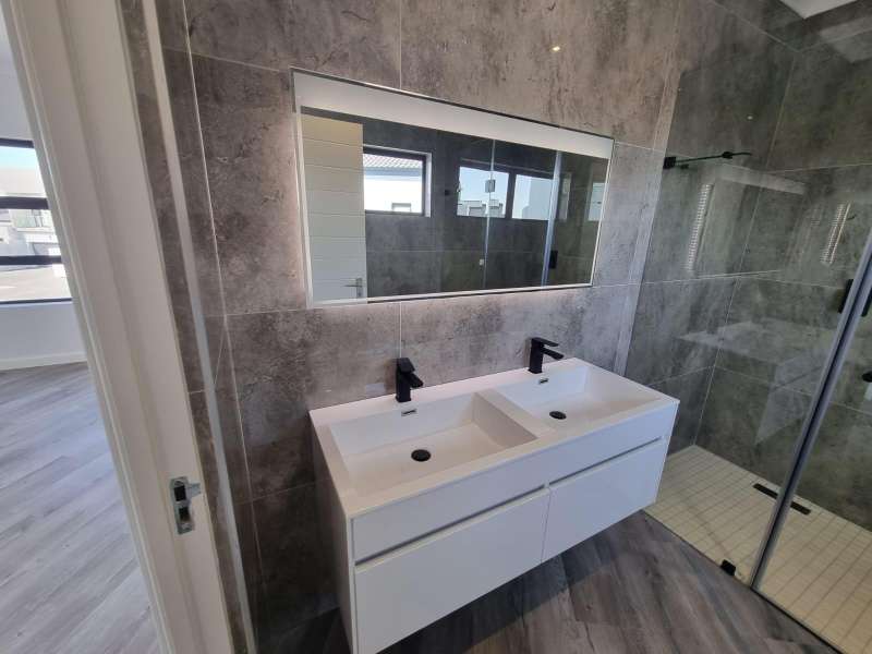 Development has officially started. Plot & Plan Ground Storey: -Kitchen (Waterfall countertop with built in preparation sink) -Scullery with double sinks (provision for dishwasher, washing machine & tumble dryer) -Enclosed entertainment area with built in braai -Living area -Dining room -Guest bedroom -Guest bathroom (Shower, Vanity & Toilet) -Double car garage Upper Storey: -Study -Pyjama lounge -2nd Bedroom -3rd Bedroom -Bathroom (Bath, Shower, Vanity & Toilet) -En suite Main bedroom (Bath, Shower, His and Hers Vanity & Toilet) See the plans to get a better idea of the layout. Top of the range finishes. Photos are from recently completed houses by the same developer.