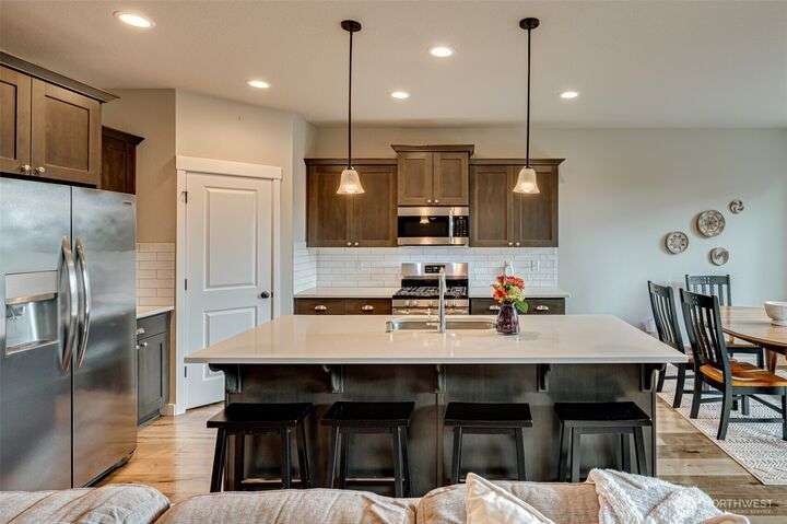 Amazing one level home with 3 car garage in desirable Greely Farms community! Situated on an oversized lot with pristine landscaping, this home is dialed in and ready for its next owners. Inside is home to an open floor plan, 3 bedrooms, primary suite has soaking tub, walk in shower and large walk in closet. Kitchen is well appointed with eat at island, dining area, pantry and lots of cabinet space! 3 car garage has 3rd extra deep bay with plenty of storage! Enjoy evenings on your back patio or stunning side patio with stamped concrete and plenty of room to make your own backyard oasis! Greely Farms is a beautiful community with walking trails, playgrounds in an amazing location!