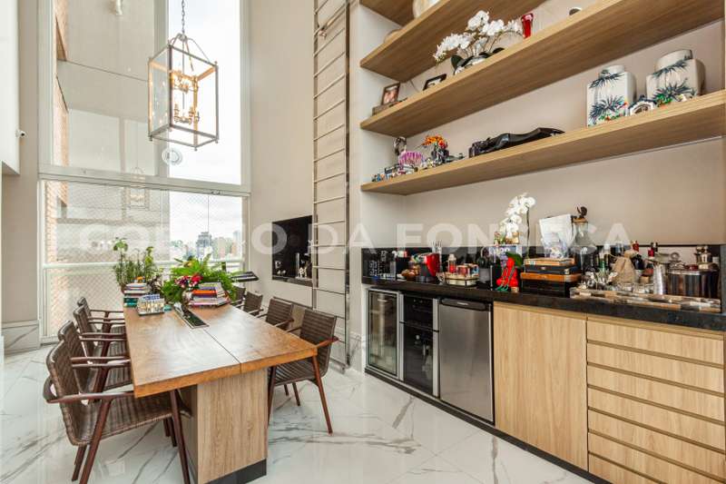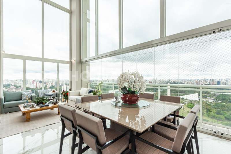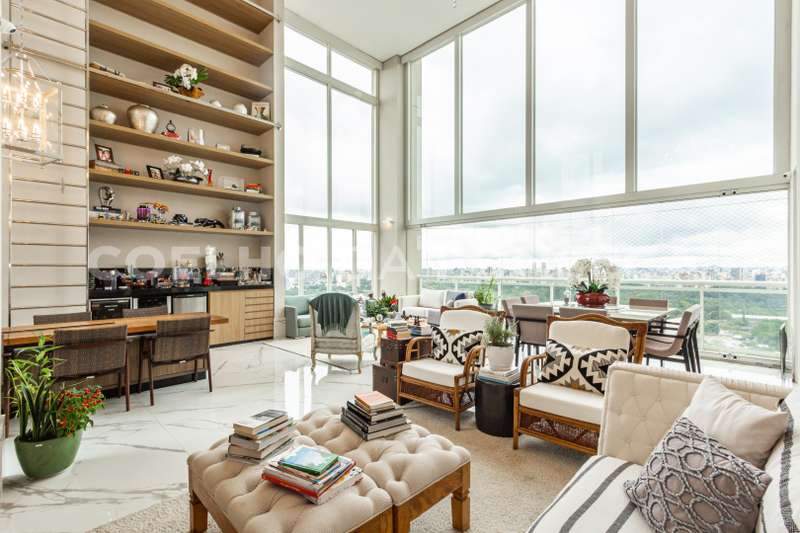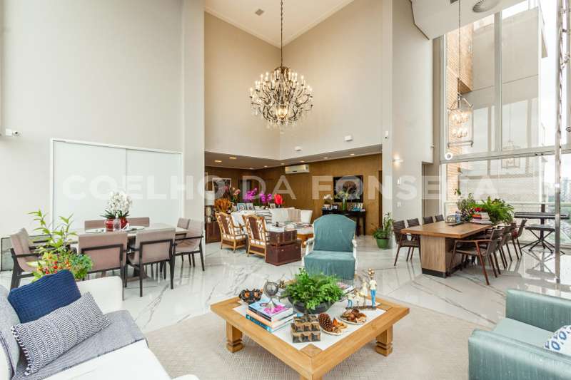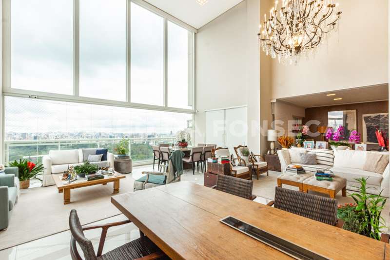 Apartamento no bairro Ibirapuera com 322m² área privativa/útil, 3 dormitório(s), 3 suíte(s), 5 vaga(s), 5 banheiro(s), churrasqueira, escritório, terraço, mobiliado (a), ar condicionado, dep. de empregados, reformado (a), pé direito duplo.
