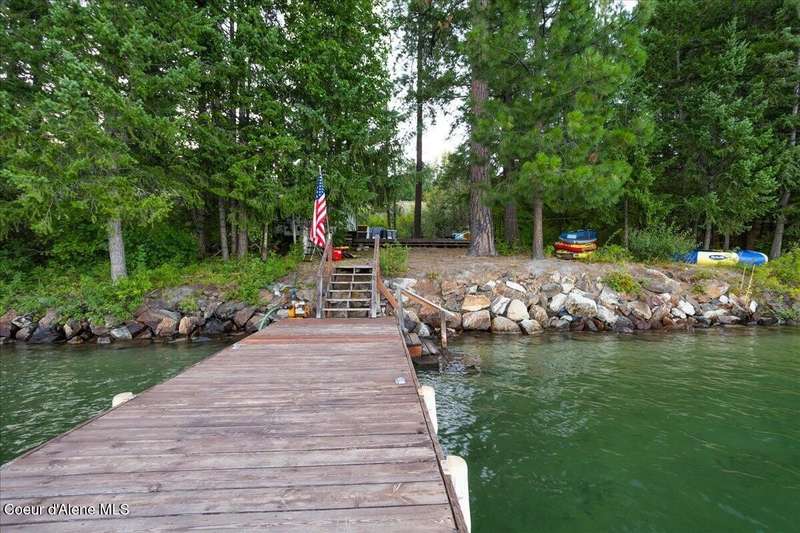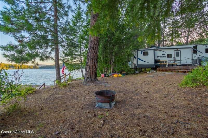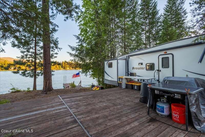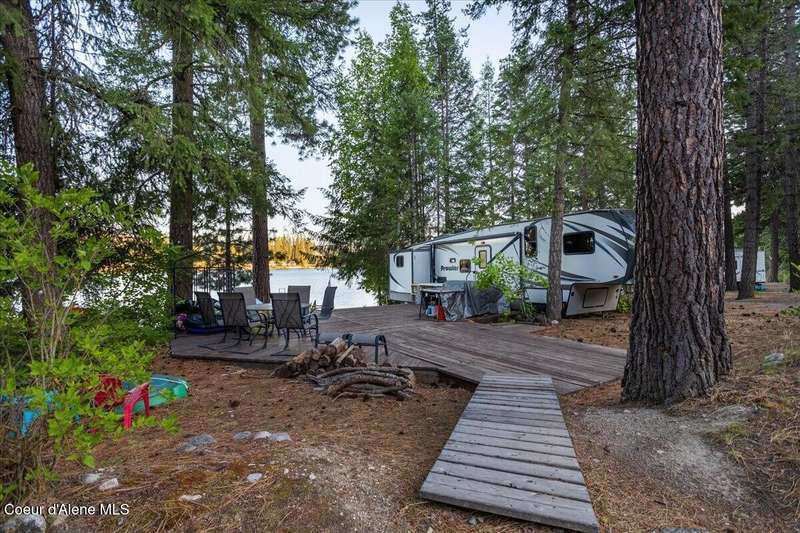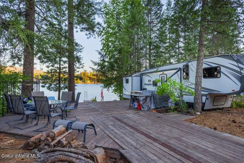 Imagine owning a slice of paradise just 10 minutes from downtown Sandpoint. This exceptional waterfront recreation lot on the crystal-clear Pend Oreille River offers over 100 feet of prime frontage with a beautifully maintained rip-rapped shoreline. Currently set up for ultimate relaxation and fun, this level, wooded lot can come complete with a two bedroom, 1 1/2 bath 5th wheel with bunks, an expansive entertaining deck, and a cozy firepit perfect for gathering under the summer stars. Spend your days on the river - with your private dock, you can easily boat to Dover Bay for lunch or Willow Bay for a change of scenery. Enjoy all the water sports and recreation the Pend Oreille River is famous for right from your doorstep. This is more than just a lot; it's your personal getaway, ready for immediate enjoyment!