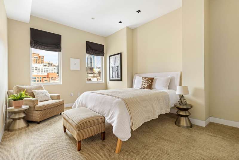 Perched atop a discreet, four-unit condominium at the crossroads of Boerum Hill and Cobble Hill, this extraordinary five-bedroom, four-bathroom, 3,825 square foot duplex spans the full top two floors and offers over 35 feet of frontage, three private terraces, and a private roof deck. The buyer of this extraordinary duplex will also have the opportunity to separately purchase the building's deeded garage which can accommodate 2 full-sized passenger vehicles, room for personal storage, and has a Tesla universal charger. Enjoy the convenience and rare opportunity to drive directly into your building and take the elevator up to your home.