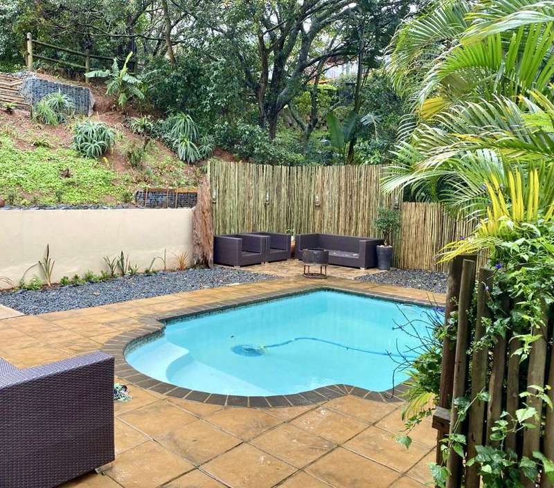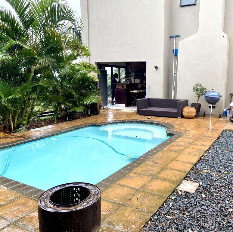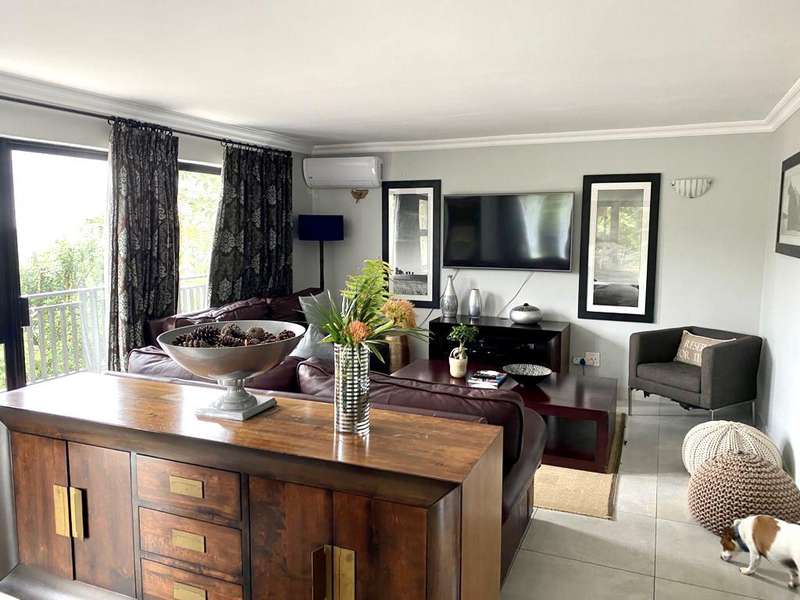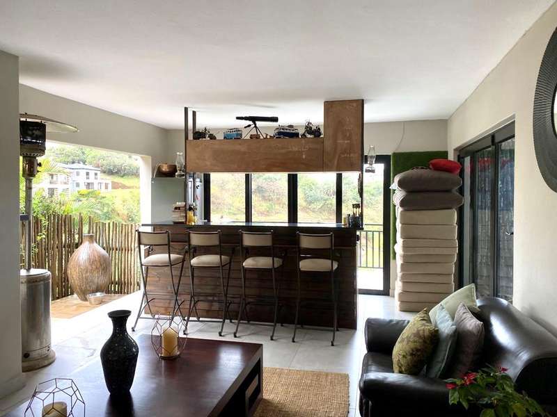 Seaward Estates boasts this lovely home that has everything you need! Great position on a hill with stunning views. Completely private from neighbours with natural vegetation providing extra privacy. Also located at the end of a cul de sac yet close proximity to the Ashton Gate. It is a 3 bedroom home. The main bedroom is very spacious with extraordinary cupboards space in a seperate dressing area that leads to a large full bathroom with double vanity. Toilet is separate. The other two bedrooms share a full bathroom. You enter the home from front door or double garage leading into an entrance area. Down the first flight of stairs to the bedroom area. The landing the leads to the bedrooms also provides additional office or work space. From the bedroom area one goes down another flights of stairs to the living area. A L shaped kitchen which provides space for sink and scullery that is tucked neatly away out of view. A decent size outdoor washing area is off the kitchen. Dining and TV lounge are open plan overlooking the views with an outdoor veranda. The entertainment area off the dinningroom is external yet enclosed. This has a lovely pub, braai and seated area. The swimming pool and jacuzzi is adjacent and private. All in all this home has a lovely design, good space, gorgeous views and great proximity.