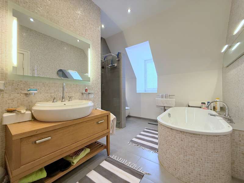 Welcome to a home with plenty of space for a new chapter in your life: this spacious semi-detached house from the 1930s was renovated with great attention to detail between 1999 and 2006 and combines stylish living culture with practical everyday practicality. Behind the charming façade, you will find an impressive living space of approx. 275 m² and an additional 84 m² of usable space - ideal for families, freelancers or creative room concepts. Eight rooms offer a variety of uses - from bedrooms to work and guest rooms to retreats for individual development. The high ceilings and light-flooded rooms give the house an airy, inviting ambience. The vestibule with adjoining checkroom and the prestigious hallway create a dignified welcome for residents and guests. A split living area on the first floor, connected by a stylish sliding door and fixed cupboards, creates an elegant sense of space and is perfect for social evenings or quiet hours. The top floor has a total of four bedrooms, a study and a fantastic bathroom. The contemporary bathroom boasts a free-standing bathtub and a modern walk-in shower. Two additional guest WCs provide comfort in everyday life. A historic dumbwaiter, which connects the first floor and the basement, underlines the special character of this property. The large fitted kitchen, a separate preparation kitchen and a spacious bar offer the best conditions for culinary development. The top floor also offers unused potential for additional living space. The outdoor area is equally inviting: a sunny terrace, a well-tended garden, a tool shed and a fully fenced property boundary create privacy and quality of life in a green setting. Fantastic plants, stylish flowerbeds and a large open space offer plenty of scope for hobby gardeners. The garage with separate entrance and electric door completes the functional ensemble. Thanks to the good infrastructure, shopping facilities, schools, doctors and public transport are in the immediate vicinity. Note: The exposé will be sent automatically as soon as your contact details have been completed. If you have any questions or would like to arrange a viewing, please do not hesitate to contact us.