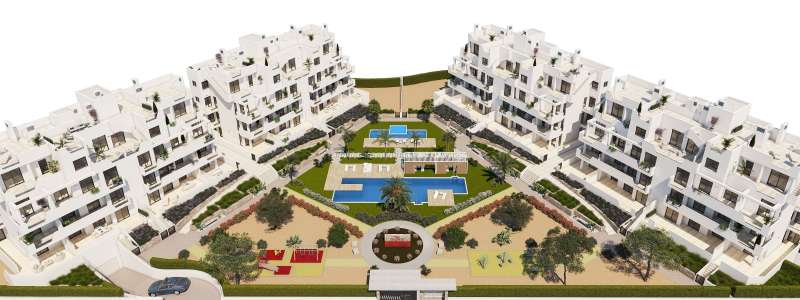 The modern apartments are located within a protected resort, offering an exceptional living environment for permanent residents or those seeking a vacation home in Spain. Situated between Los Alcázares and Torre Pacheco, this resort represents the largest development project on the Costa Calida, making it truly unique in this region of Spain.
