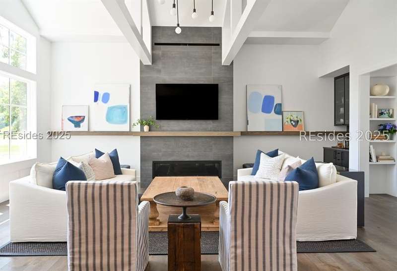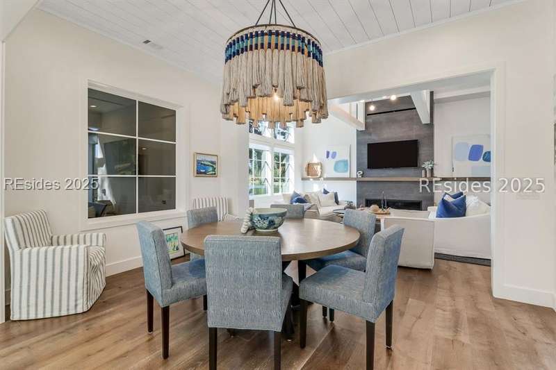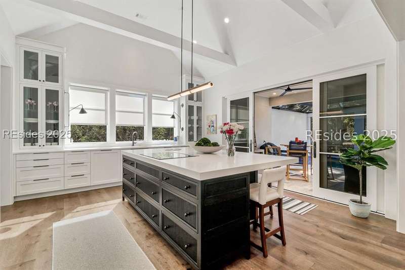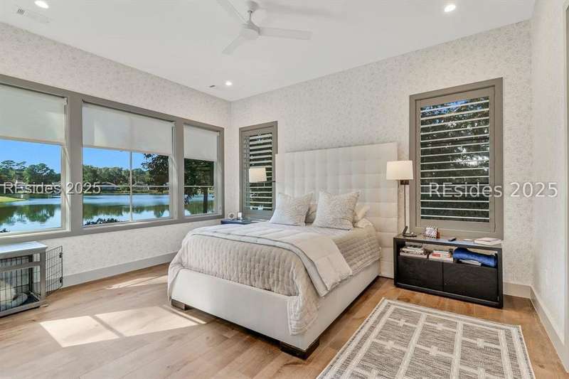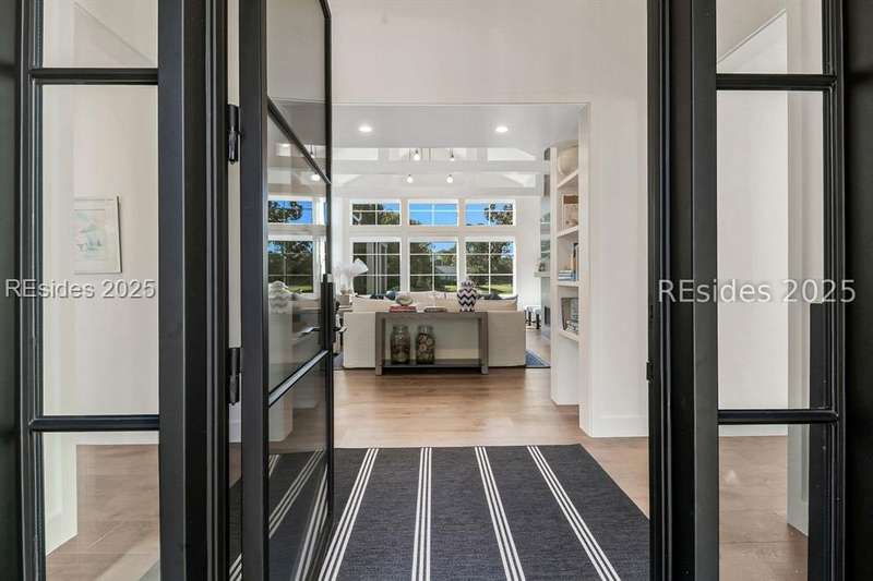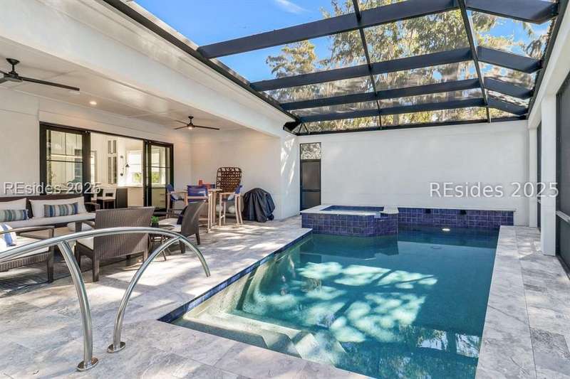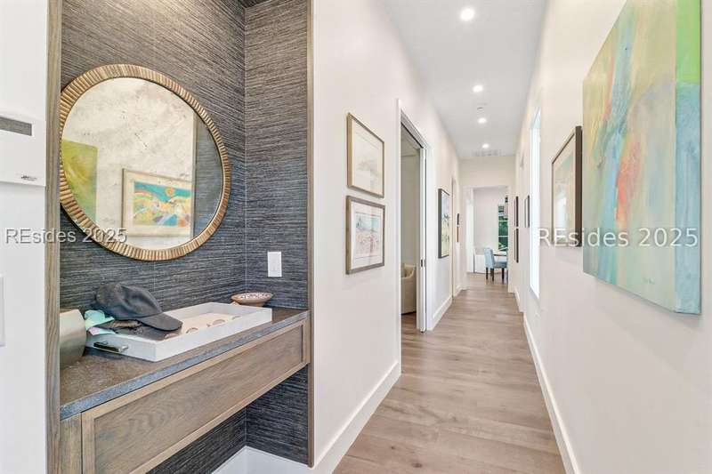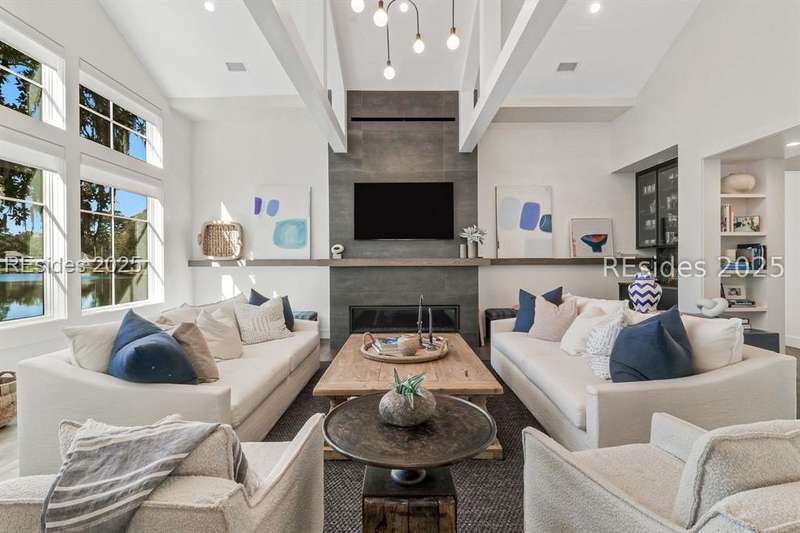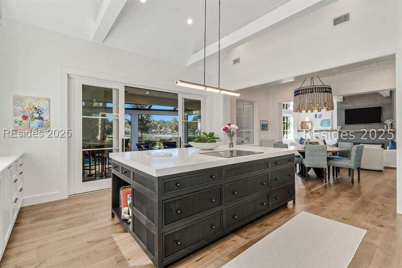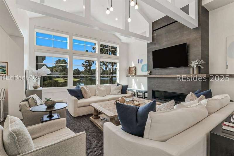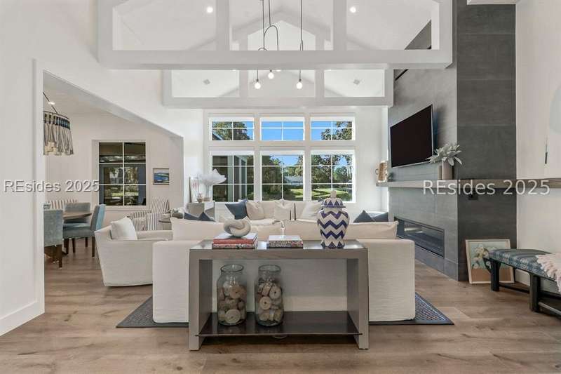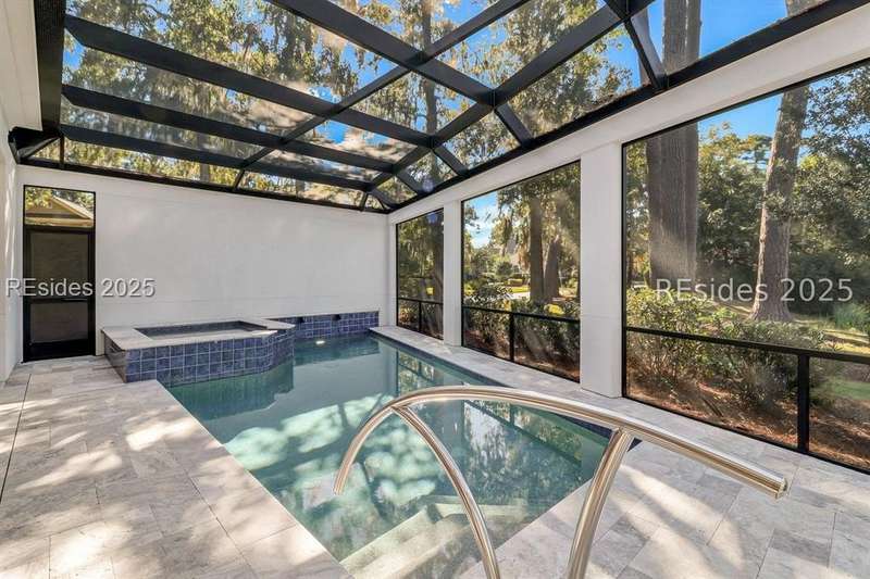 This newer Belfair lakeside residence constructed by Esposito Construction in 2022 exemplifies refined architectural style, open concept living areas, and designer finishes to deliver a sophisticated and inviting home environment. Upon entry, expansive lake vistas of Hickory Lake and abundant natural light establish the property's distinguishing features. The seamless integration of living and dining spaces leads into a spacious kitchen appointed with quartz counters, built-in refrigerator, custom paneled doors, and premium Wolf & Miele appliances. A full-length butler's pantry offers a dedicated preparation area with sink and substantial storage capacity. The enclosed lanai, designed for year-round enjoyment, extends the living area outdoors and features a heated saltwater pool, raised spa, and natural stone flooring and coping-providing an ideal vantage point to appreciate the surrounding nature and views of Hickory Lake. The floor plan includes three bedrooms, with the primary suite offering direct lake frontage, and additional bedrooms featuring en-suite baths. An adaptable flex room accommodates use as a private office, media room, or guest accommodation. Additional amenities include an oversized mudroom, laundry facilities situated within the bedroom wing, and hardwood flooring throughout. This bold and fresh style demonstrates meticulous design and craftsmanship, located within close proximity to Belfair's exceptional amenities-including two Tom Fazio golf courses, a distinguished golf learning center, an active clubhouse, and the 21,000-square-foot sports and lifestyle campus.