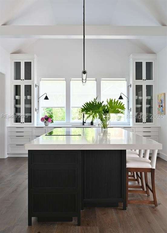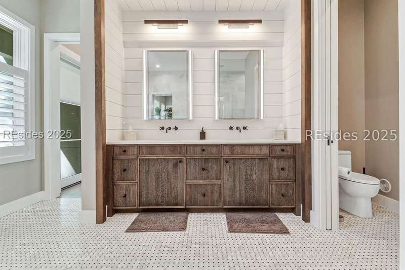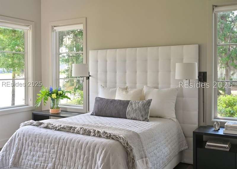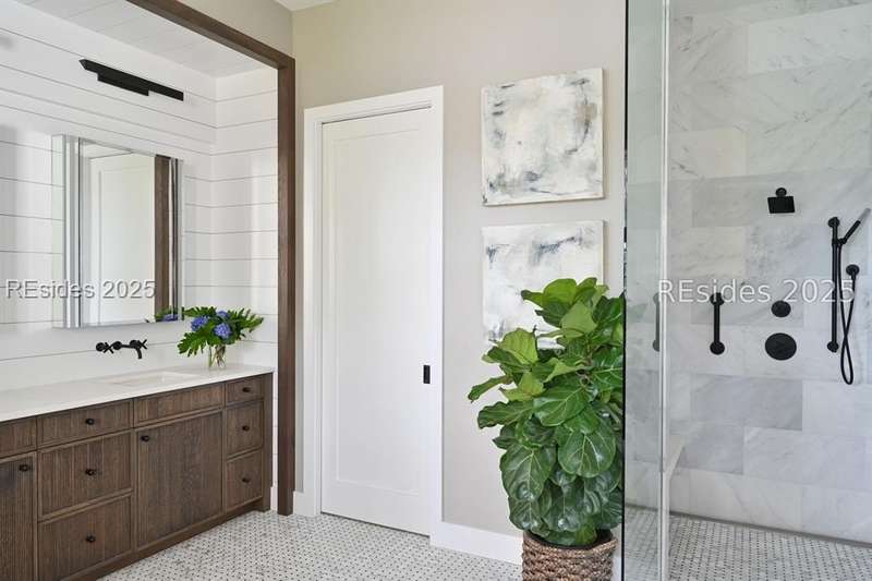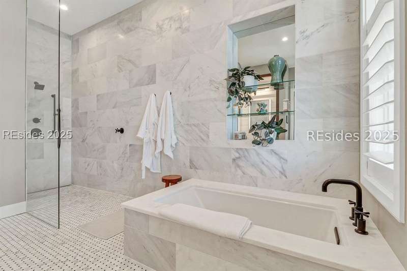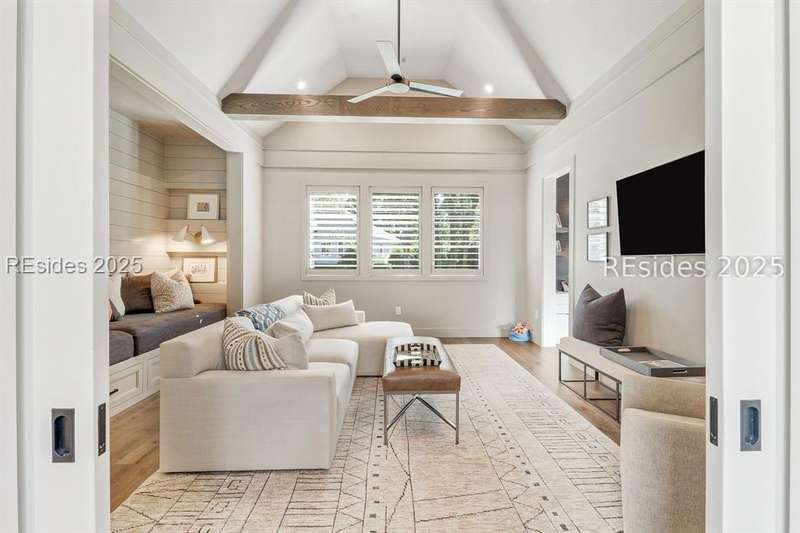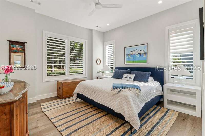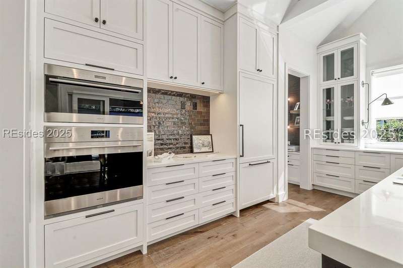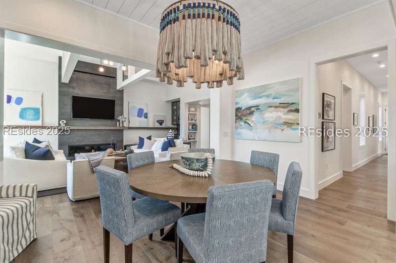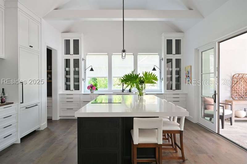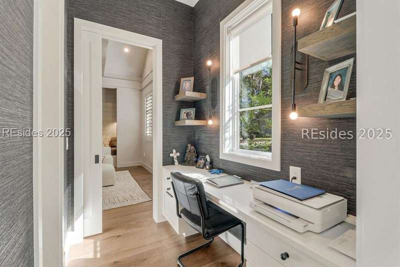 This newer Belfair lakeside residence constructed by Esposito Construction in 2022 exemplifies refined architectural style, open concept living areas, and designer finishes to deliver a sophisticated and inviting home environment. Upon entry, expansive lake vistas of Hickory Lake and abundant natural light establish the property's distinguishing features. The seamless integration of living and dining spaces leads into a spacious kitchen appointed with quartz counters, built-in refrigerator, custom paneled doors, and premium Wolf & Miele appliances. A full-length butler's pantry offers a dedicated preparation area with sink and substantial storage capacity. The enclosed lanai, designed for year-round enjoyment, extends the living area outdoors and features a heated saltwater pool, raised spa, and natural stone flooring and coping-providing an ideal vantage point to appreciate the surrounding nature and views of Hickory Lake. The floor plan includes three bedrooms, with the primary suite offering direct lake frontage, and additional bedrooms featuring en-suite baths. An adaptable flex room accommodates use as a private office, media room, or guest accommodation. Additional amenities include an oversized mudroom, laundry facilities situated within the bedroom wing, and hardwood flooring throughout. This bold and fresh style demonstrates meticulous design and craftsmanship, located within close proximity to Belfair's exceptional amenities-including two Tom Fazio golf courses, a distinguished golf learning center, an active clubhouse, and the 21,000-square-foot sports and lifestyle campus.