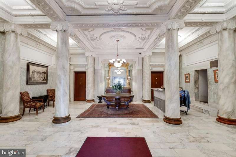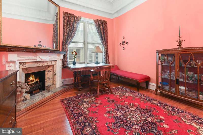 Perfect Pied-a-Terre in prestigious Washington Apartments located on Historic Mount Vernon Place! Beaux-art building built in 1906, it boasts high ceilings, plaster walls, original details, marble fireplace, hardwood flooring, and mahogany doors. This one bedroom apartment is located on the first level with access to the courtyard. Taxes, water, heat, and 24 hour security are included in the coop fee. There are no transfer costs at closing, as you own stock in the corporation. This is a must see!!