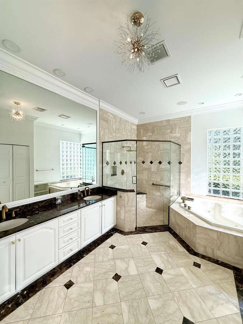 DOUBLE LOT! Rarely offered Admirals Cove home on 1/2 acre, lushly landscaped PRIVATE location.Huge resort style pool/spa w/southern exposure. Summer kitchen. Expansive garden areas. Newly upgraded home boasts 4 large bedrooms ensuite, large loft, balcony and including 1 bedroom guest house w/full bath. Open great room floorplan w/volume ceiling. New blonde wood floors thruout. Open kitchen w/stainless steel appliances, wood cabinetry, quartz countertops, pantry. Breakfast area. New ACs, New pool heater. Contemporary glass front door leads to large screened enclosed furnished patio. New wrap around bar w/ lighted quartz countertop. Designer deco custom lighting. First floor primary suite wing w/2 large walk in custom closets, office, sitting area, dressing area. Quick Closing Available