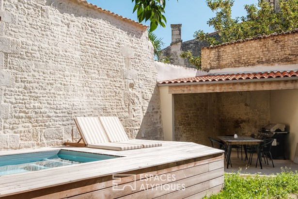 Ideally located in the heart of Niort, just a few minutes' walk from La Breche, this townhouse has undergone a complete and careful renovation, combining contemporary design and functionality. Unseen from the street, it reveals a true haven of peace: an intimate garden with a swimming pool, terrace, and courtyard, offering a privileged living environment without any overlooked vis-a-vis. Designed on several levels, this house offers intelligently distributed living spaces for optimal comfort. Past the entrance with a garage, a first half-level accommodates a bedroom with its bathroom to be finalized, presenting rental potential or suitable for a liberal profession. Above, the main living room opens entirely onto the garden thanks to sliding doors. It integrates a contemporary open kitchen, carefully fitted and equipped, which seduces with its refined design combining wood and white and its large central island, the true heart of the living space. This level is completed by a bright bedroom with its own bathroom and an office hidden behind a workshop-style glass roof. The top floor, fully air-conditioned, is a cocoon dedicated to the master bedroom, consisting of a bedroom, a dressing room, and an elegant bathroom. The latter is distinguished by its bold color palette, where enveloping terracotta hues are warmed by ruby-hued tiles, all contrasted by a graphic floor. This space can easily be reconfigured into two separate bedrooms as needed. The garden, a true centerpiece, is a haven of tranquility. The raised wooden terrace borders the swimming pool and invites relaxation, while the covered courtyard allows you to enjoy lunches in the shade. This tranquility contrasts with the bustle of the city center, accessible on foot, and allowing immediate access to all amenities. This house harmoniously combines an ideal location, optimized layouts, and a privileged outdoor space in the heart of the city. Furnished purchase can also be considered. ENERGY CLASS: B / CLIMATE CLASS: A. Estimated average amount of annual energy expenditure for standard use, established from 2021 energy prices: between EUR1,450 and EUR2,020.