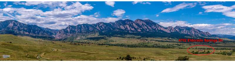 2.5 Acres PLUS 26.3 acres included as conservation easement. Find inspiration and privacy at this unique, one of a kind property located in Eldorado Springs, the home sits proudly at the top of a mesa, situated to take in AMAZING, SWEEPING PANAROMIC VIEWS! The views are jaw-dropping. Built rock solid, this quality property offers 3 bedrooms, the Primary Suite is oriented on the west side to wake up every morning with the mountains. Views from the kitchen/eating areas too! Comfortable living spaces abound; the other main level bedroom offers an upper loft --- which could double as an office/study with surround windows/views. The property sits on a 2.5 acre lot and is abutted by a 27 acre Conservation Easement (owned), for added privacy/protection. A unique layout offering flexibility to the future owner - see Floor Plans. There is a seasonal creek and property has possible equestrian use. Shared private road with only one other property off the driveway. Eldorado Canyon and some of Boulder County's most special trails sit just up the road to the West. Septic Smart approved; shared well (with 1 other home). The location is terrific, easy access to Open Space, South Boulder amenities, Hwy. 93 to the mountains, and commuting access to Denver nearby. Call Listing Agents with any questions. Get ECSTATIC about... 4702 Eldorado Springs Drive!