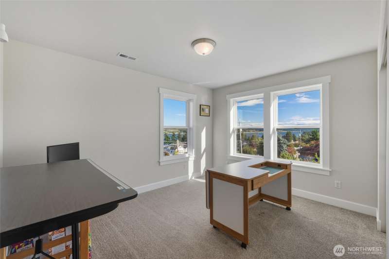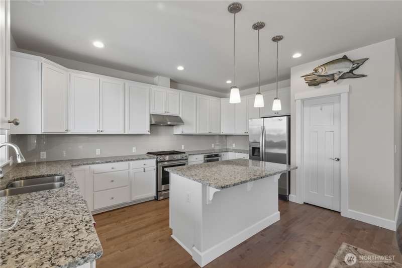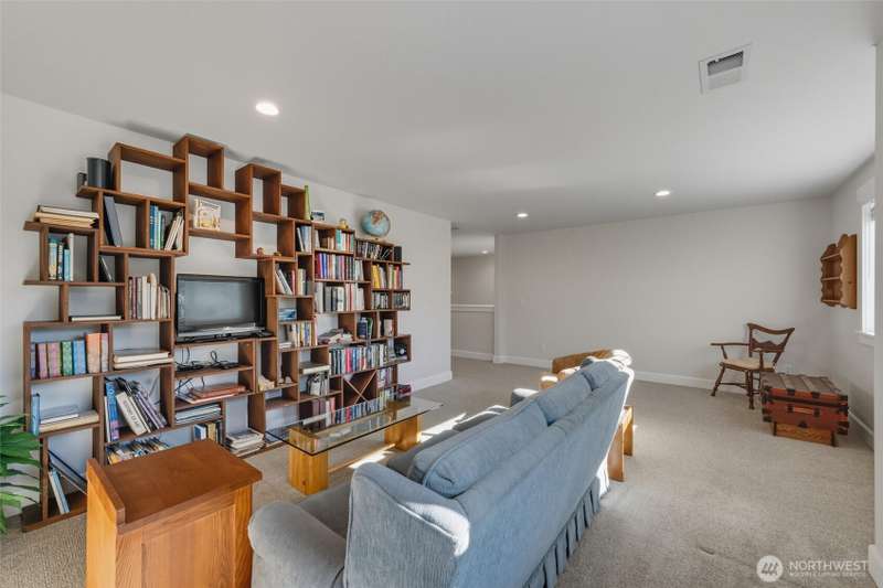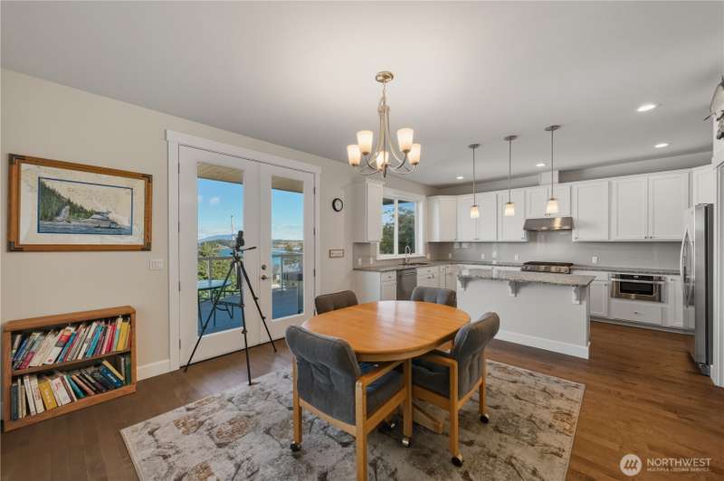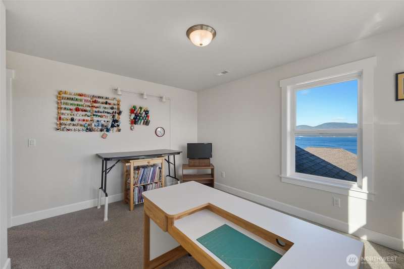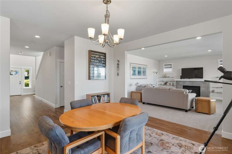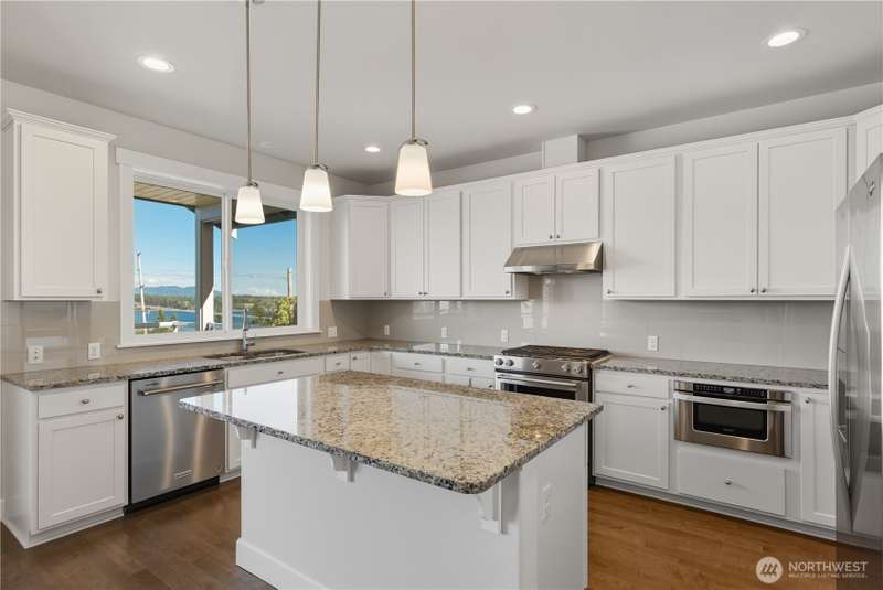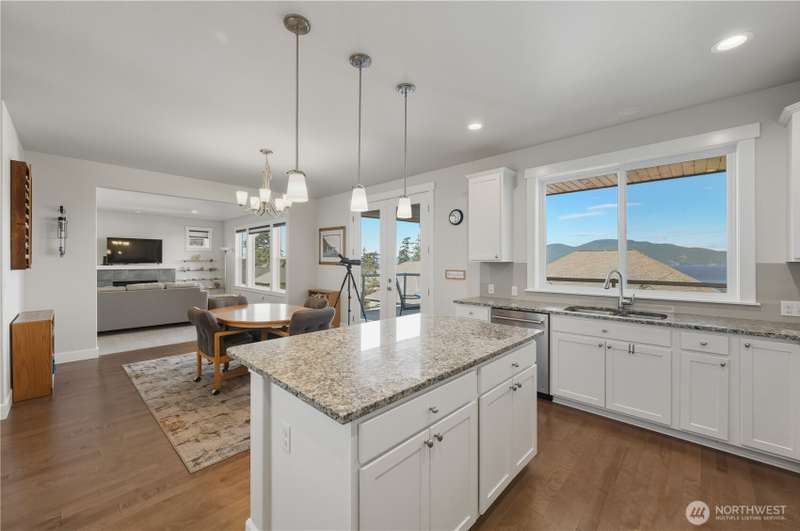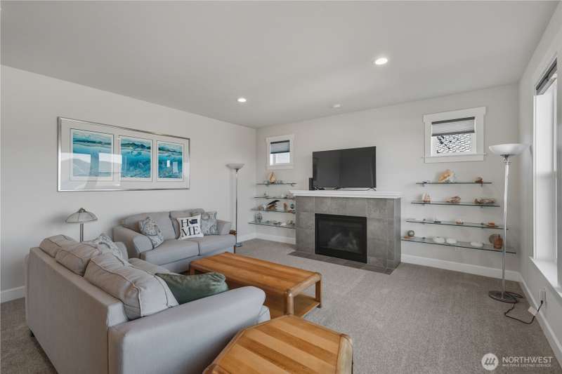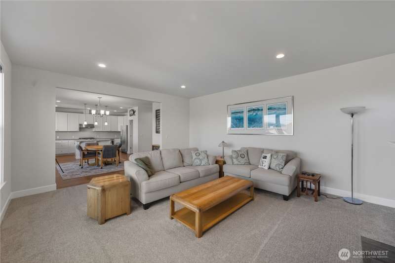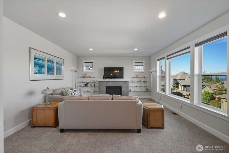 Set on a quiet corner lot, this spacious 4-bedroom, 3-bath home offers over 3,000 square feet of living space with a versatile layout. The main level features open-concept living and dining areas plus a large kitchen designed for entertaining, complete with a walk-in pantry and plenty of storage and counter space. The upper level includes all four bedrooms and a large family room providing extra space for relaxing, play, or hobbies. The 3-car garage includes an electric vehicle charging station and offers excellent space for vehicles, work, and storage. Enjoy beautiful views of Guemes Channel and relax on the deck while boats pass by. All just minutes from town, schools, parks, and more—a wonderful opportunity to own in Anacortes!