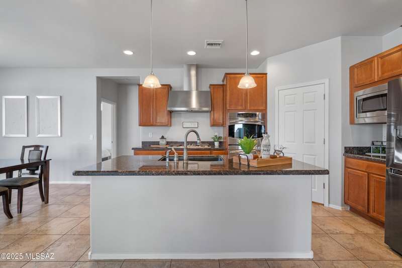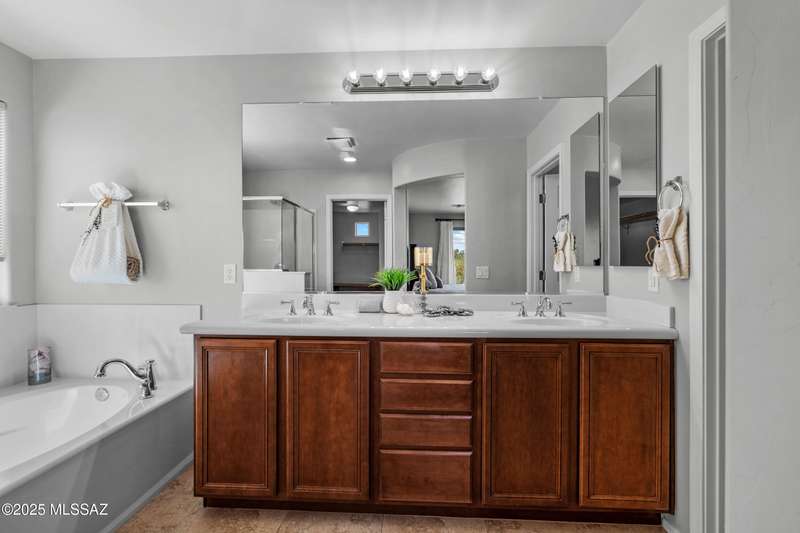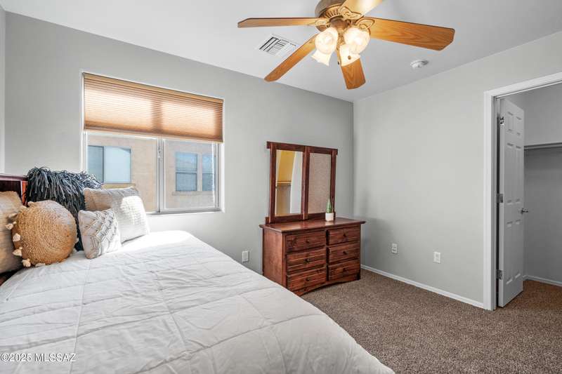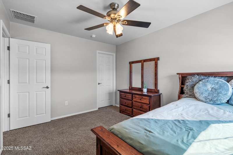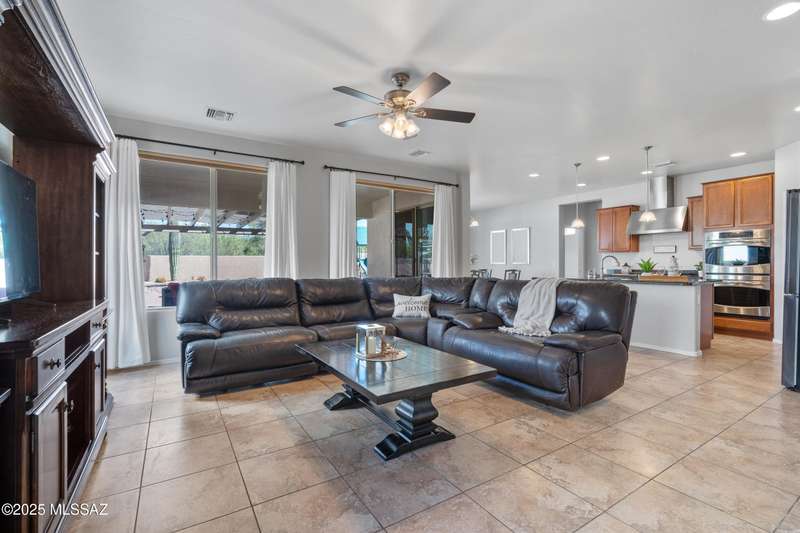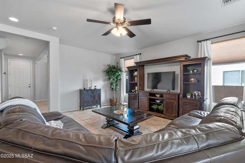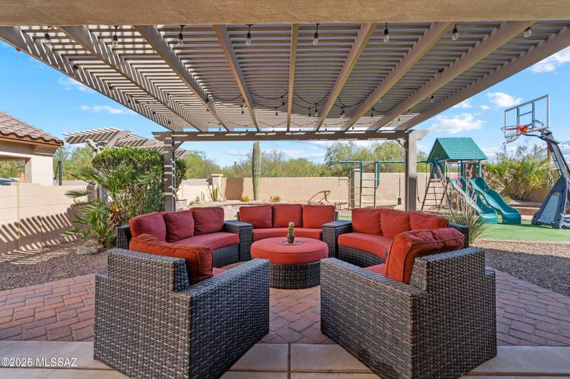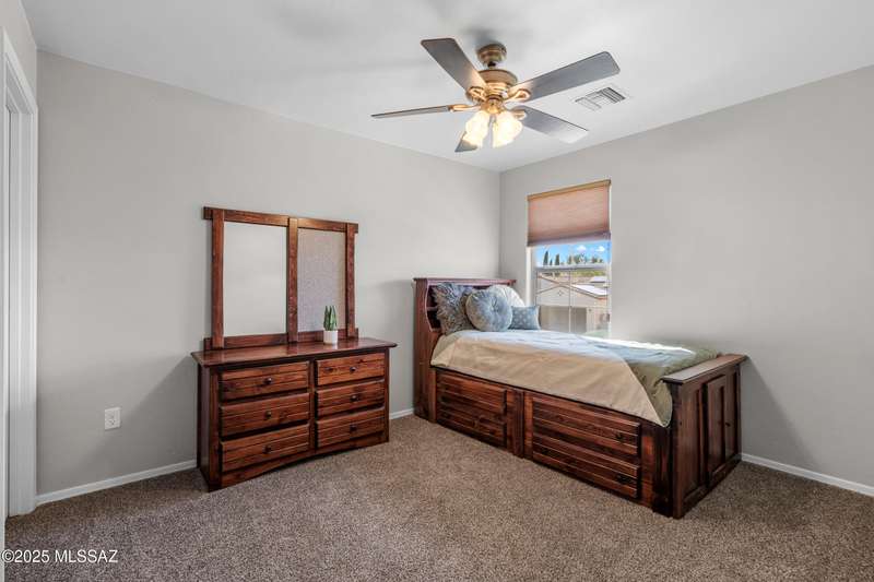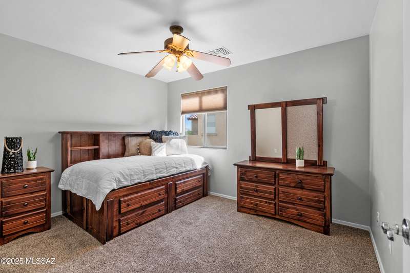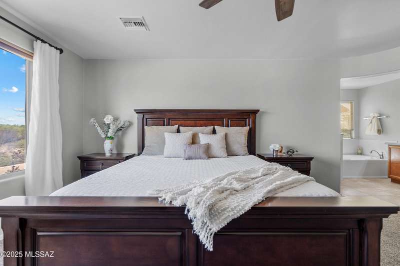 $5K towards rate buydown! Spacious home with NEW paint inside & out. Beautiful ceramic tile flooring dwnstrs & brand-new carpet upstrs. Convenient dwnstrs bedrm & full bathrm make for a perfect in-law quarters. Upstairs, you'll find a huge loft ideal for 2nd living area, game rm, or hmschool classrm w/private balcony. The expansive primary suite offers a peaceful retreat w/beautiful desert landscape views- perfect for enjoying serene mornings or sunset views. The backyrd is designed for year-round enjoymnt & entertaining, with large pergola, built-in BBQ, fire pit, & low-maintenance turf--all set against the backdrop of no rear neighbors & direct views to natural desert scenery & the scenic Safari Trail. Additional highlights include new water softener & a spacious 3 car tandem garage...