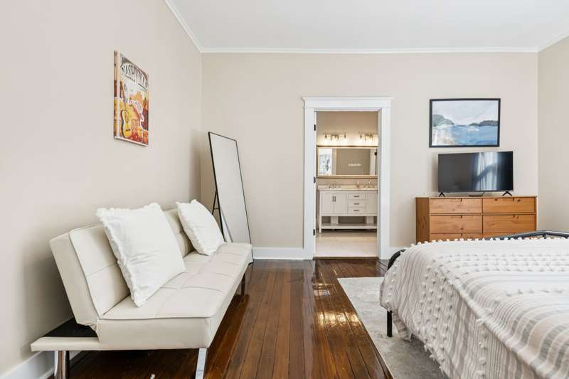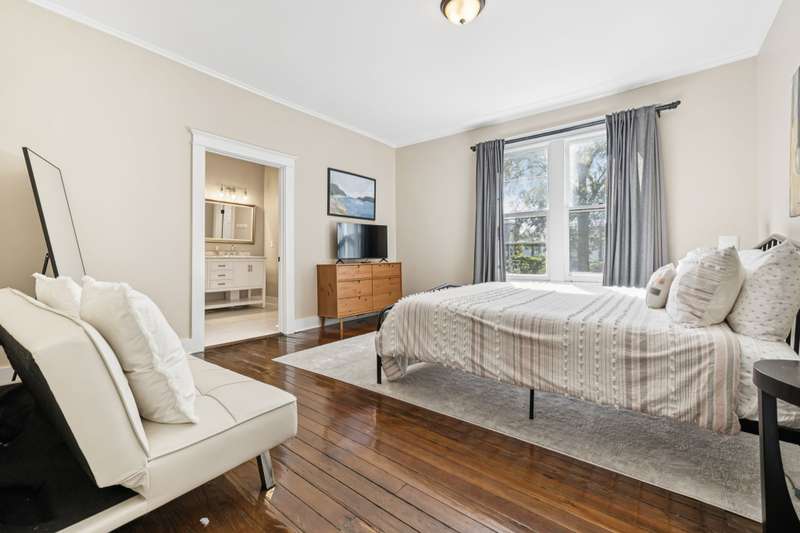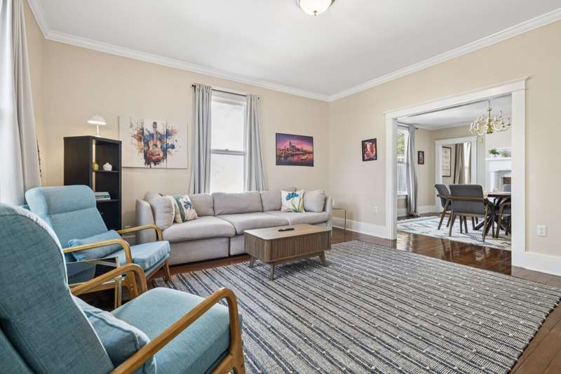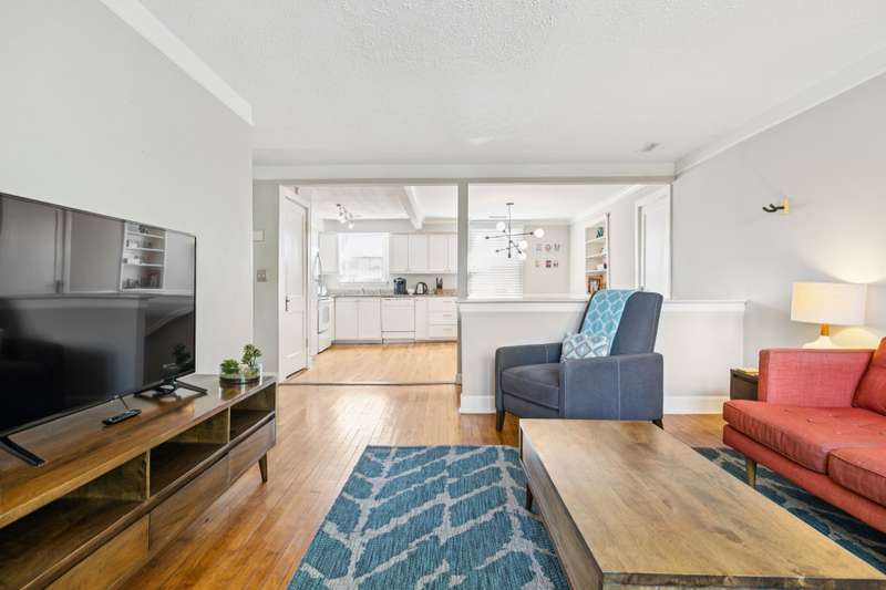 Currently configured as a fully operating NOO-STR, the property offers two beautifully updated units: a 2BR/2BA on the main level and a 2BR/1BA upstairs with its own private entrance. Both units feature soaring ceilings, rich hardwood floors, and thoughtfully chosen finishes that strike the perfect balance of character and sophistication.