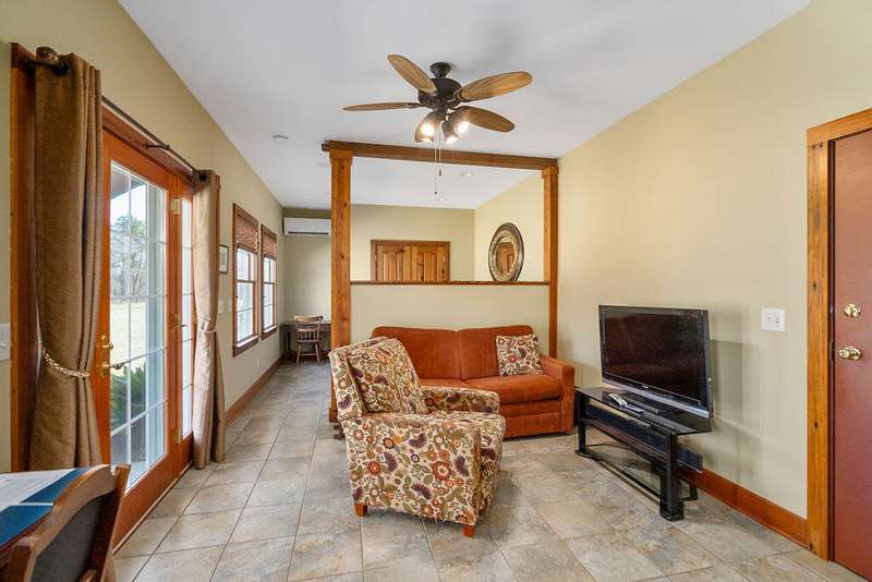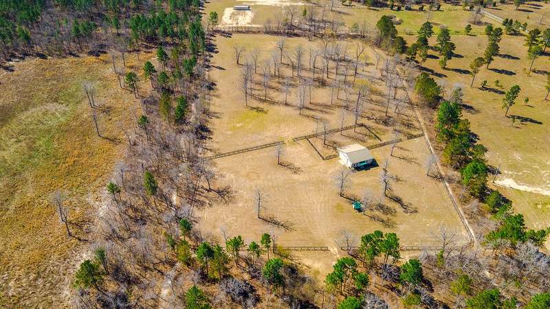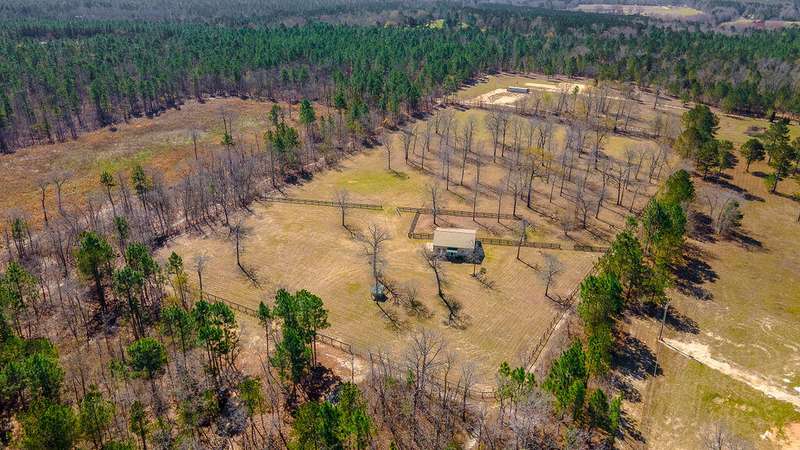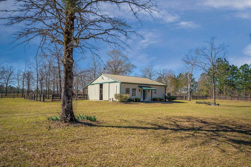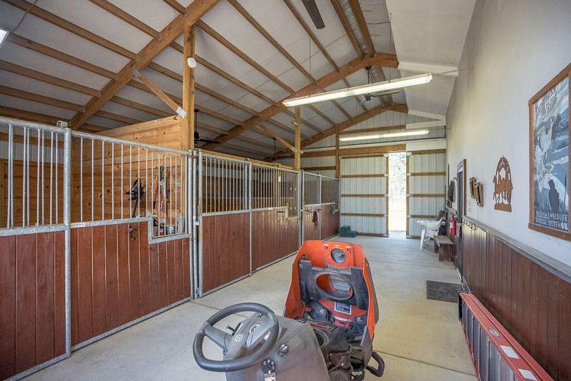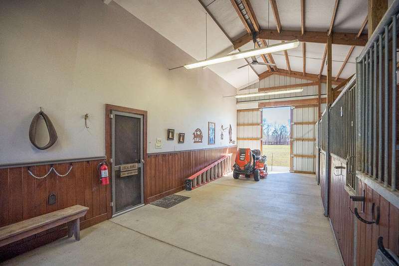 Buffwood East - 15 acres. 3 stall center barn with 1 bedroom apartment. Building total - 1296 square feet. Furnished totally. Pots, pans, etc. 5 acres fenced paddocks, miles of trails - perfect design. Excellent condition. (Restrictive Covenants)