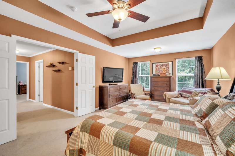 Imagine the quiet as you sit on your back (or front) porch enjoying your morning coffee. Step inside and see the formal dining room next to a gorgeous full kitchen (includes new stainless appliances installed in 2023) that overlooks the TV room. Enjoy the comfort of a downstairs bedroom and bath. Upstairs features a large Primary bedroom with a sitting area and an en-suite bathroom with all the room and amenities you need. Additionally, the walk-in closet is located off the en-suite bathroom. If you have lots of laundry, you're sure to love the upstairs laundry room! Outside, the large pie-shaped lot offers plenty of room for fun and outdoor activities. Fridge conveys. Roof is new as of 2022 with a transferable warranty (for a fee), New water heater 2025, New downstairs heat pump/AC 2020, new upstairs heat pump/AC 2019. Full downstairs LVP installed in 2020. This home is move-in ready!