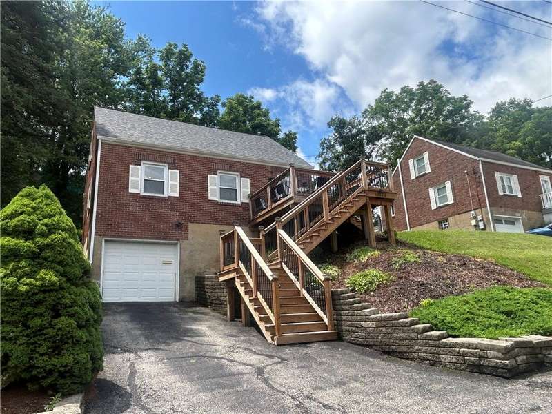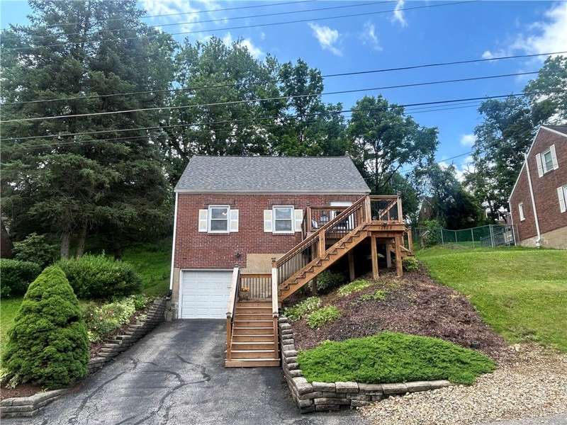 Well-maintained home with great updates and a convenient location! New front steps and porch with seating area, solar lighting, and easy access to the side yard. The formal living room offers large windows for plenty of natural light, while the formal dining room features hardwood flooring and a classic chandelier. The kitchen includes rich cabinetry, a walk-in pantry, and direct access to the rear yard with a patio?ideal for grilling and outdoor gatherings. The first floor also includes an updated full bath with a walk-in shower and a main-level bedroom. Upstairs, you'll find two additional bedrooms, each with double closets for ample storage. The lower level offers a semi-finished game room, a laundry area, and an oversized 1-car garage. Additional parking includes 3 off-street spaces. Located on a quiet dead-end street that connects to the school overflow lot, with walkable access to the Penn Hills football and baseball fields. A solid home in a desirable setting!