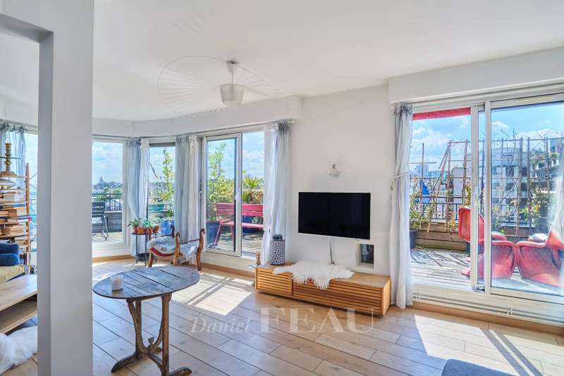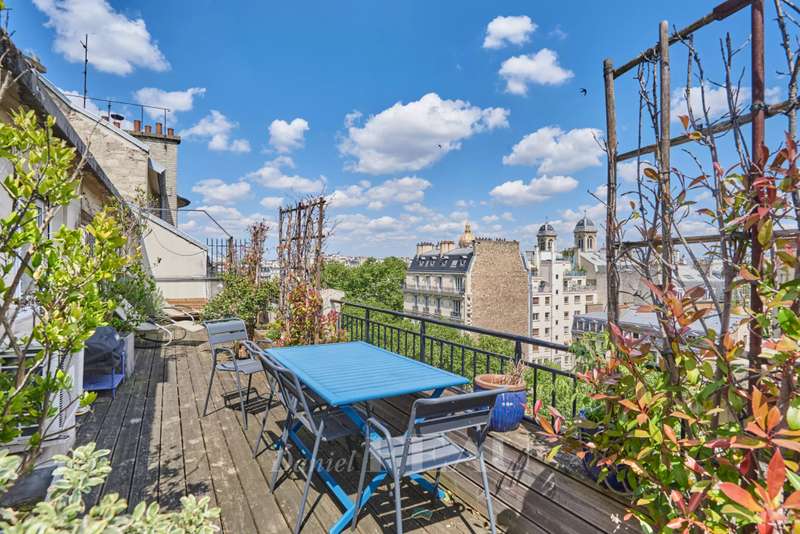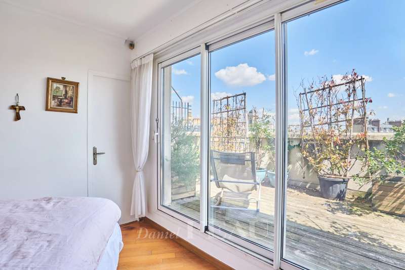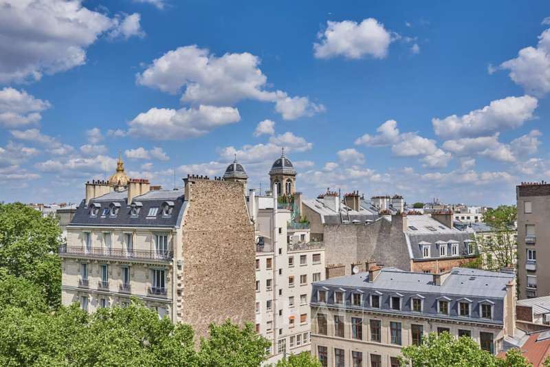 Saint-François-Xavier neighbourhood. This 55 sqm apartment benefiting from a 66 sqm terrace is on the 8th and top floor of a mid 20th century building with a lift. It comprises a corner living/reception room opening onto the terrace commanding open views of Montmartre and the Invalides Dome, a separate kitchen, a bedroom, a bathroom, a utility room and a separate wc. A second bedroom with a shower room would be possible. Cellar. The buildinbg benefits from cycle storage premises.