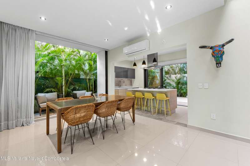 El recien inaugurado Nayar Senses Beach Club esta a un corto paseo y ofrece exclusivas comodidades junto a la playa a minutos de su puerta. Disenada cuidadosamente con muebles de calidad, fotografias antiguas y una elegante combinacion de decoracion moderna y mexicana, esta casa lo invita a relajarse y disfrutar de su ambiente calido y acogedor. La espaciosa planta baja de concepto abierto es perfecta para reuniones familiares o para recibir invitados, con grandes puertas corredizas de vidrio que integran a la perfeccion la vida interior y exterior. Adentrese en el exuberante oasis del patio trasero, donde la vegetacion madura y una fuente de agua personalizada crean un remanso de paz y privacidad. En la planta superior, le espera una amplia terraza en la azotea, ideal para disfrutar de barbacoas, contemplar el atardecer y observar las estrellas bajo el cielo despejado de Nayarit. Ubicada a la vuelta de la esquina del pintoresco Paseo de Los Cocoteros, donde se disfruta a diario de ciclismo, jogging y patinaje, esta casa se encuentra en la pintoresca y tranquila comunidad de Kupuri. Esta propiedad, completamente amueblada y lista para habitar, esta lista para recibir residentes permanentes o para ofrecer una excelente renta vacacional, con un potencial de ingresos de hasta $6,000 USD al mes.