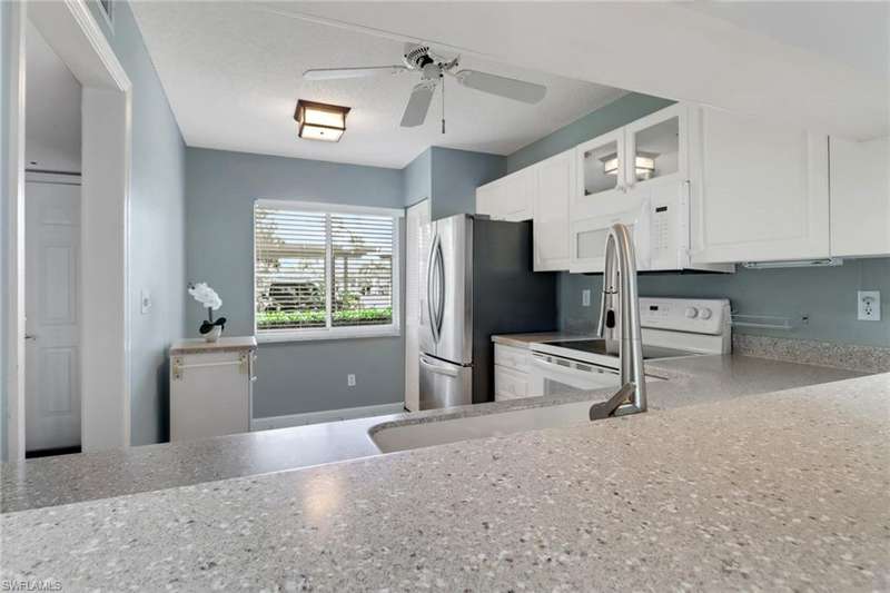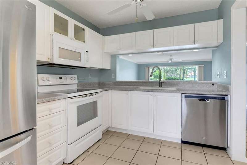 Available for annual. Ground floor condo in quiet community in south Naples. Spacious 2 bedroom 2 Bath condo with a view of the Golf Course from your screened Lanai. Social membership is optional. In condo laundry, huge walk in closet. Basic Cable and High Speed Internet included. Community pool and tennis courts just outside your front door. One covered parking space and plenty of extra guest parking. Quiet community just a few minutes from Old Naples Downtown and beaches. Shopping and restaurants nearby. New fitness center and clubhouse.