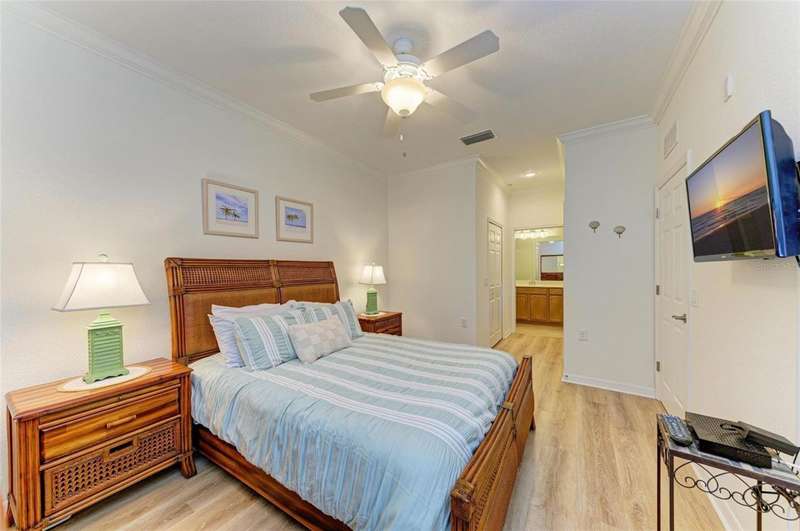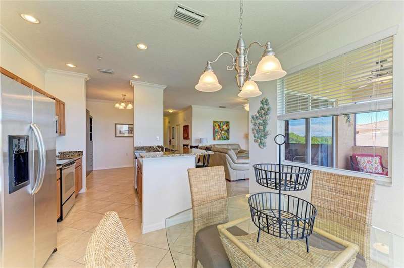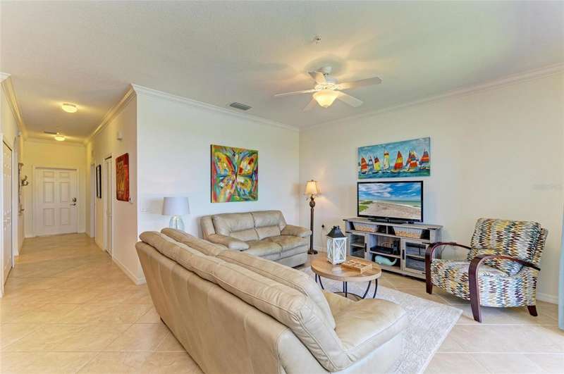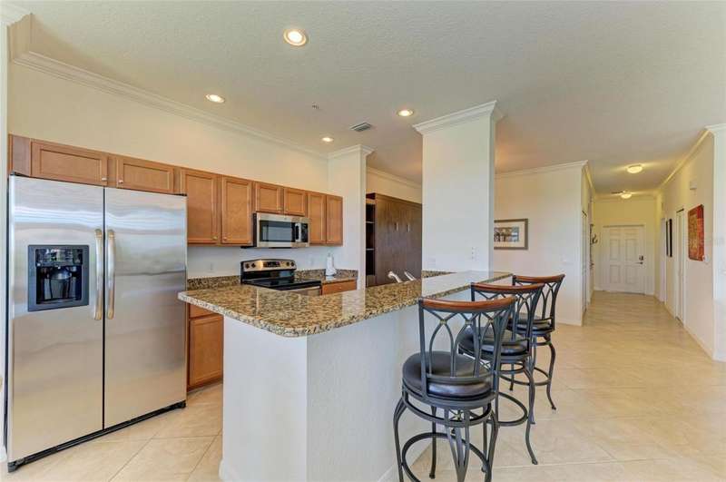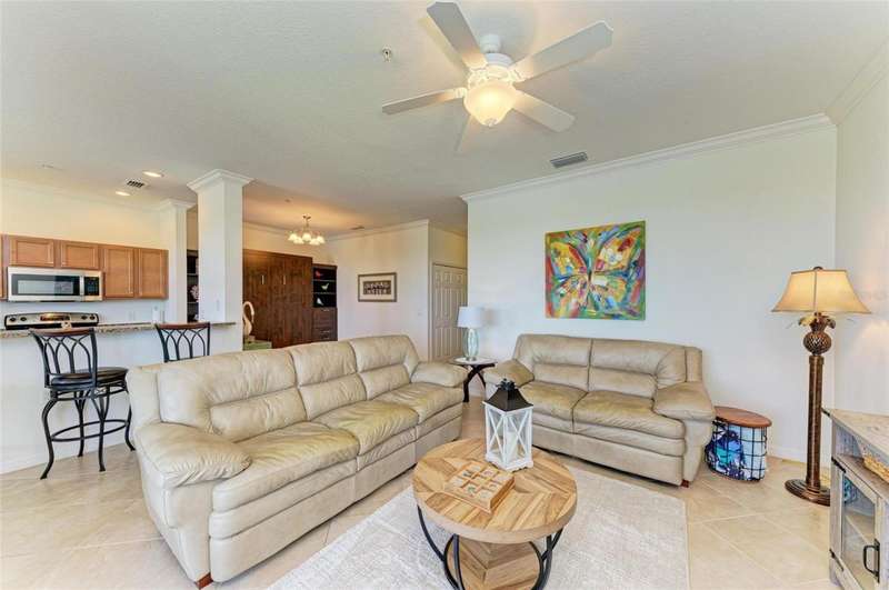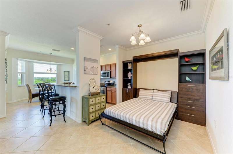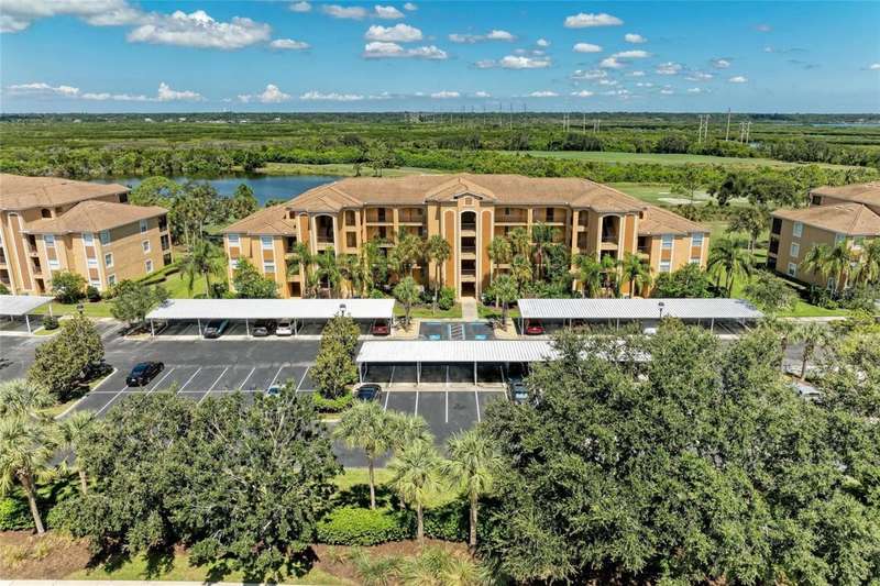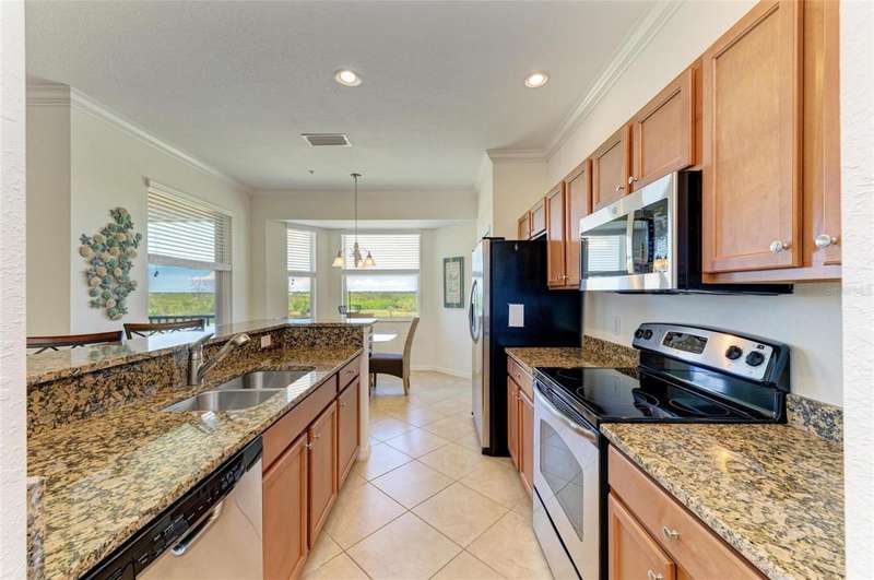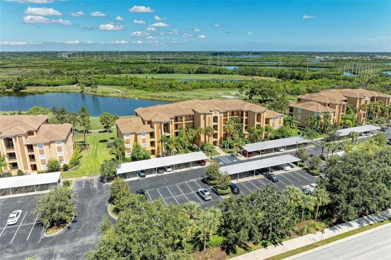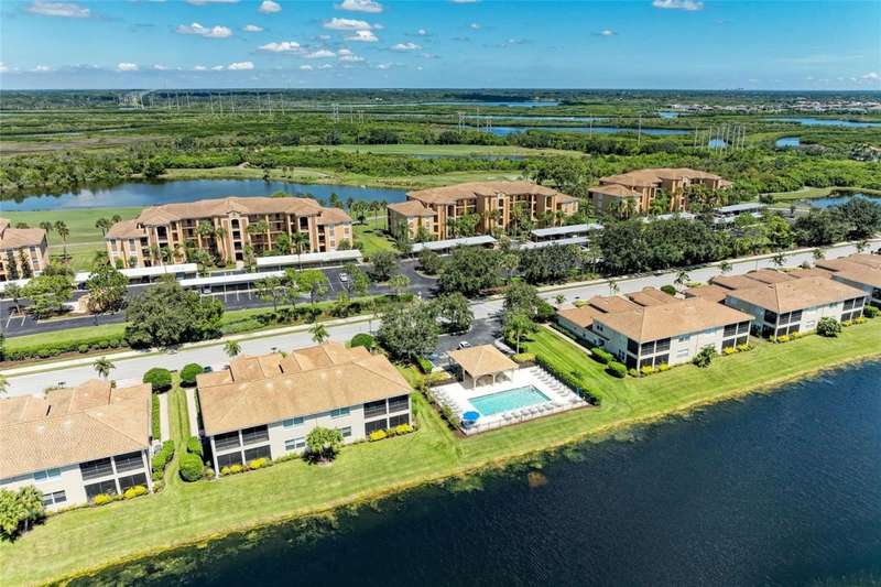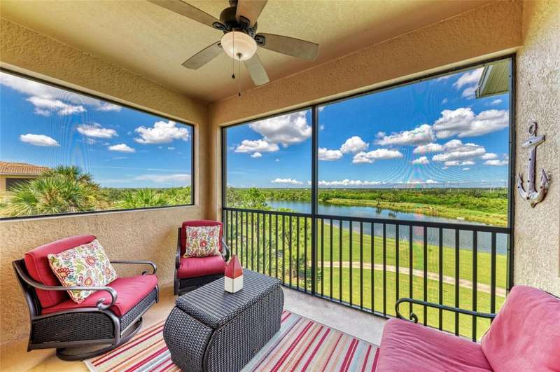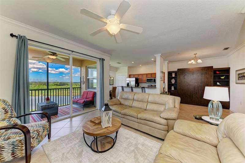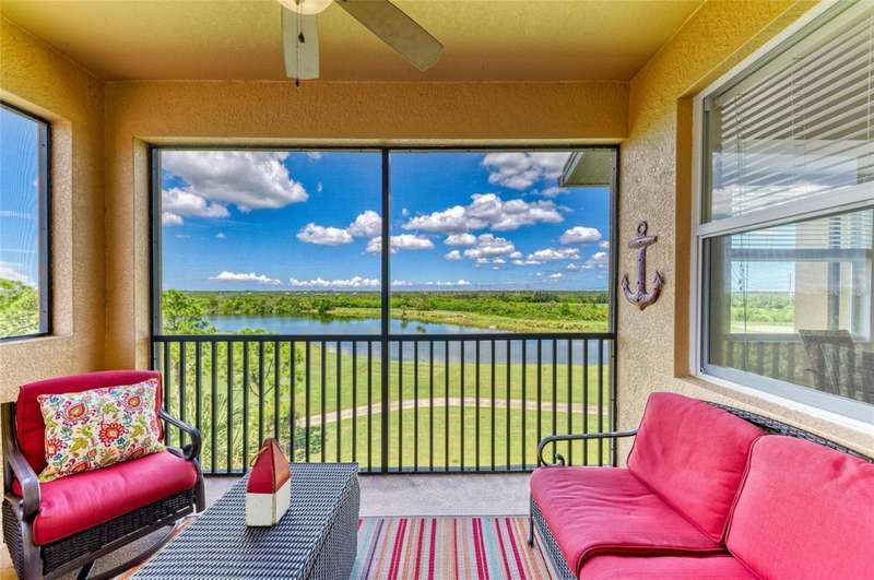 Penthouse Perfection - The One You've Been Waiting For! Original owners, very lightly lived in! This rarely available Brookside Model 4th-floor penthouse condo is offered TURNKEY/ FURNISHED with a DEEDED GOLF MEMBERSHIP -a perfect blend of comfort, style, and location.From the moment you step inside, you'll be captivated by sweeping panoramic views of the lake and golf course, enjoyed from your lanai, kitchen, dining room, and living area. Just steps from the sparkling community pool, it's truly a swimmer's dream.Inside, the sun-filled open layout shines with NO CARPET & FRESHLY PAINTED -only elegant tile and luxury vinyl plank flooring. Crown molding and tasteful upgrades accent the thoughtful design. The dining space flows seamlessly into a chef's kitchen with granite countertops, beautiful cabinetry, stainless steel appliances, pantry, and a cozy breakfast nook-complete with WATER VIEWS. HOA fees include Internet, Cable and Water, you only bill is electric!The oversized primary suite is a private retreat with crown molding and a generous walk-in closet. A spacious guest bedroom ensures family and friends always feel at home, while the Murphy bed adds versatility with a beautiful extra room. Additional highlights include: Separate laundry room Private storage with built-in shelving Expansive screened lanai-the perfect spot for endless sunsets.Step outside your door and enjoy the newly reimagined River Strand Golf & Country Club (renovated January 2026), where a true resort lifestyle awaits: Redesigned Andrew Green 27-hole championship golf course 9 Har-Tru tennis courts & 8 pickleball courts 2 resort-style pools + 6 satellite pools 2 state-of-the-art fitness centers NEW RENOVATIONS...coming soon as of Jan. 2026 .. clubhouse with restaurant, grill room & tiki bar Ideally located near I-75, University Town Center, and Florida's world-famous beaches, this penthouse offers the ultimate in luxury, leisure, and convenience.Welcome home to your private paradise-schedule your exclusive showing today!
