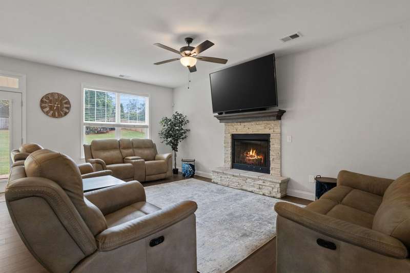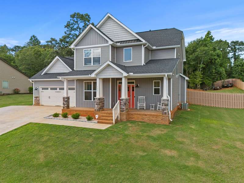 Welcome to this stunning, move-in ready home in Wellford, less than five years old and situated on a spacious 0.6-acre lot. Step onto the large front porch and into a bright foyer that leads to a formal dining room?perfect for entertaining. The adjoining kitchen is a true highlight, featuring stainless steel appliances, granite countertops, and generous cabinet space, with a cozy breakfast area just steps away. The living room offers an abundance of natural light and a beautiful fireplace as its focal point. The main level also includes a spacious primary suite with a trey ceiling, a private walk-in closet, and a luxurious ensuite bathroom with a separate tub and shower. For added everyday convenience, a laundry room and convenient half bath finish out the downstairs of the home. Upstairs, you'll find three additional bedrooms and a full bathroom for guests, family, or even a home office. Outside, enjoy a covered patio and a large, fenced-in backyard?ideal for relaxing or play. This home perfectly blends modern comfort with timeless design in a peaceful setting. Schedule your showing today to check it out for yourself!